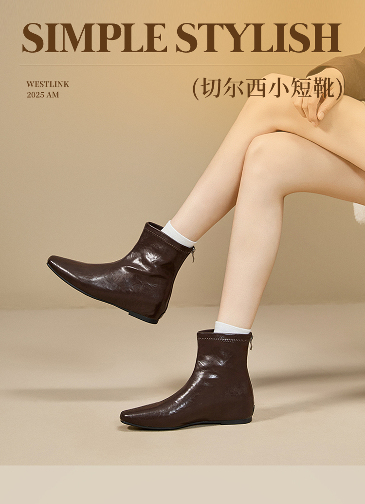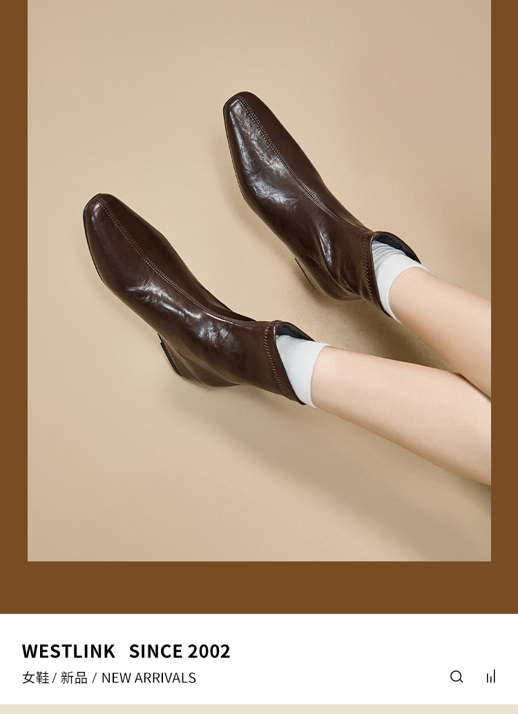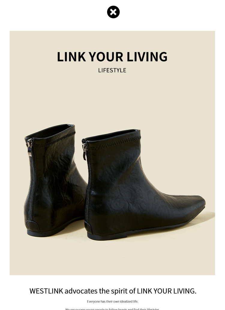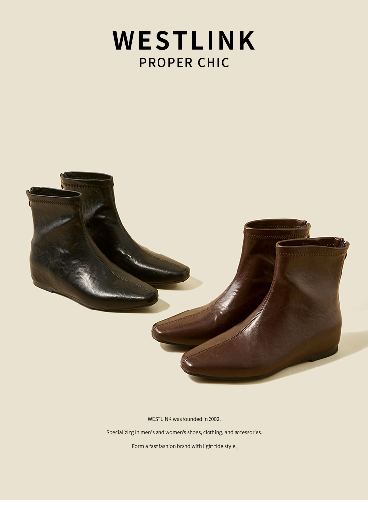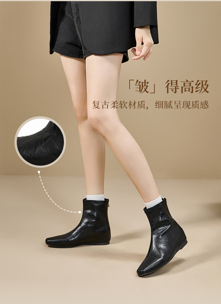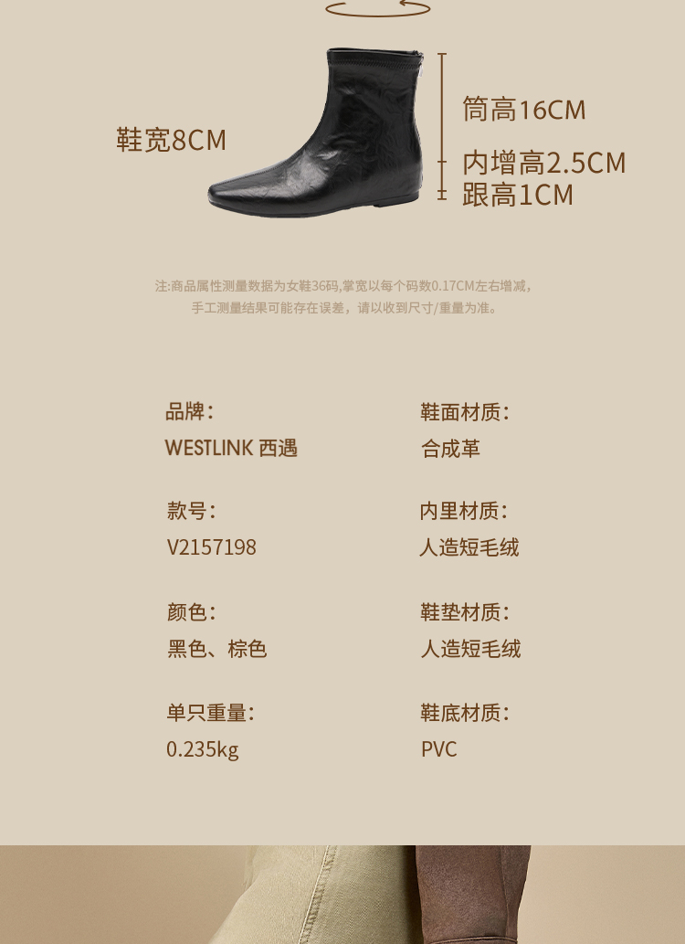 西遇内增高短靴女新款秋冬韩系百搭洋气小踝靴黑色方头瘦瘦靴V2157198