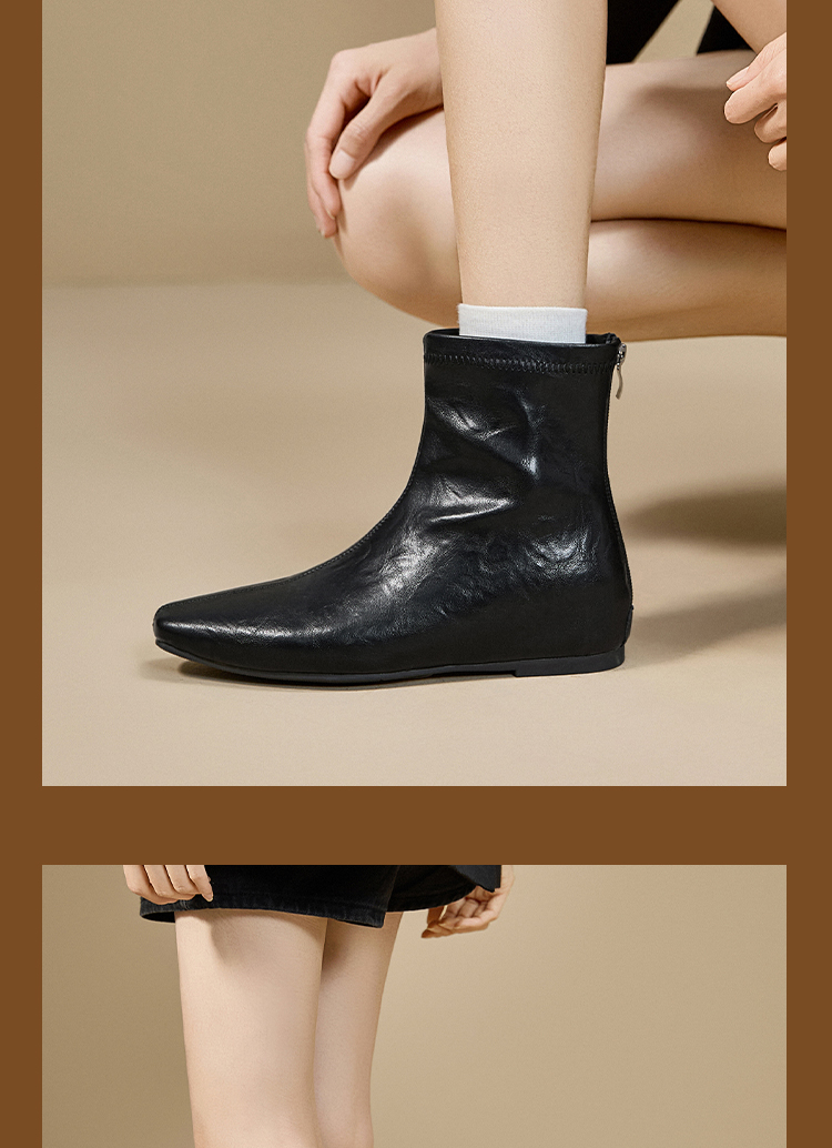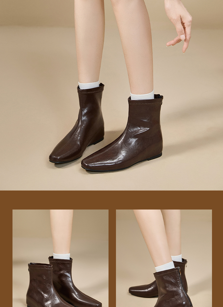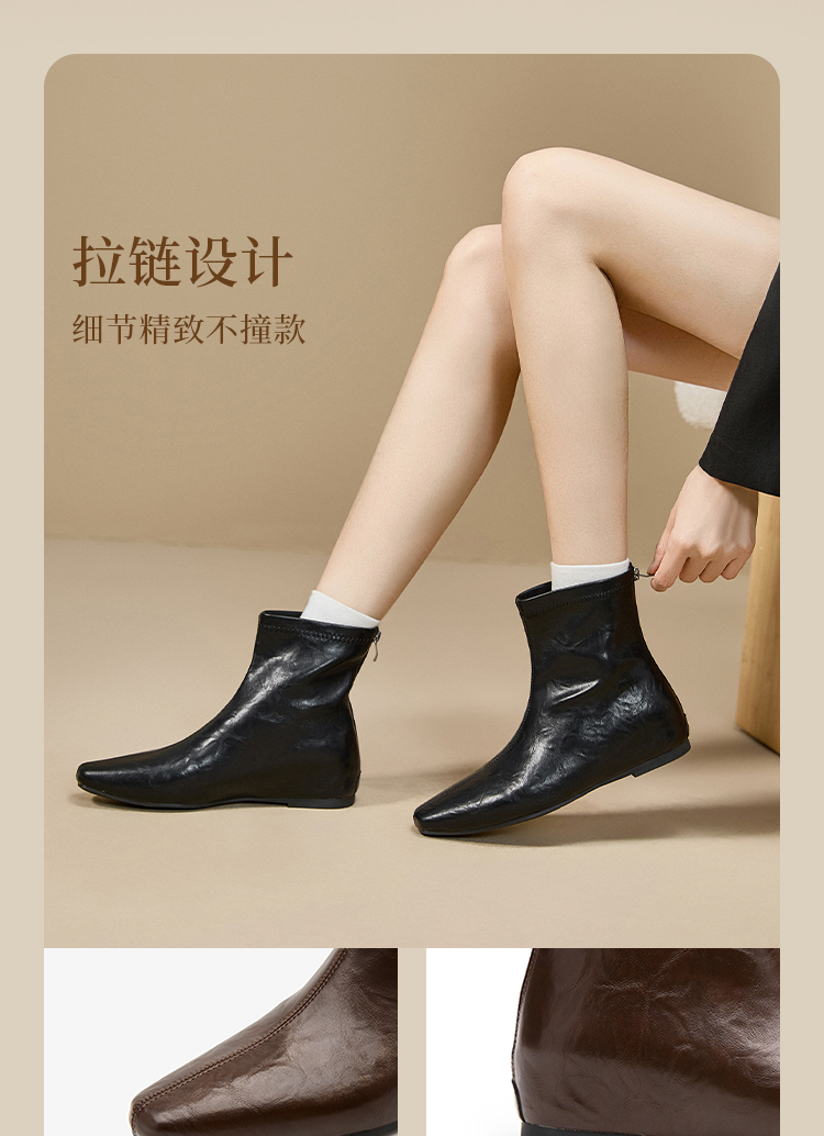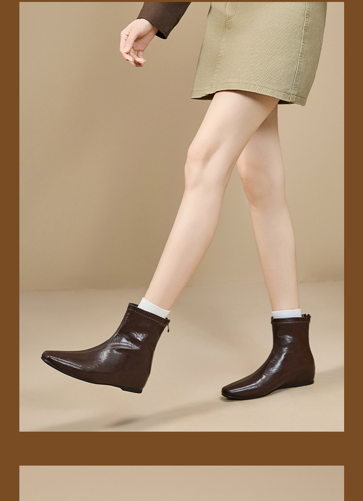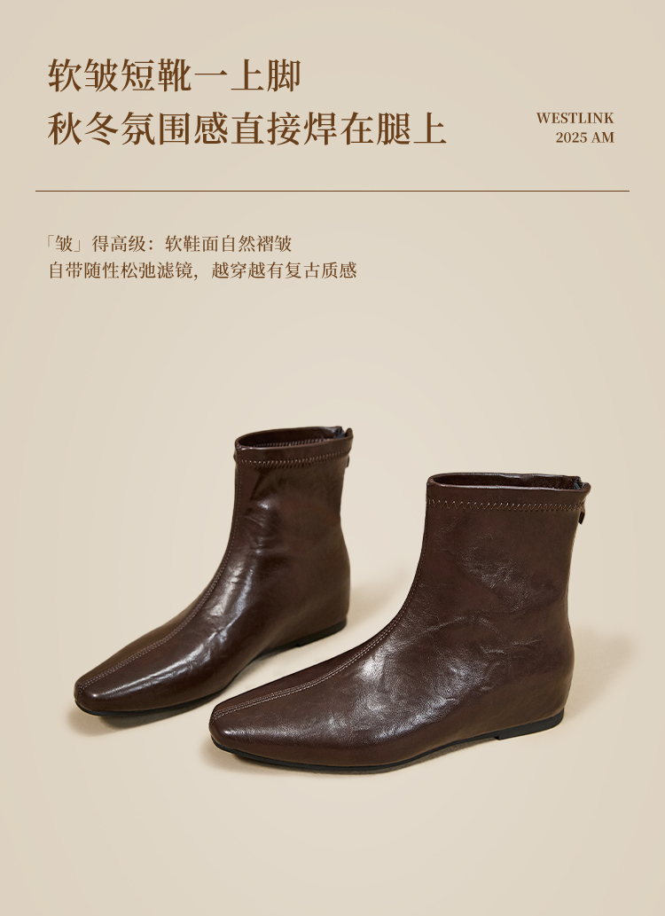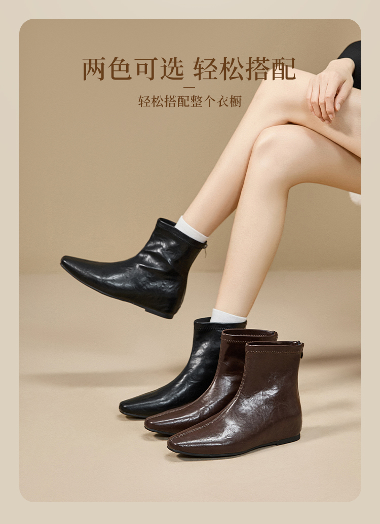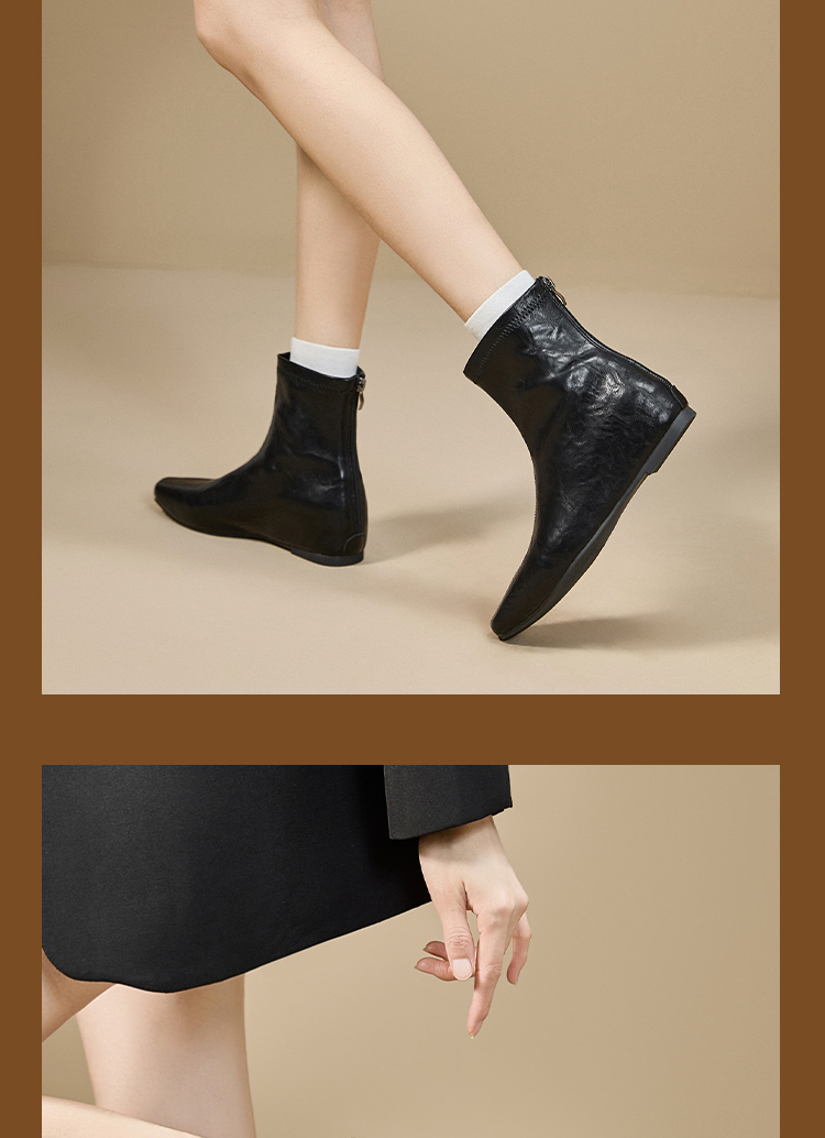 西遇内增高短靴女新款秋冬韩系百搭洋气小踝靴黑色方头瘦瘦靴V2157198