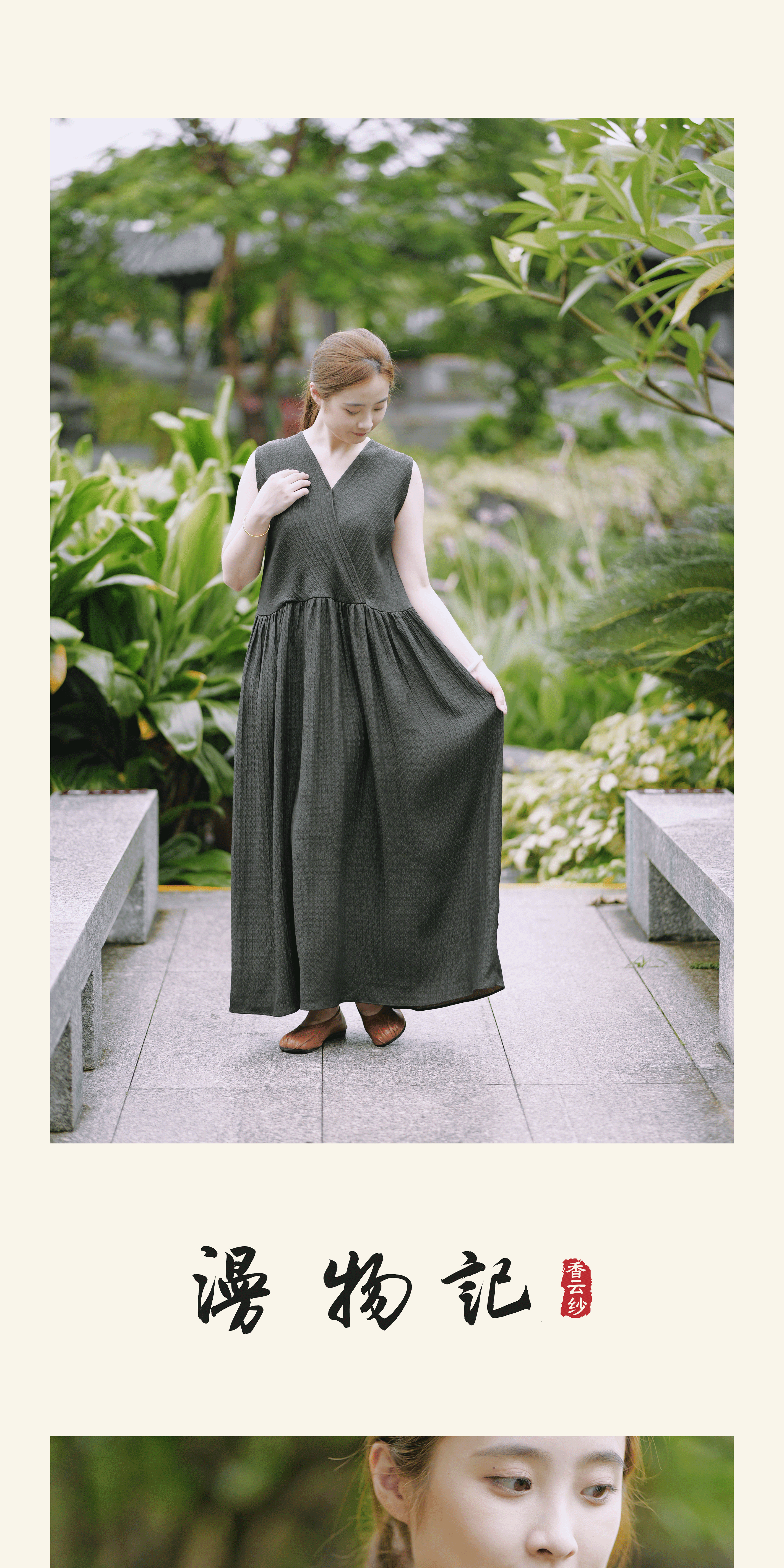 漫物记冠乐皱香云纱V领前后可穿连衣裙xys-141