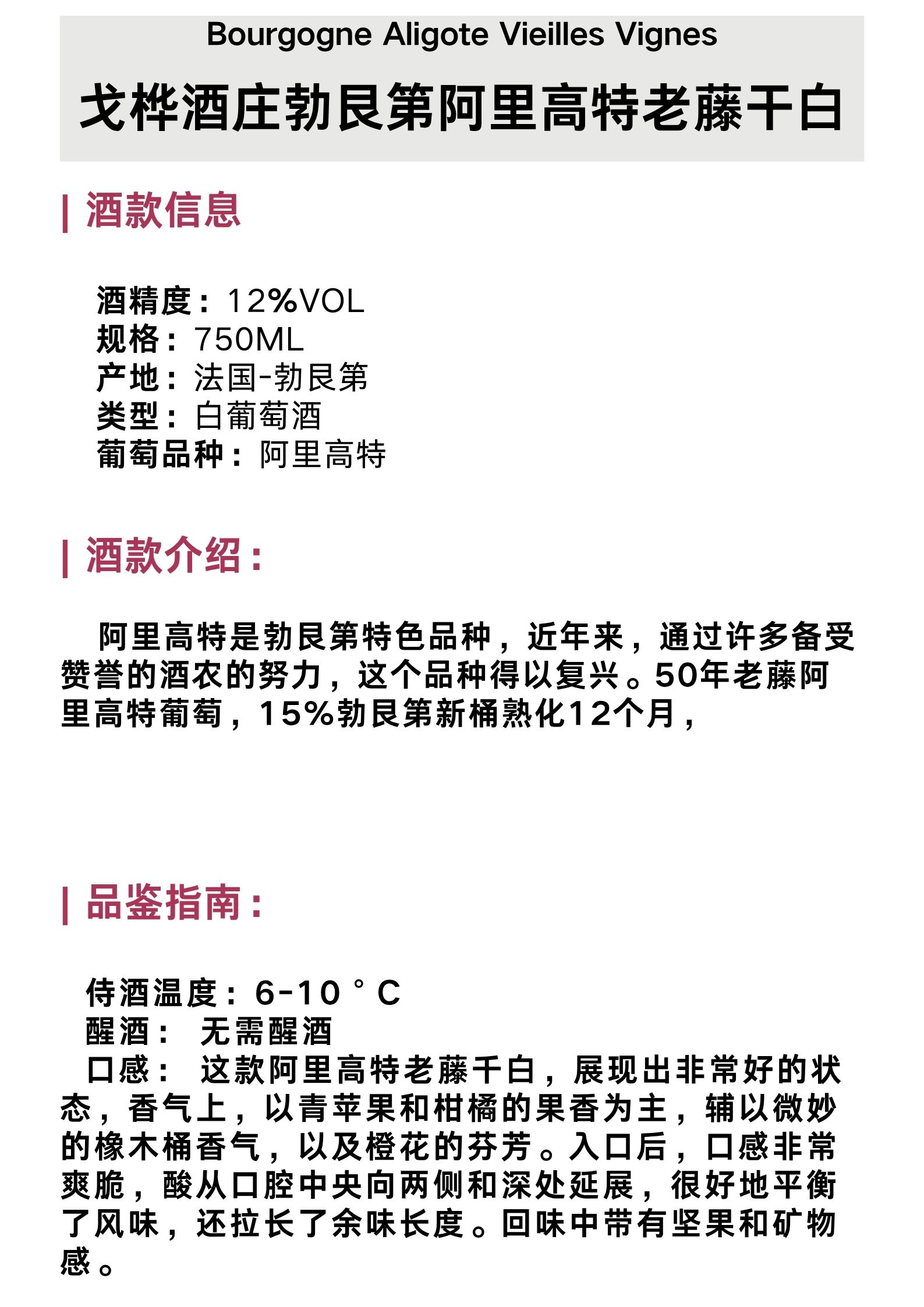 戈桦勃艮第阿里高特老藤干白葡萄酒Domaine Gauffroy Marc & Fils Bourgogne aligote vieilles vignes
