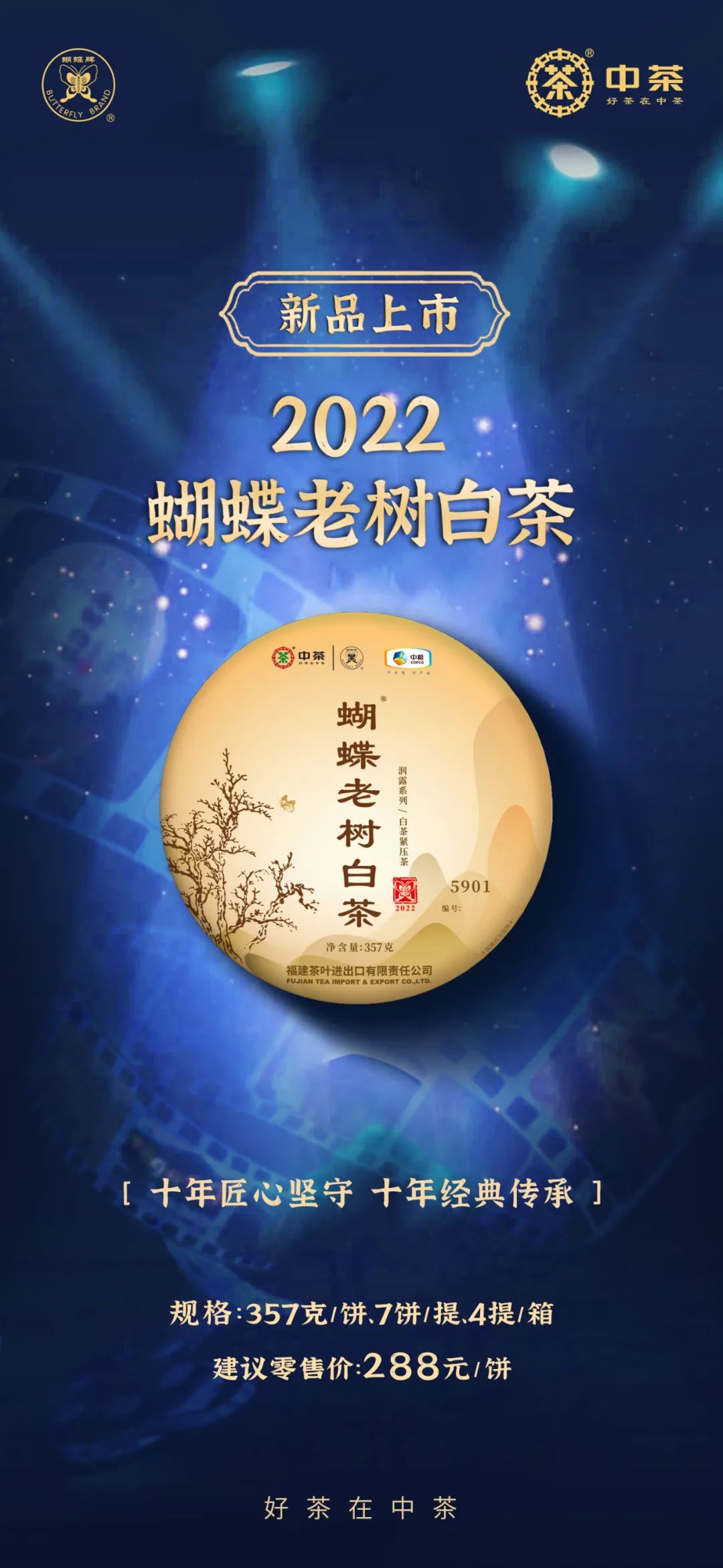 《中粮-中茶》2022新茶蝴蝶老树白茶 5901