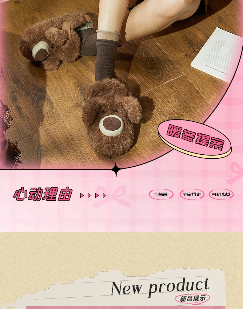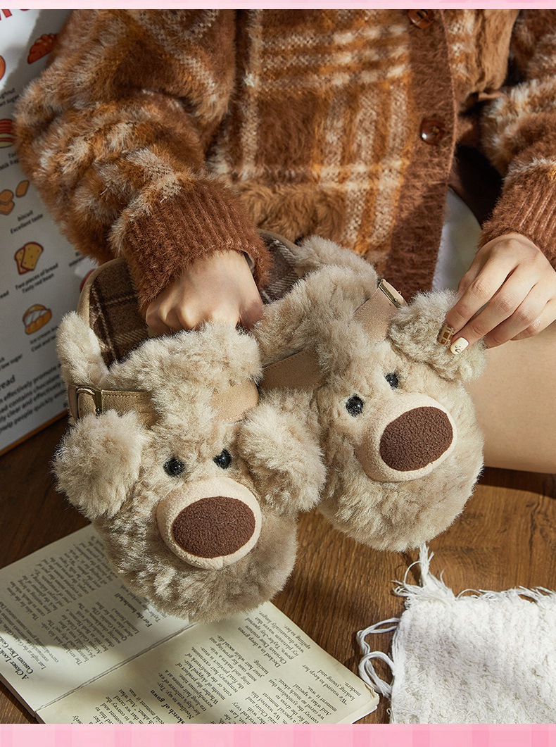 SHEGOTO大鼻子熊保暖秋冬ins包头厚底盆底外穿百搭增高一脚蹬【福利品】