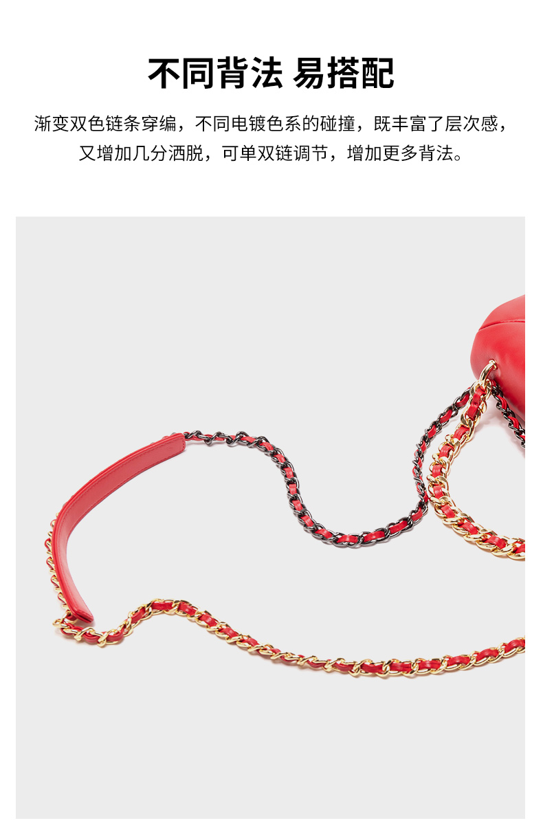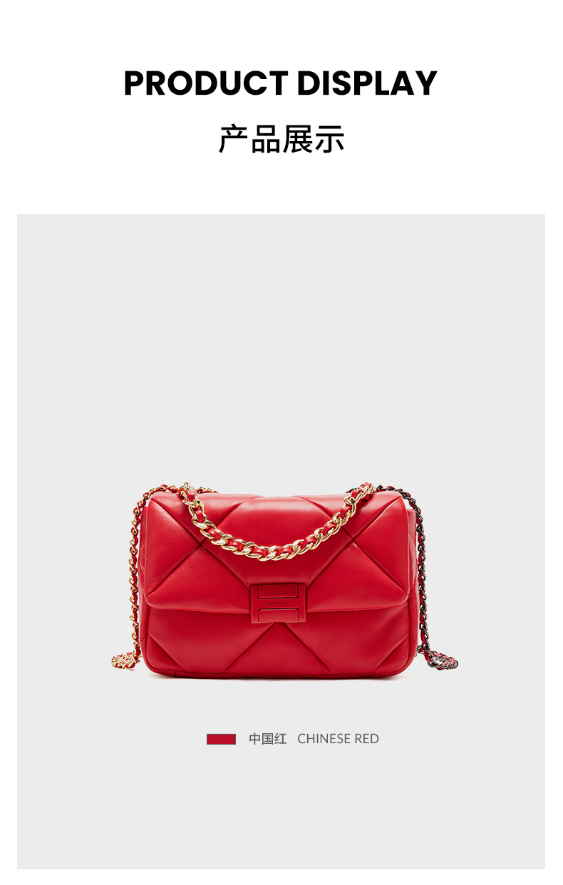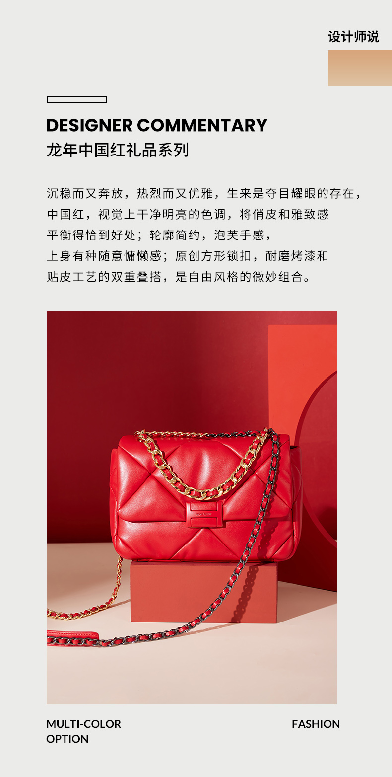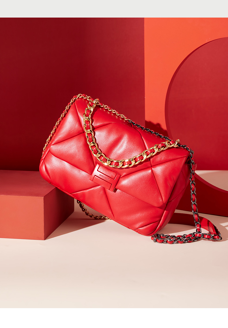 【蛇年中国红礼品系列】梦特娇时髦大菱格渐变链条斜挎包