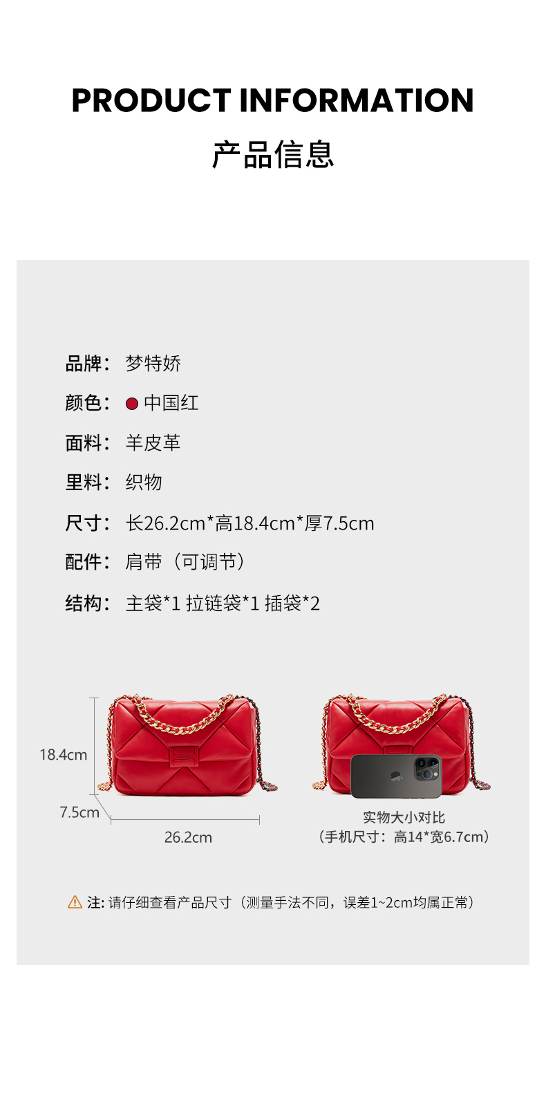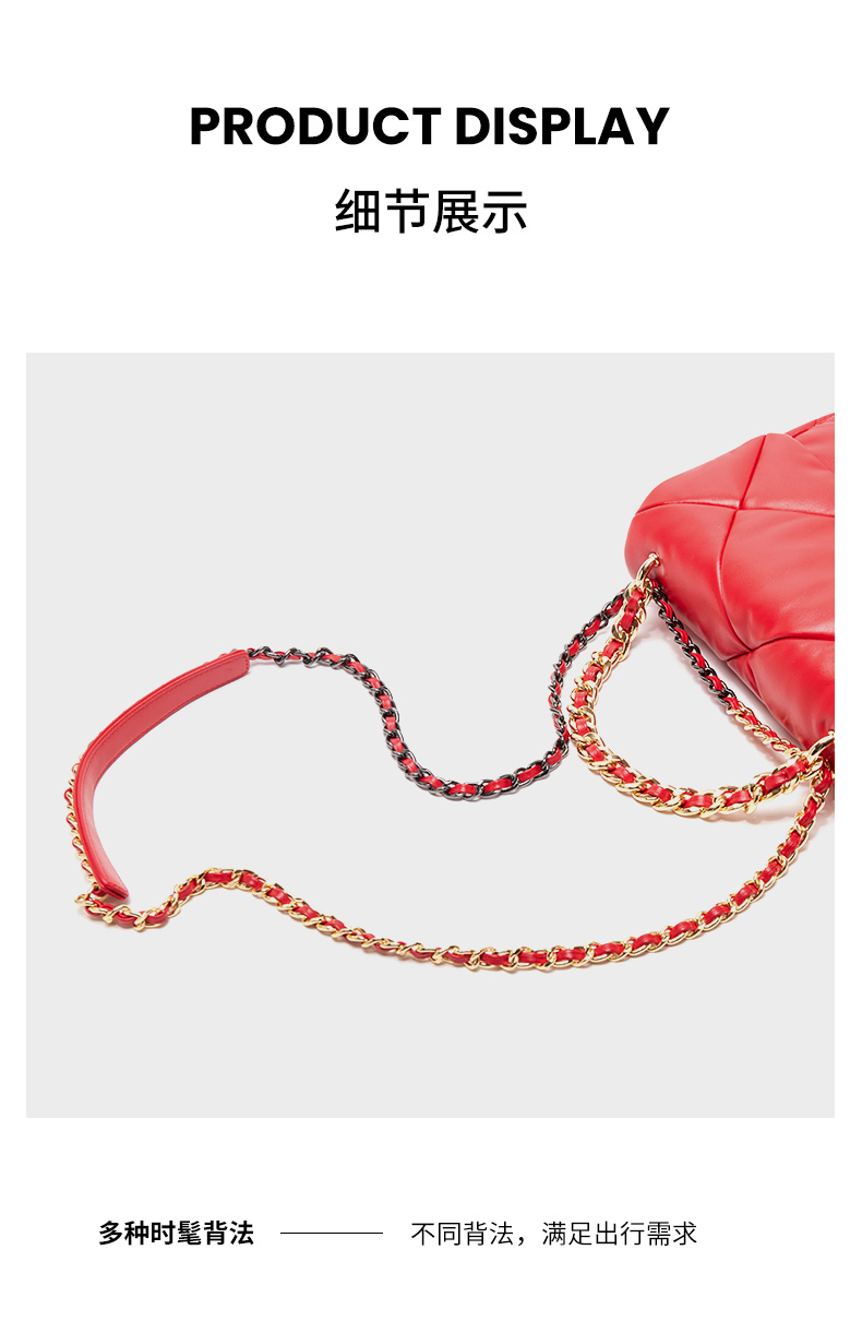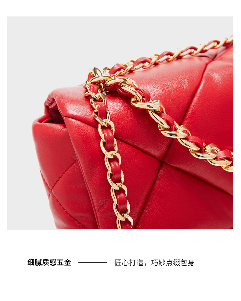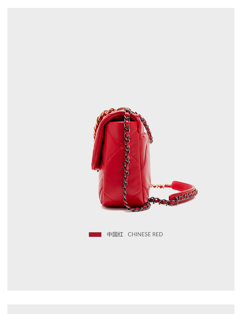 【蛇年中国红礼品系列】梦特娇时髦大菱格渐变链条斜挎包