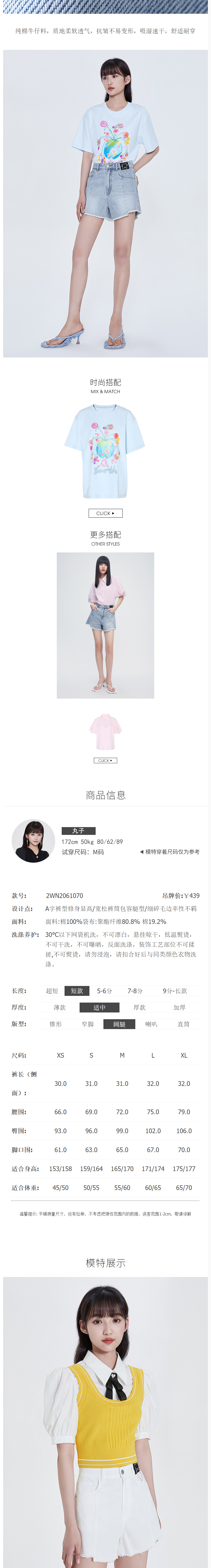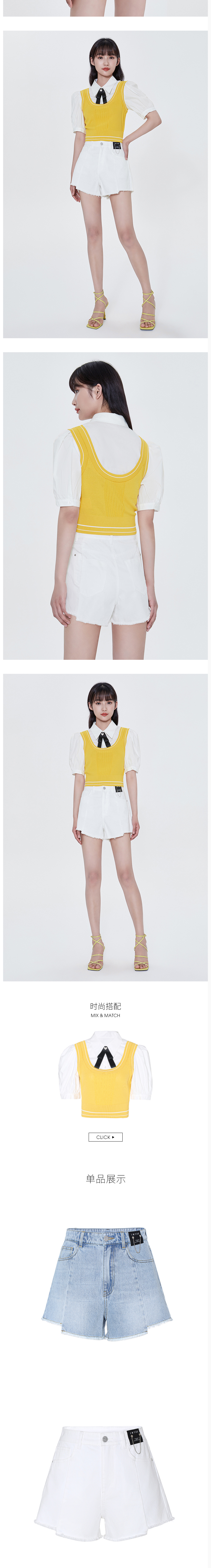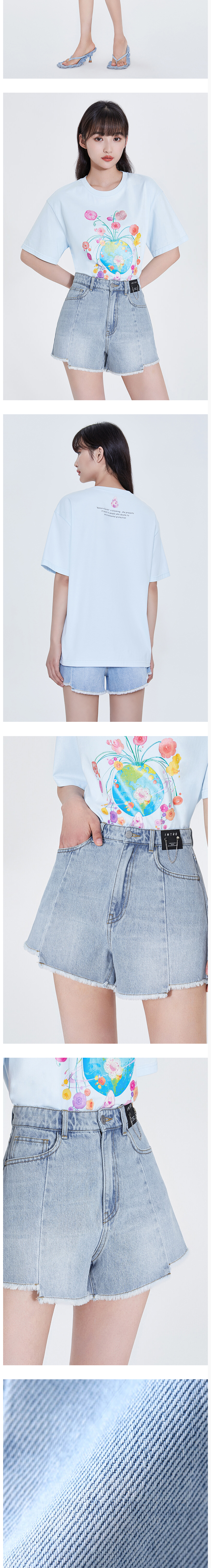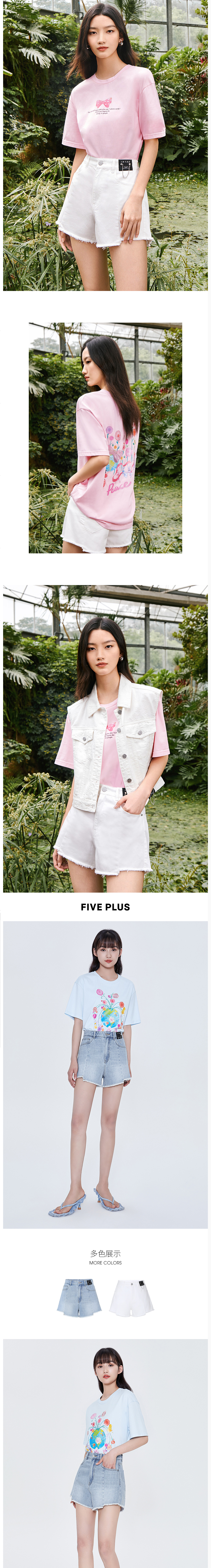 FIVE PLUS2022新款女夏装小众牛仔短裤女高腰A字毛边阔腿裤子2WN2061070