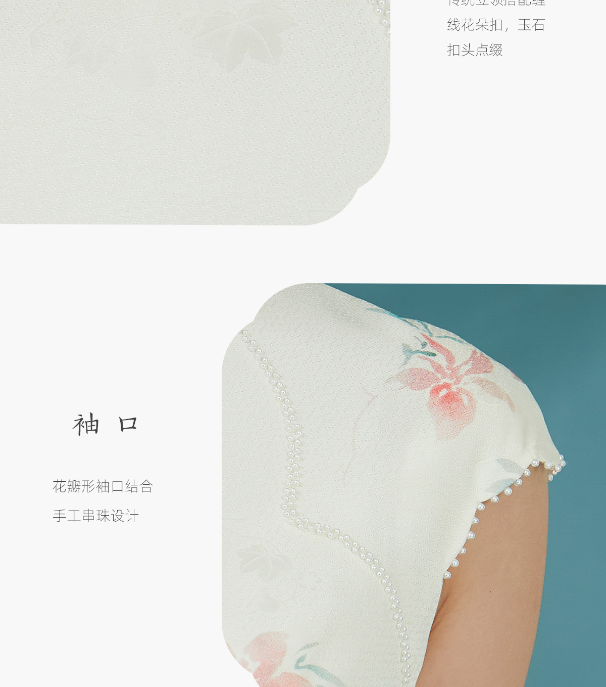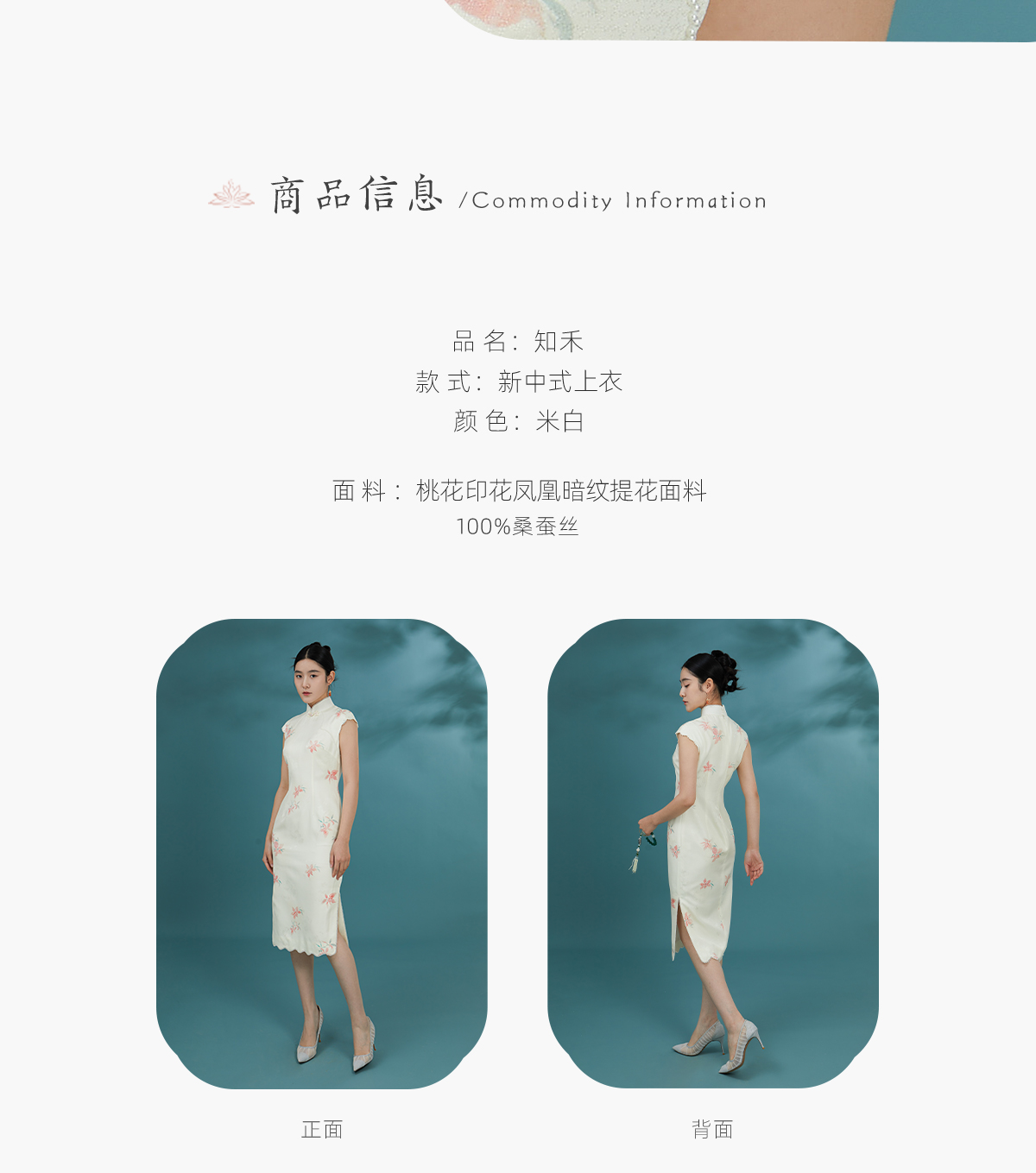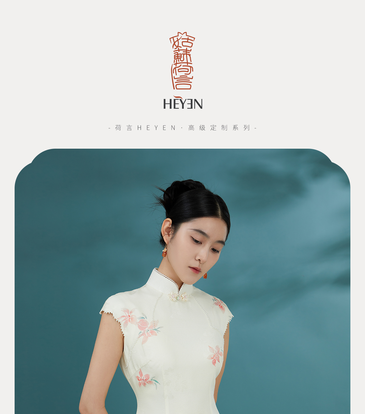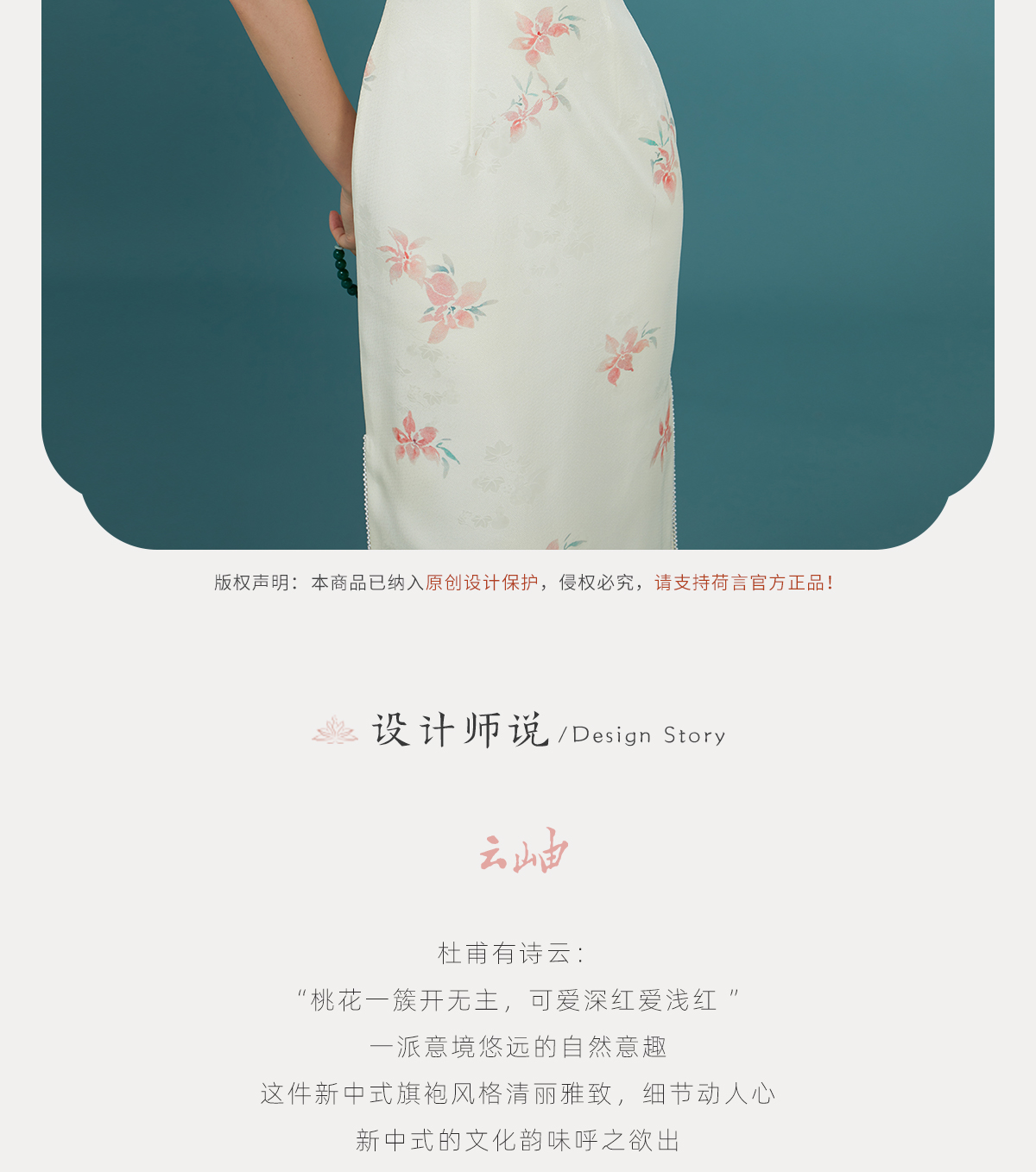荷言HEYEN 云岫 桃花印花真丝立领旗袍缠线花朵盘扣高级定制