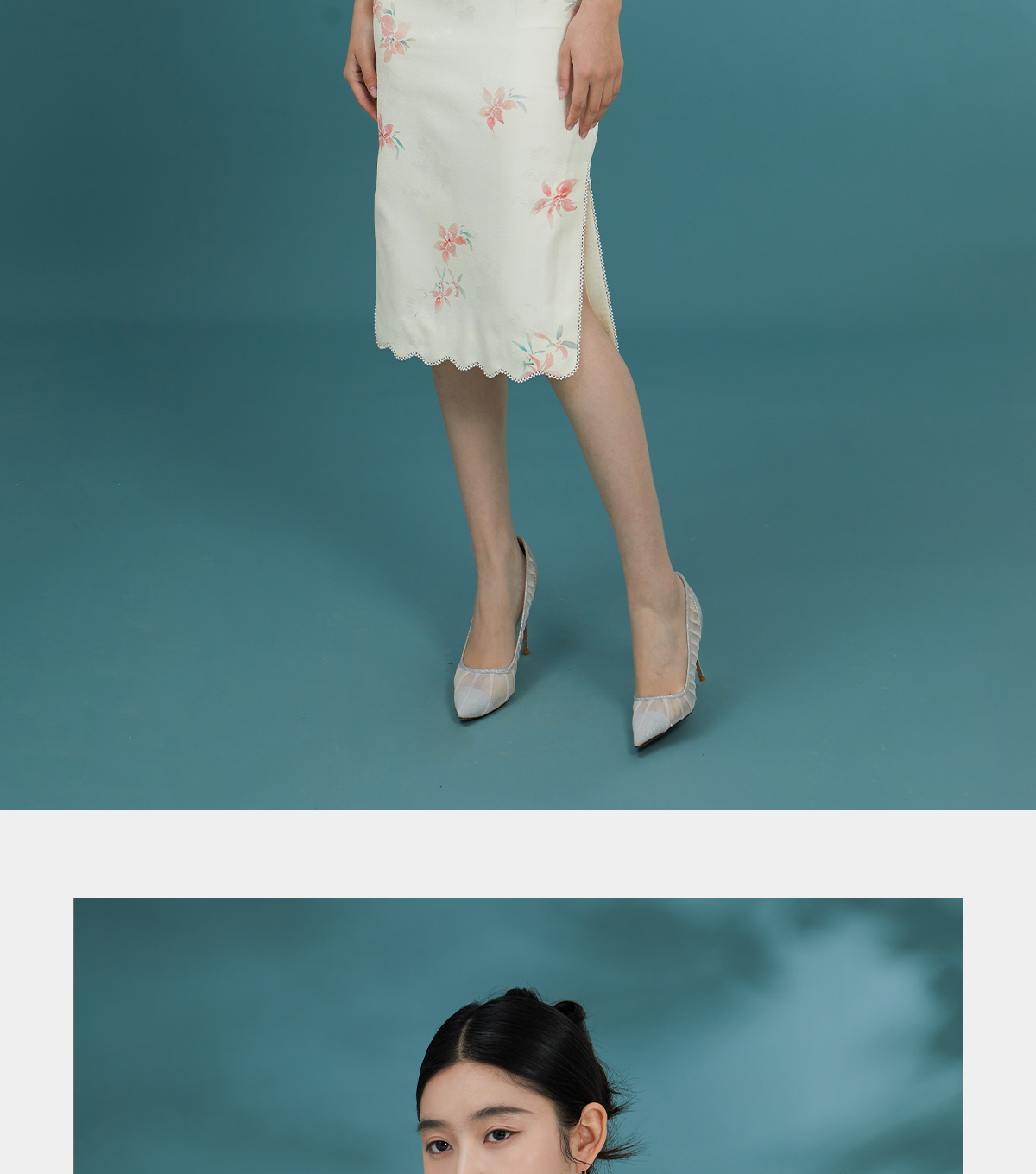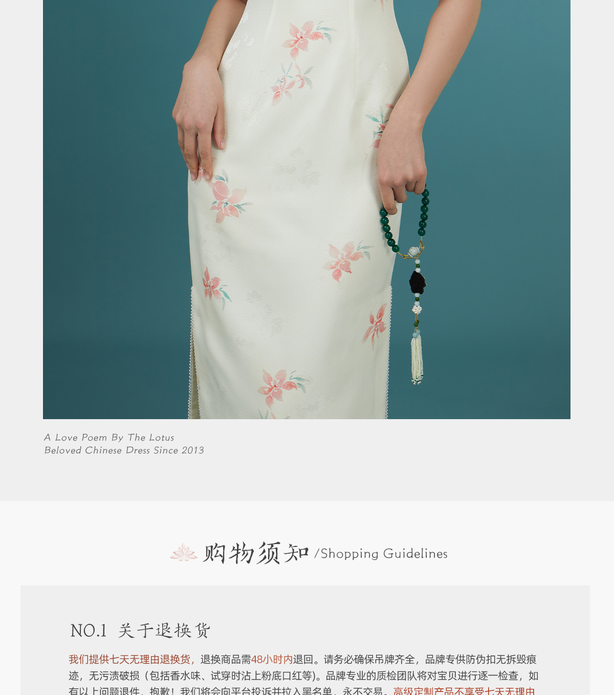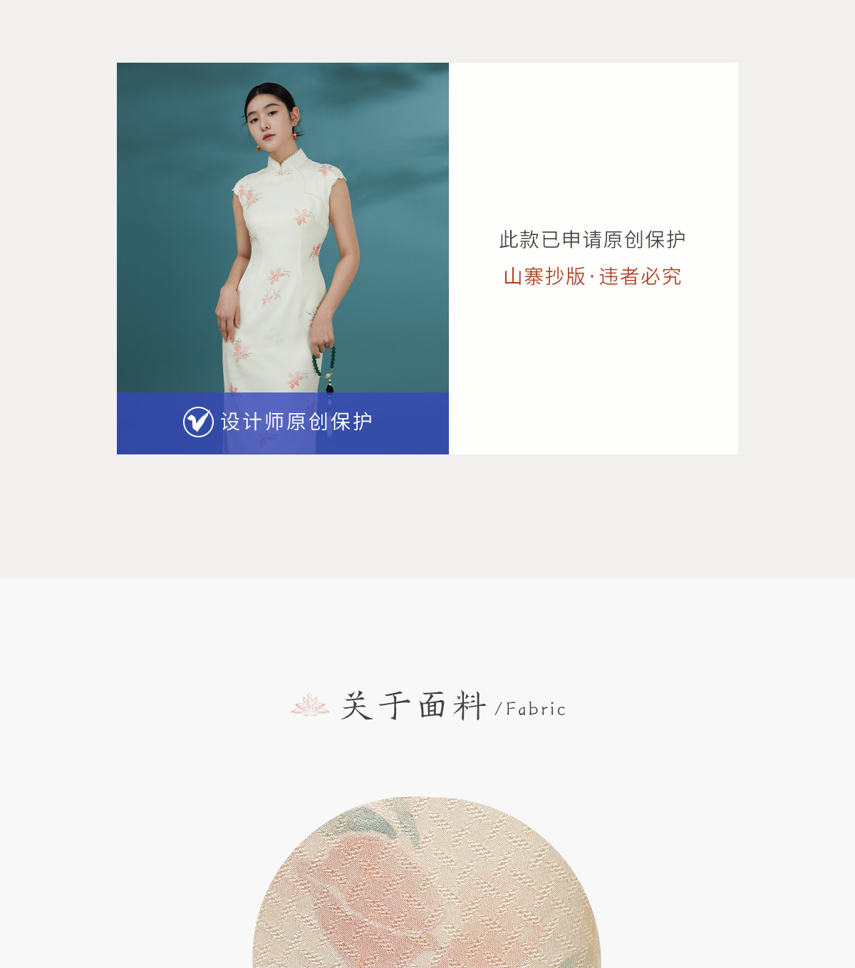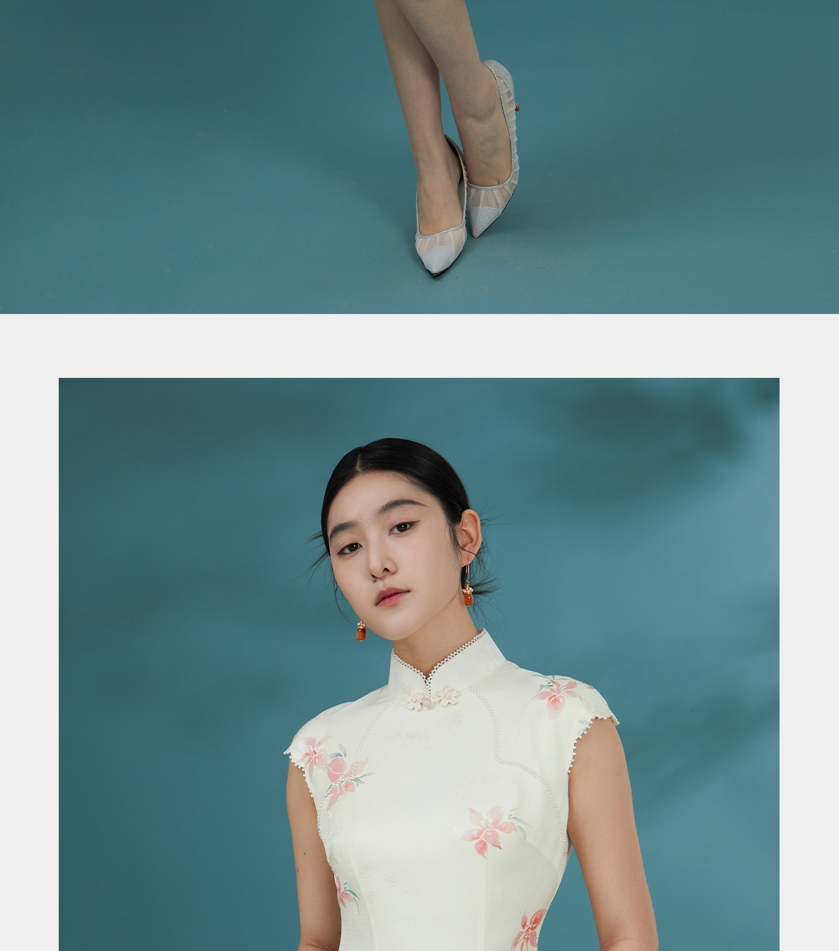 荷言HEYEN 云岫 桃花印花真丝立领旗袍缠线花朵盘扣高级定制