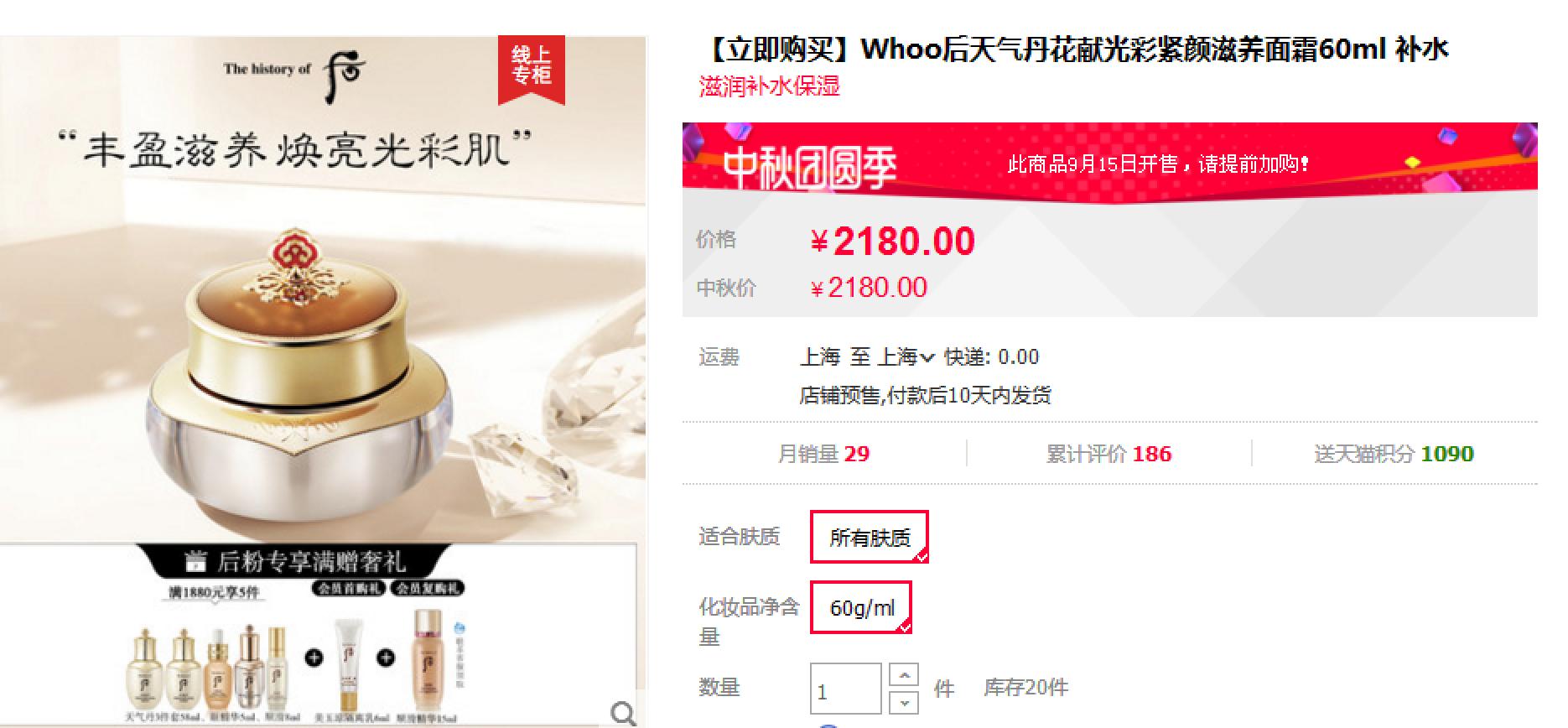 【3.30 大牌再降价】Whoo后天气丹华泫面霜10ml中样*3