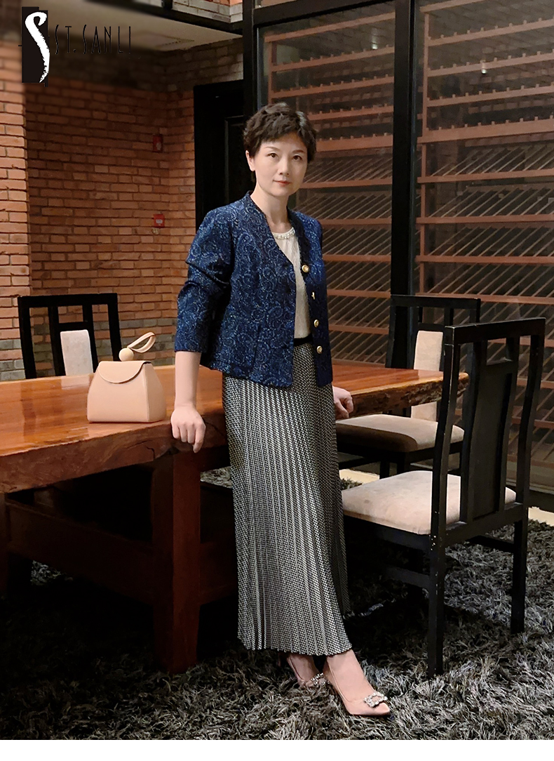 圣三利女装 桑蚕丝拼接针织开衫SL121M01