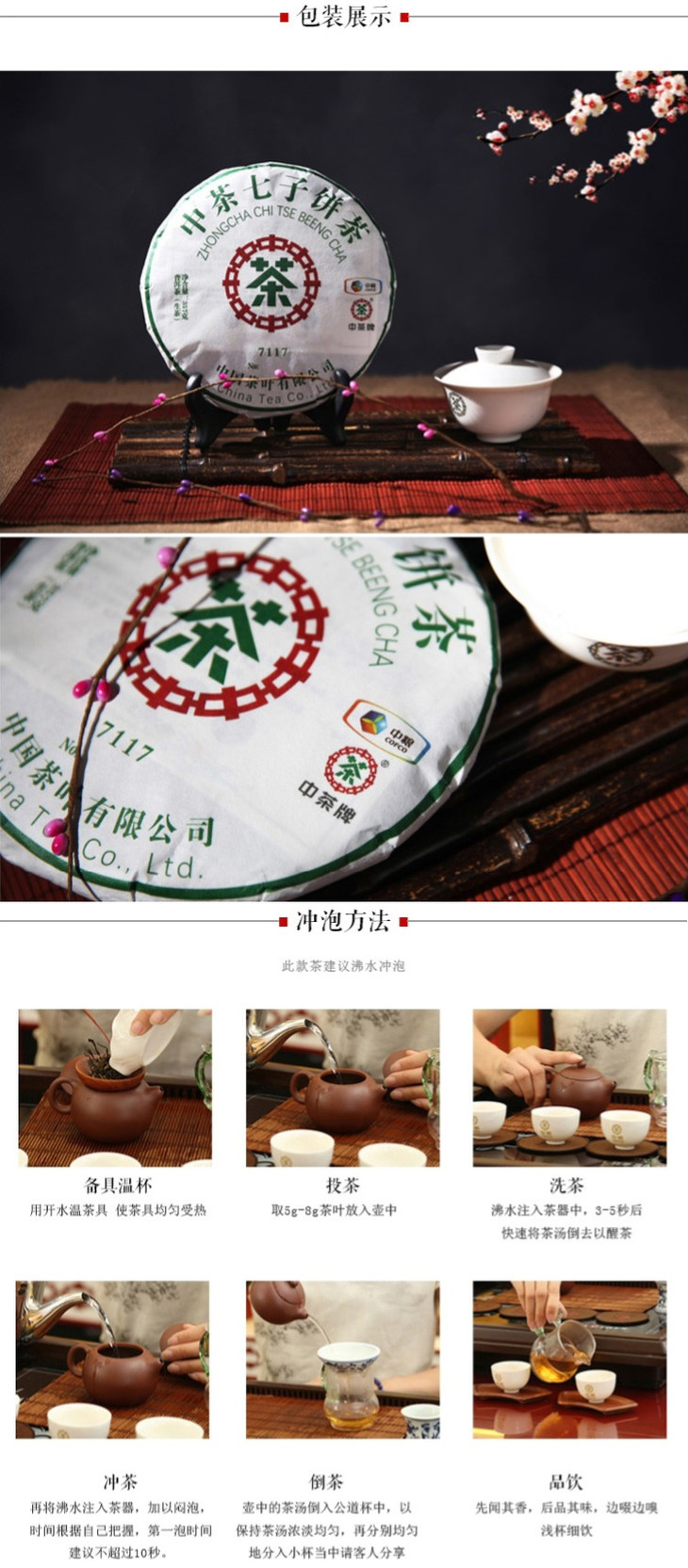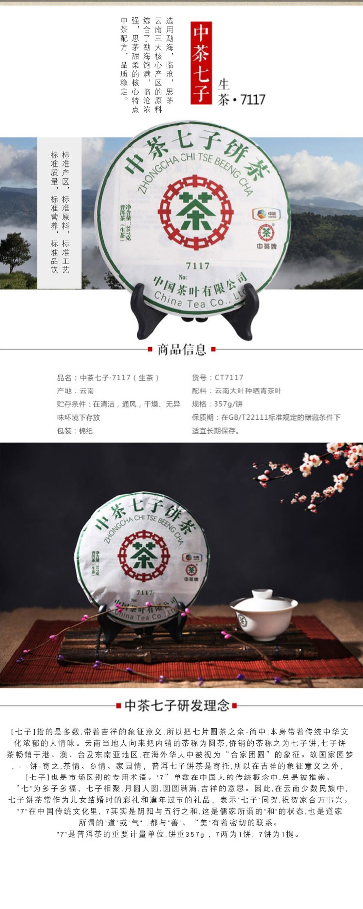 中粮-中茶生茶7117云南七子生茶357g/饼 /云南干仓直发