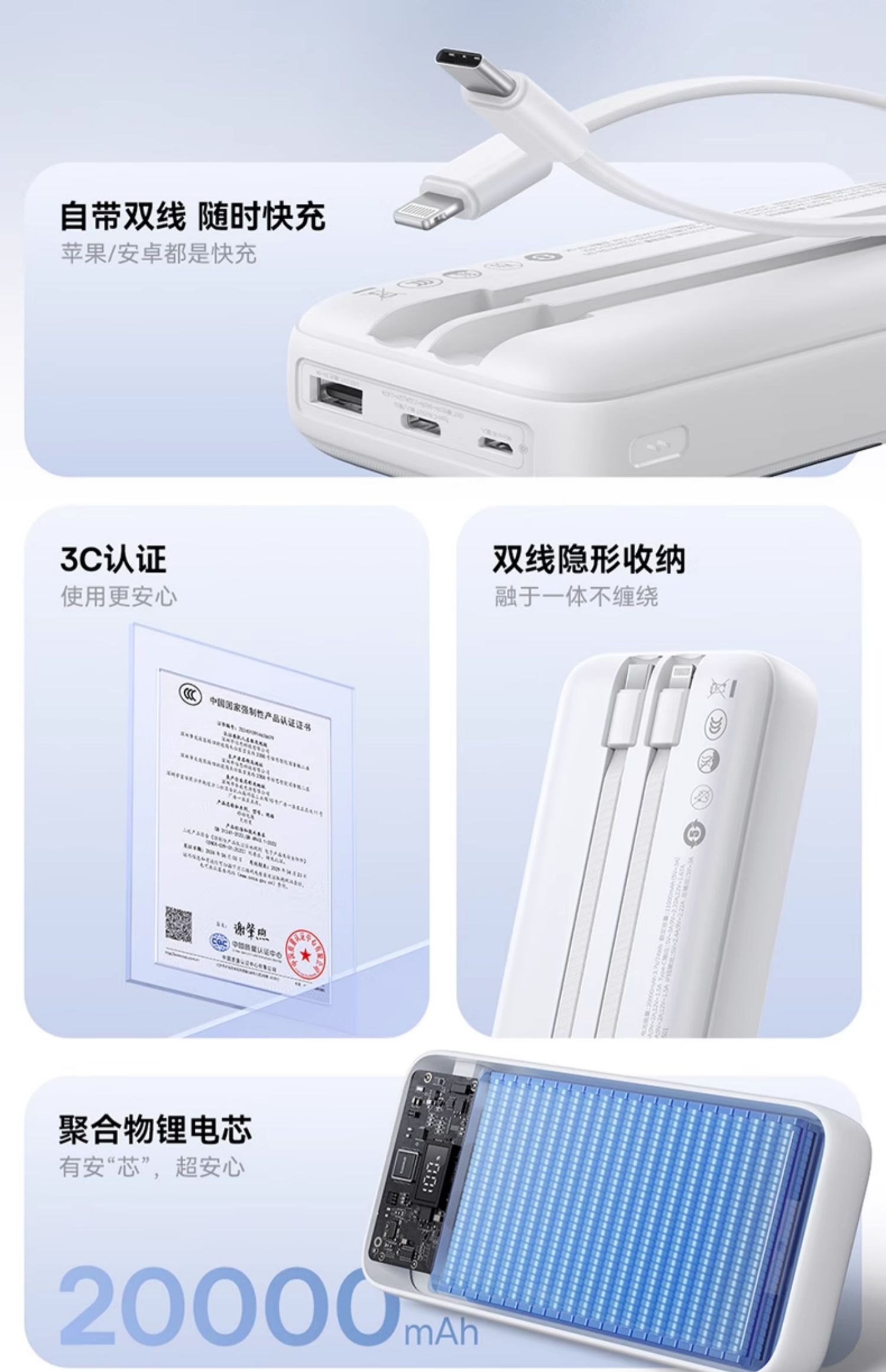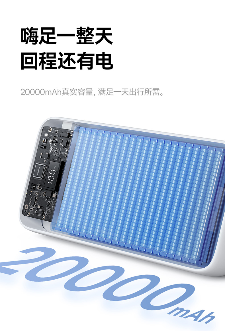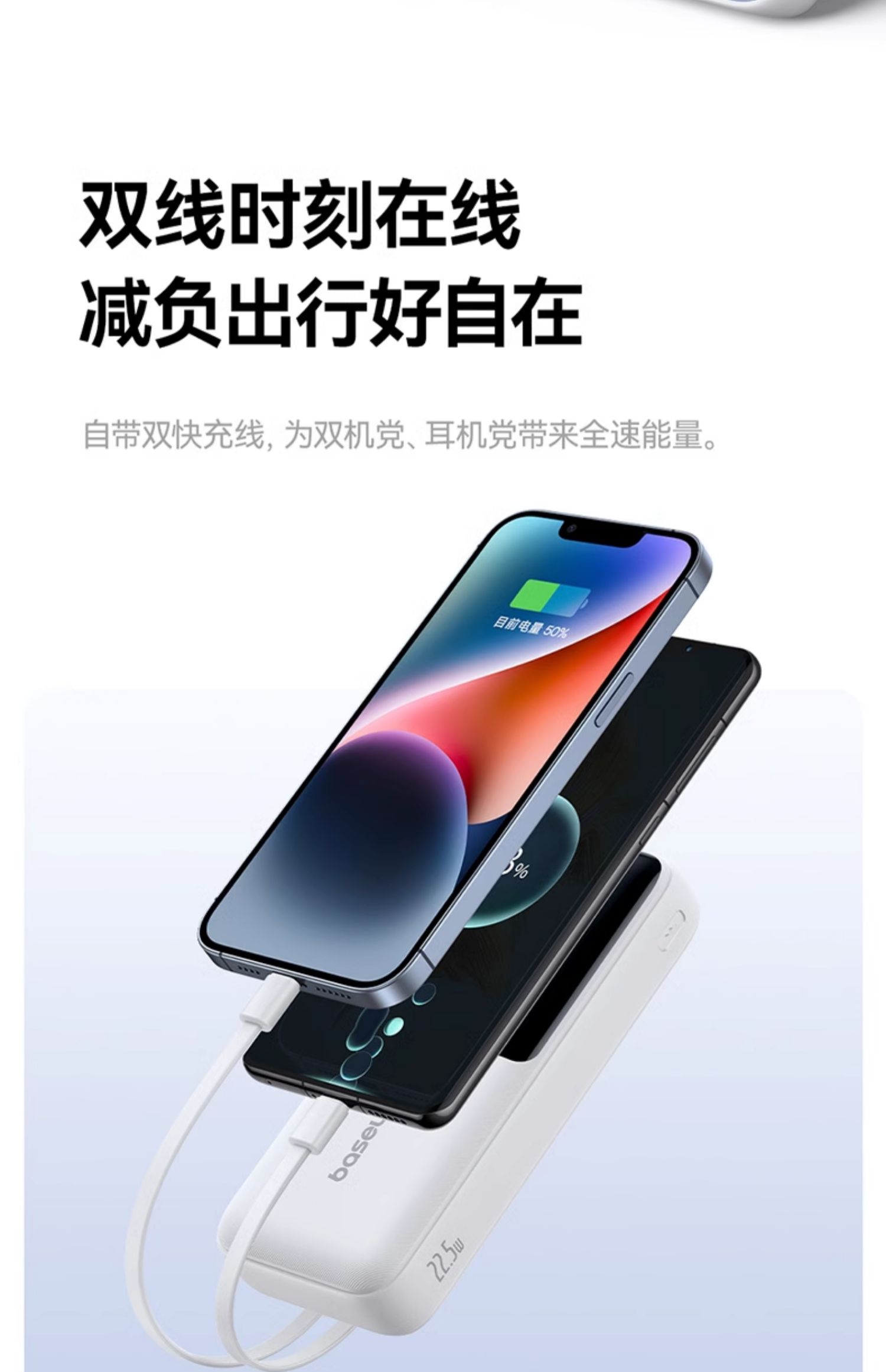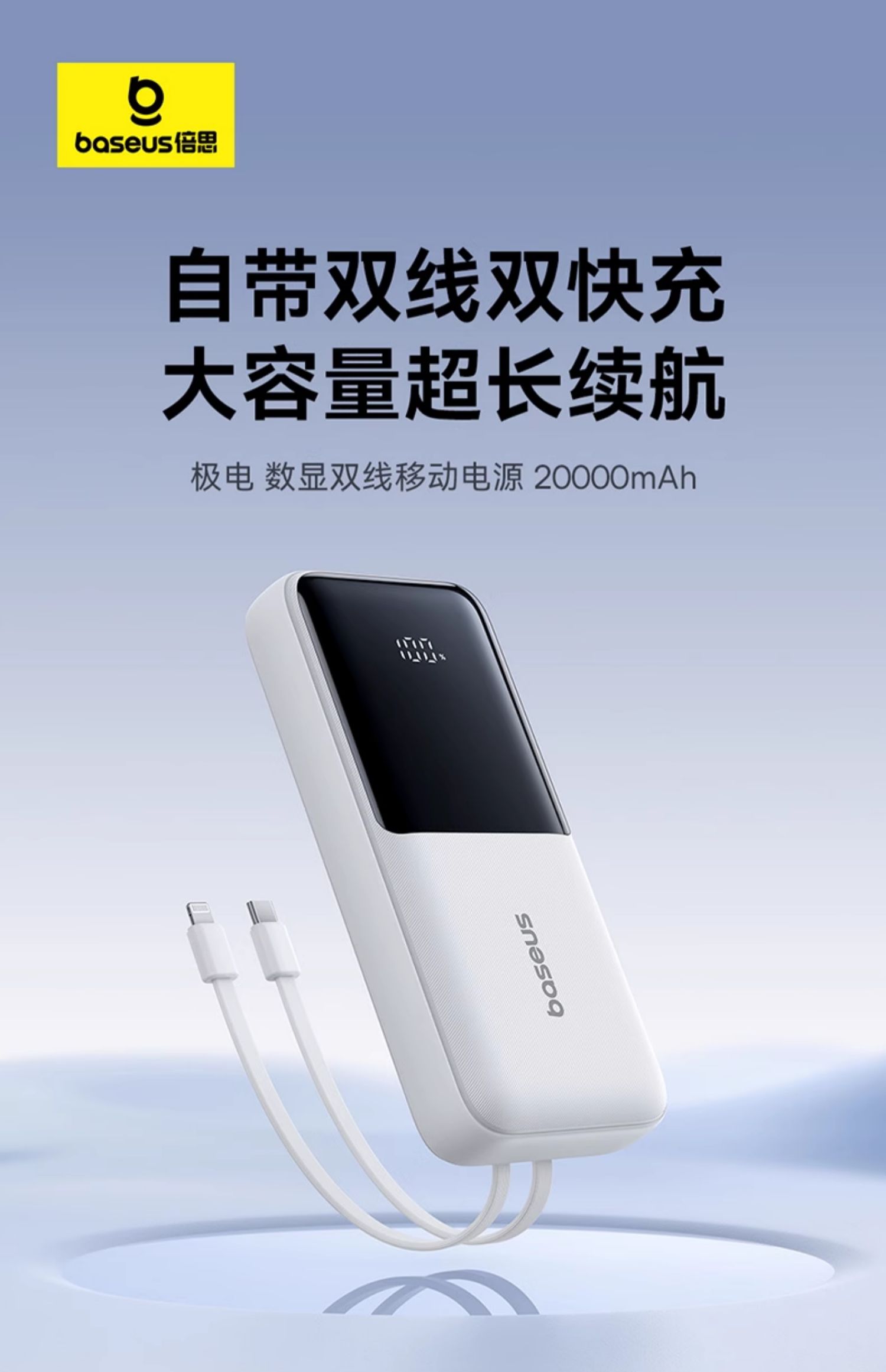 倍思2024年新款大容量20000毫安极充充电宝 小巧便携自带线
