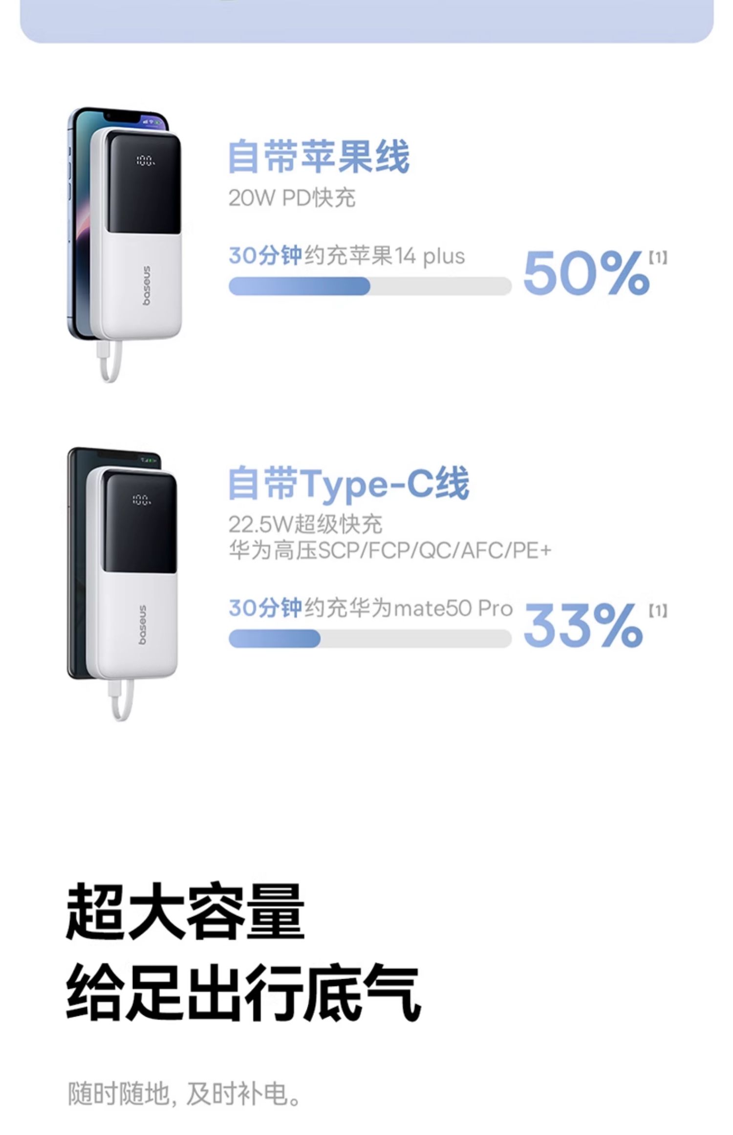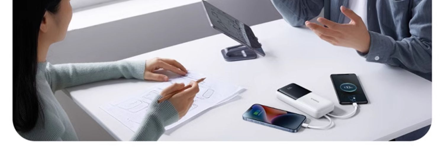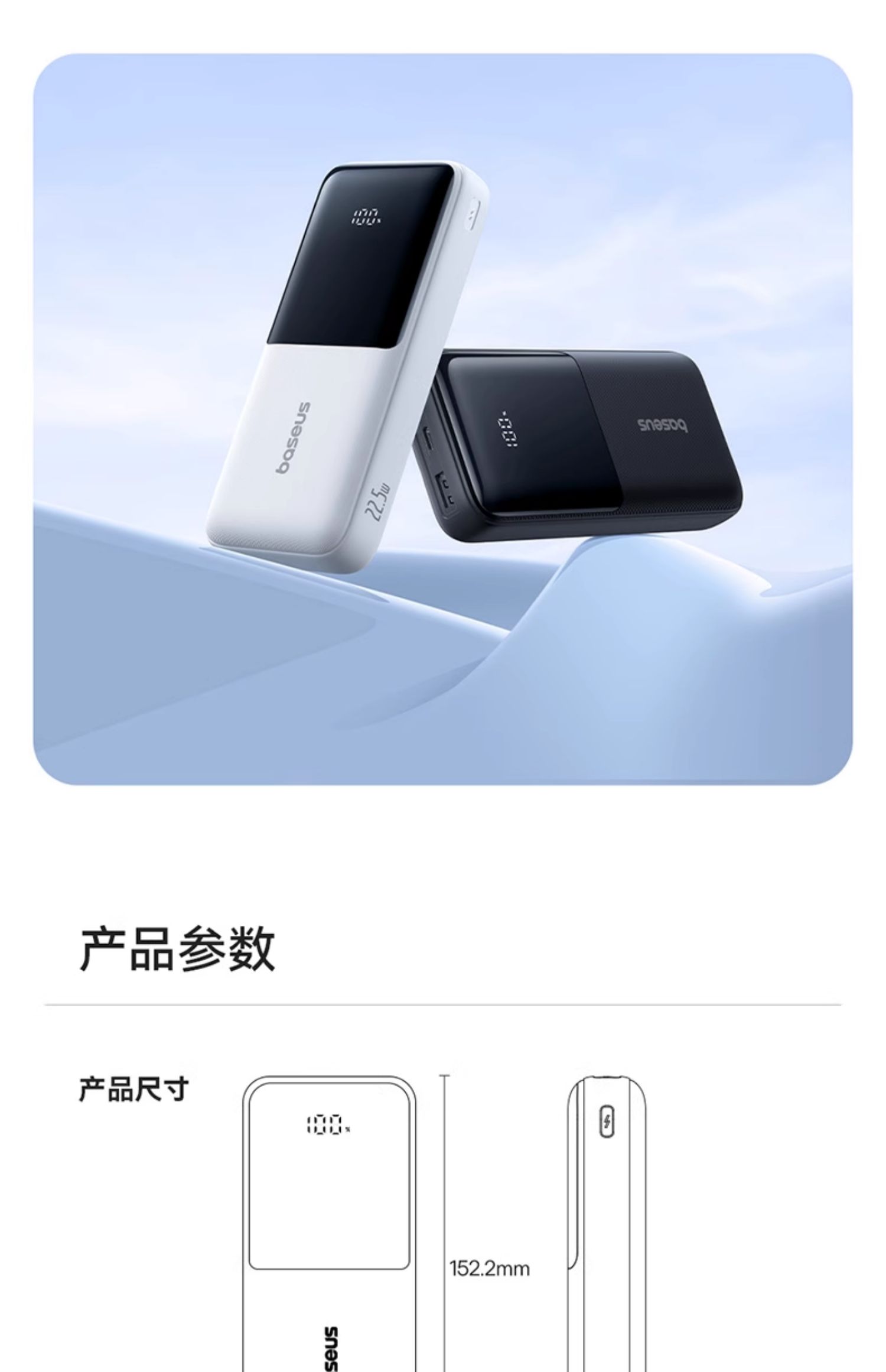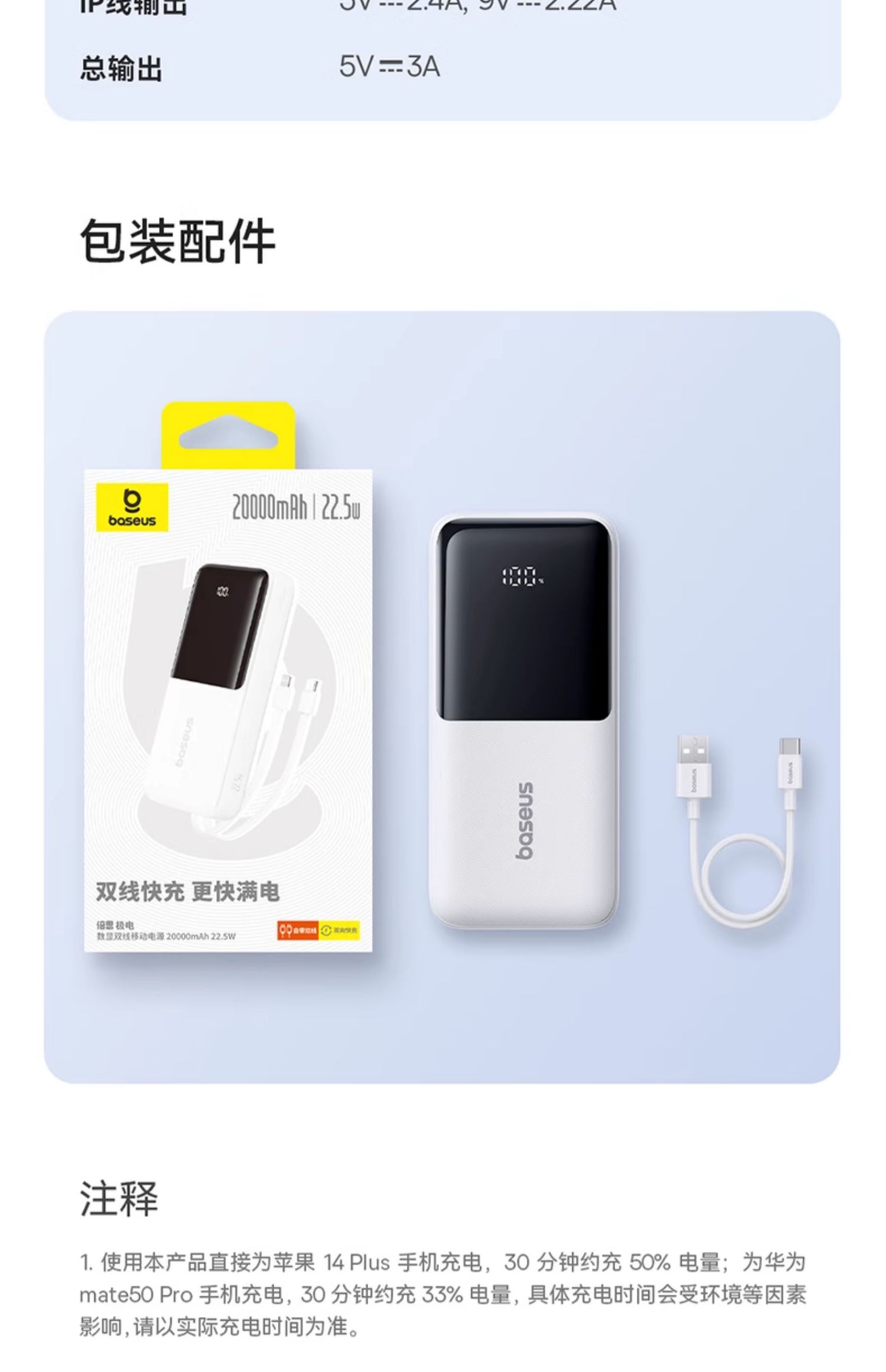 倍思2024年新款大容量20000毫安极充充电宝 小巧便携自带线