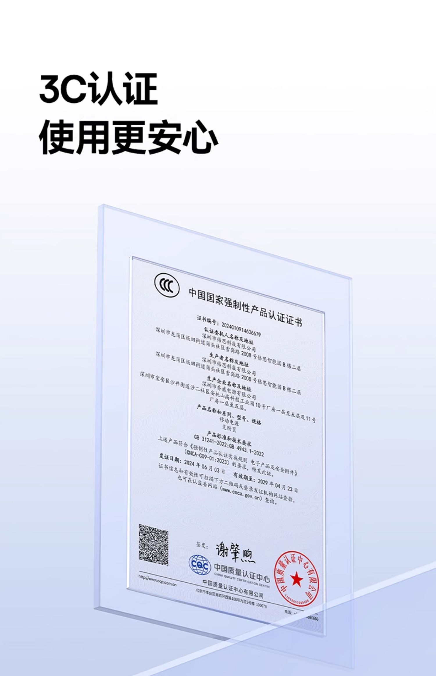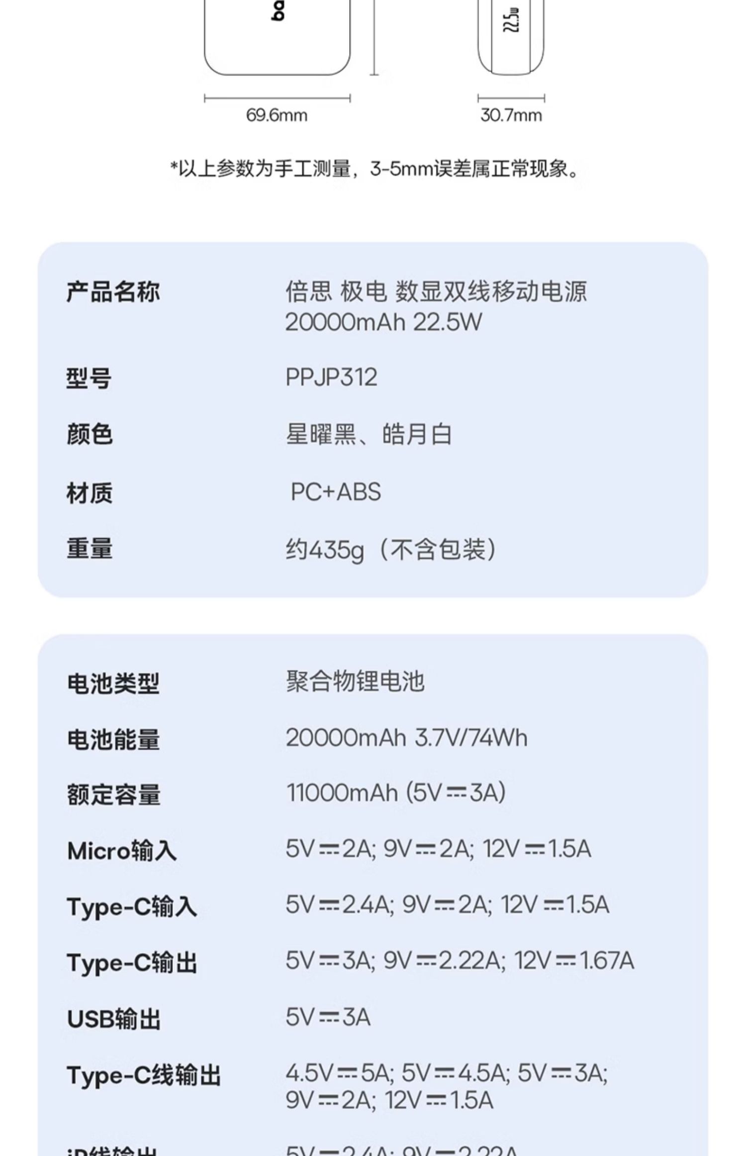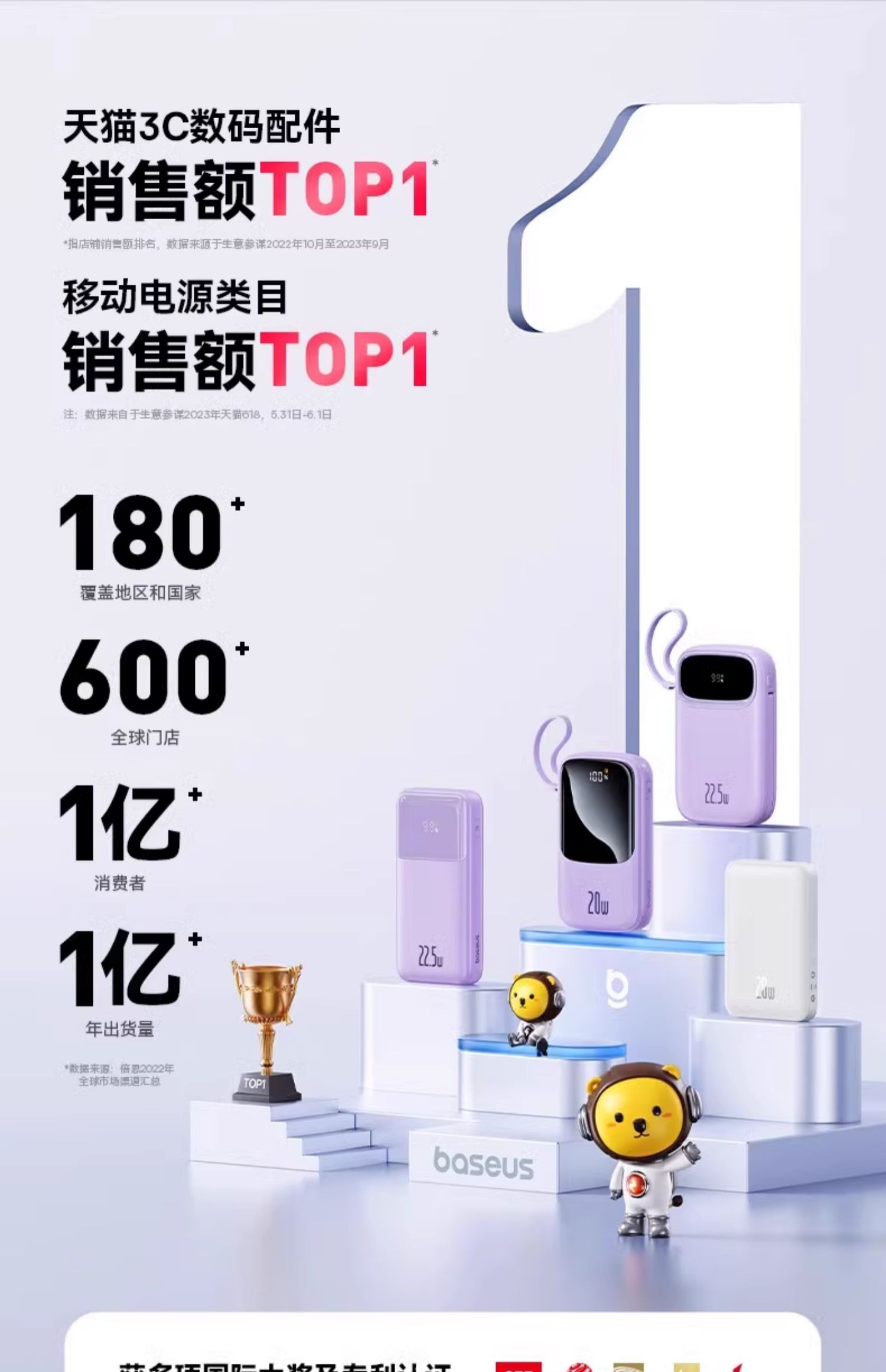 倍思2024年新款大容量20000毫安极充充电宝 小巧便携自带线