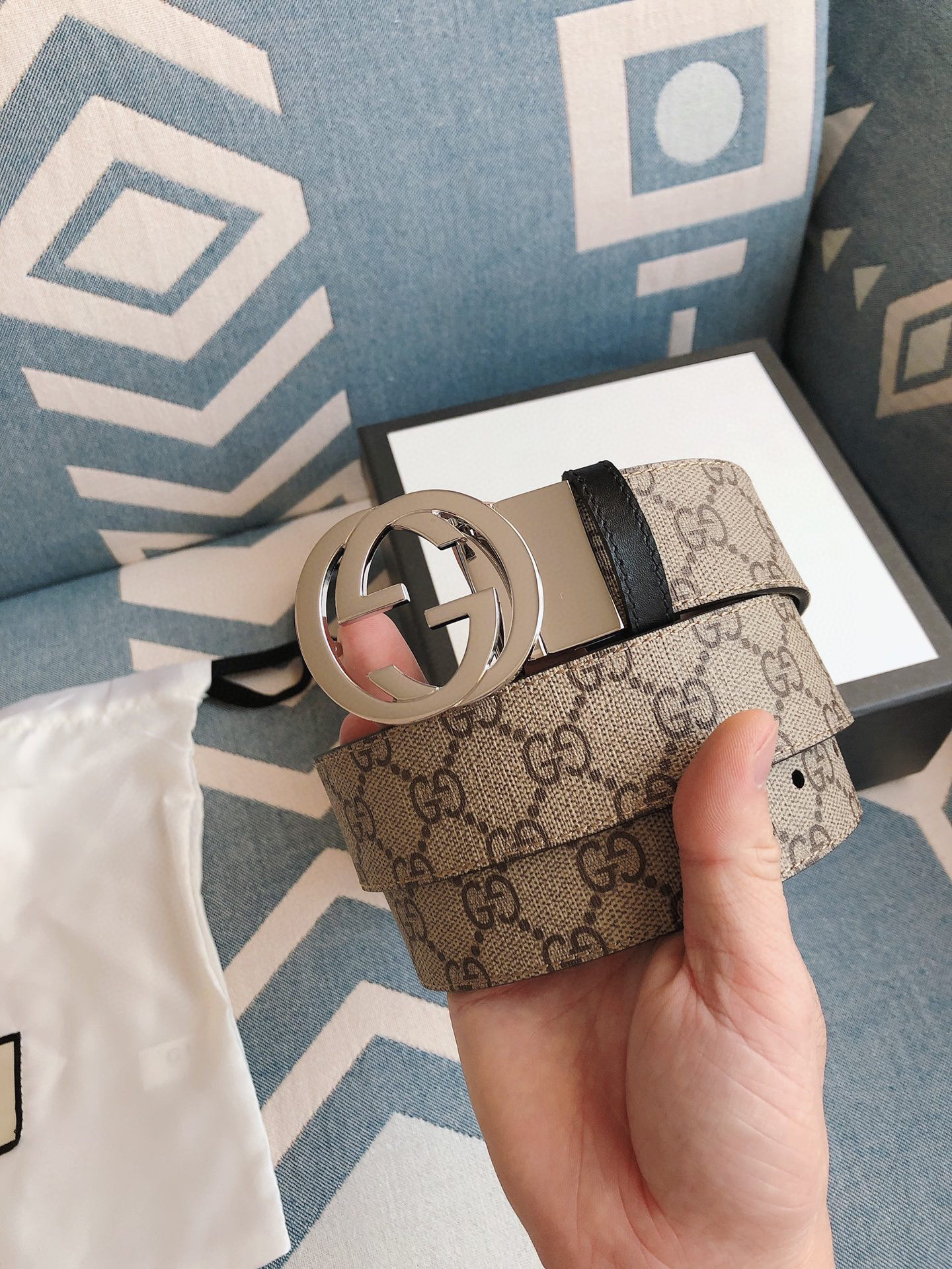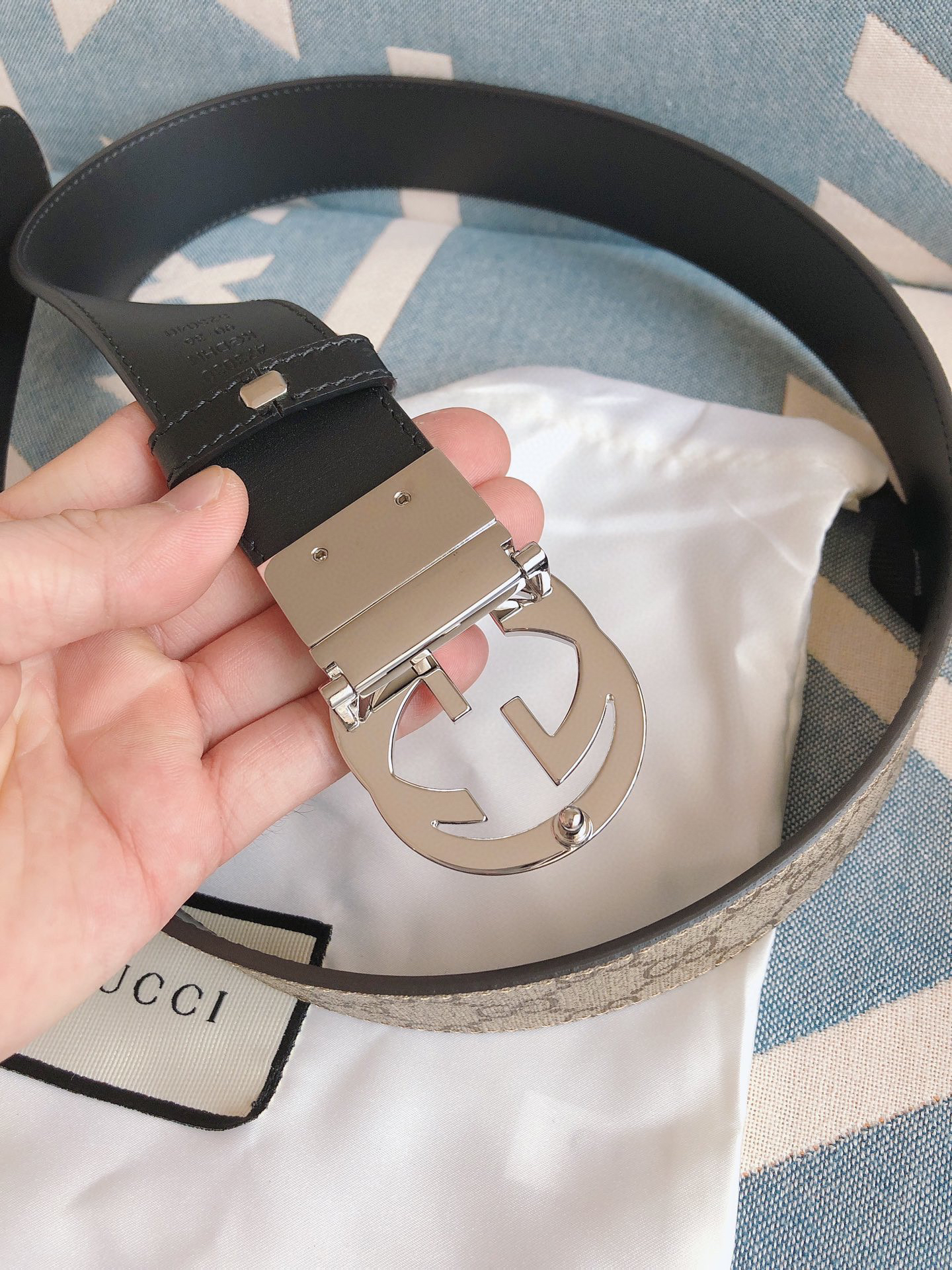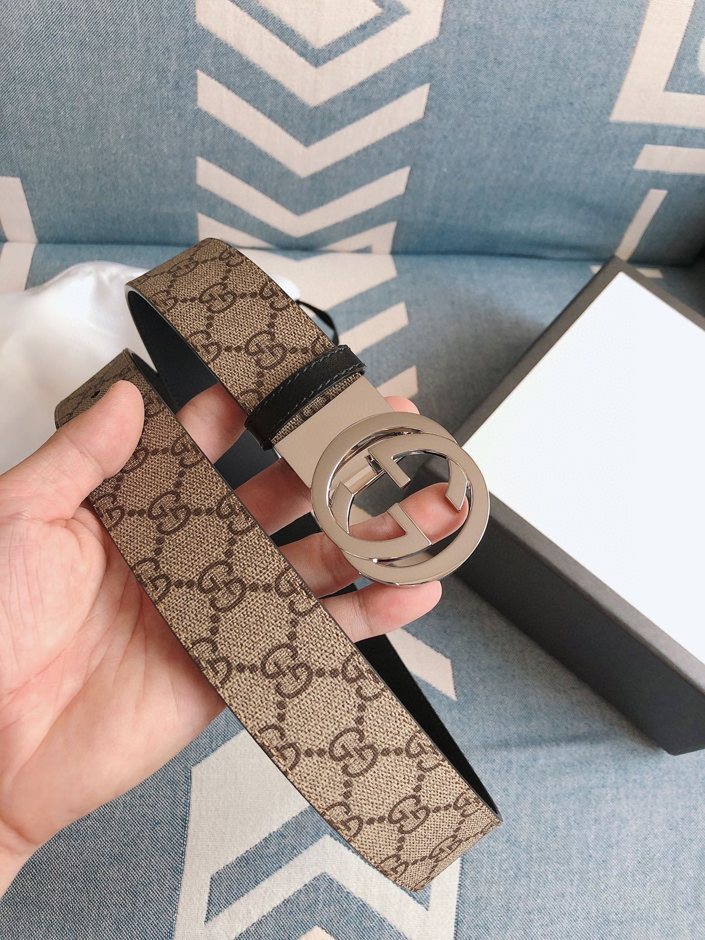 GG-老花纹-银扣.双面可用男士腰带