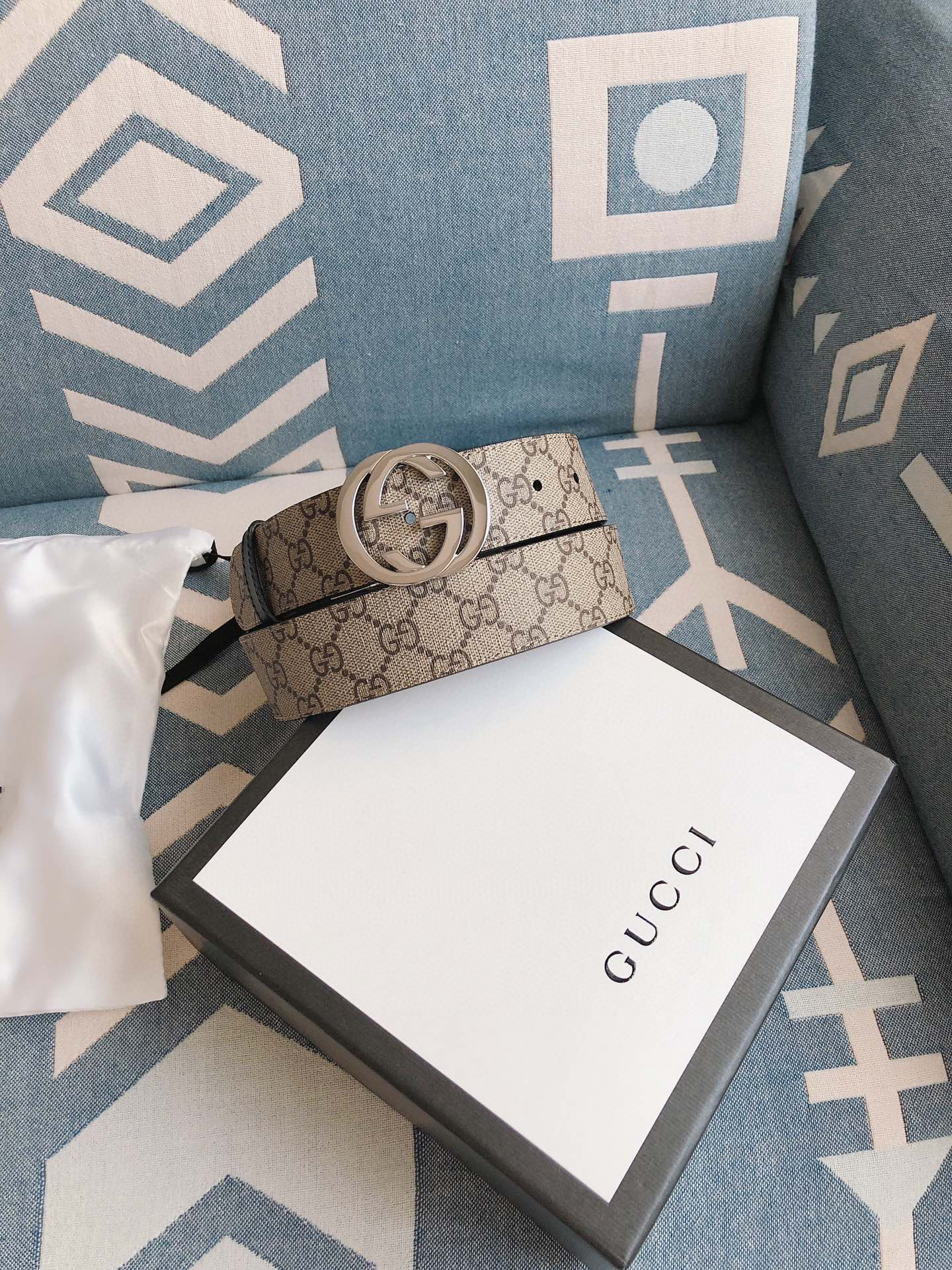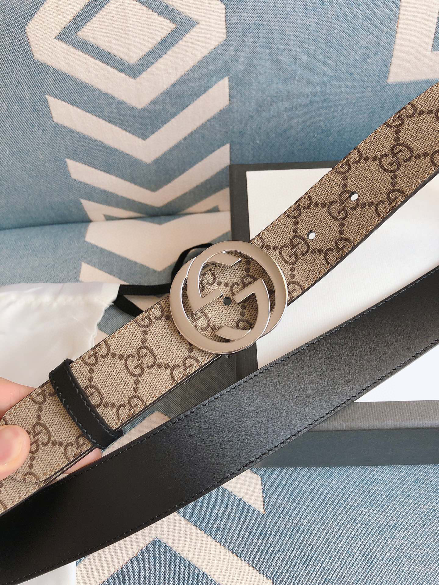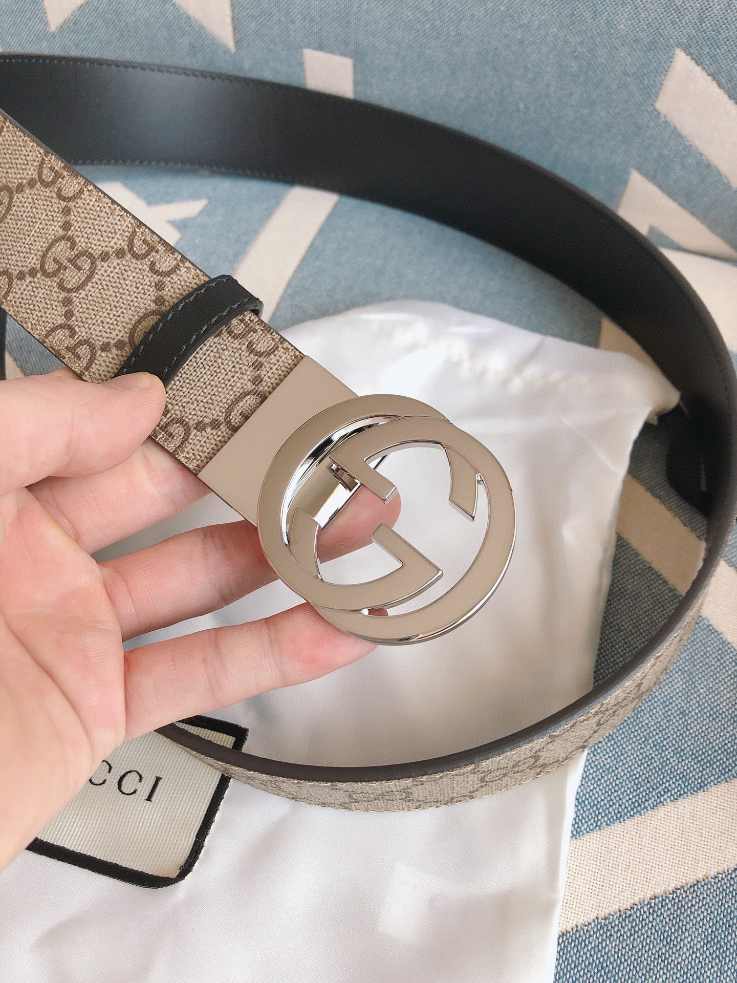 GG-老花纹-银扣.双面可用男士腰带