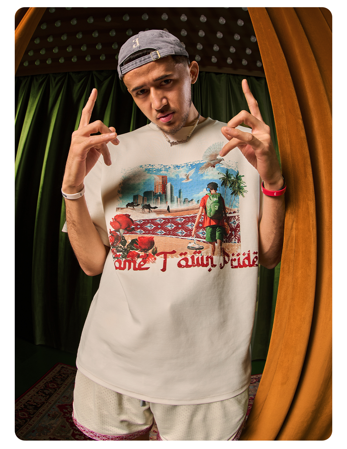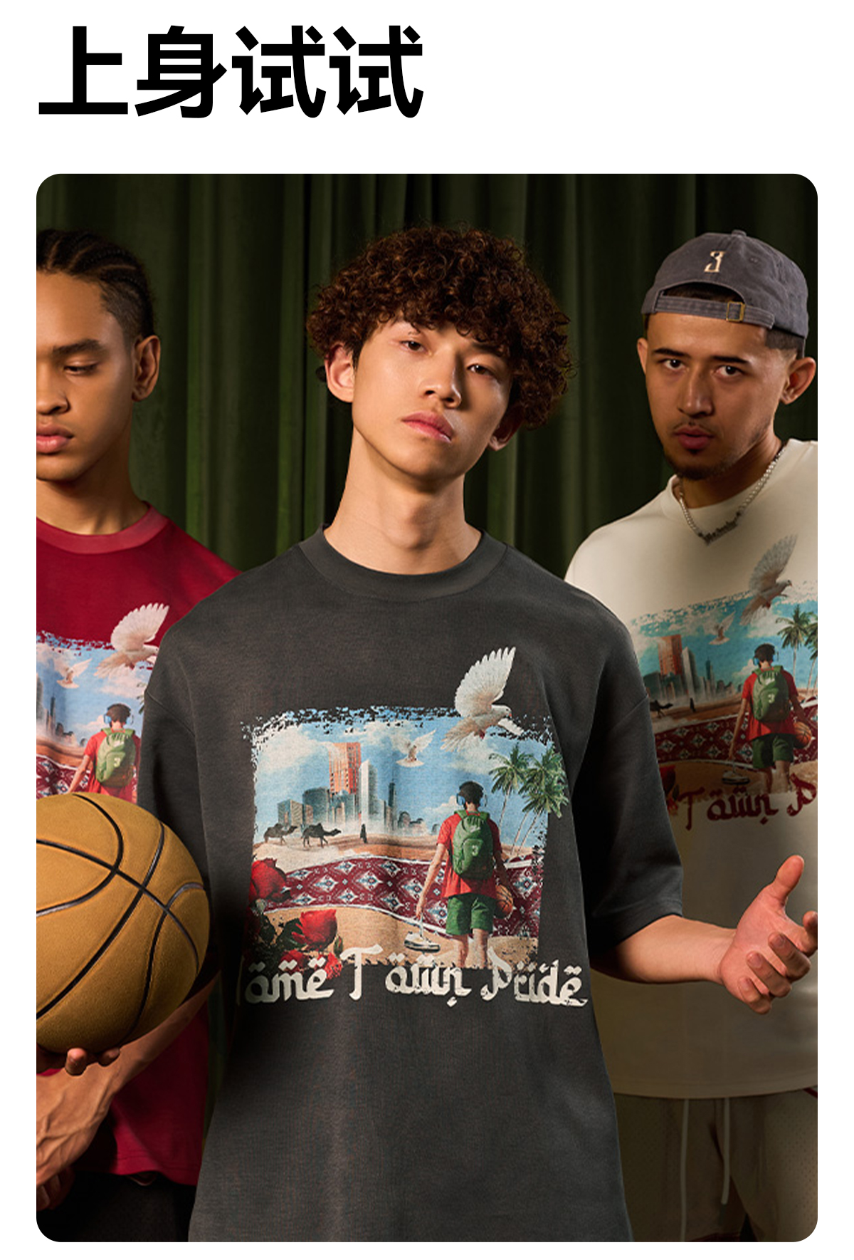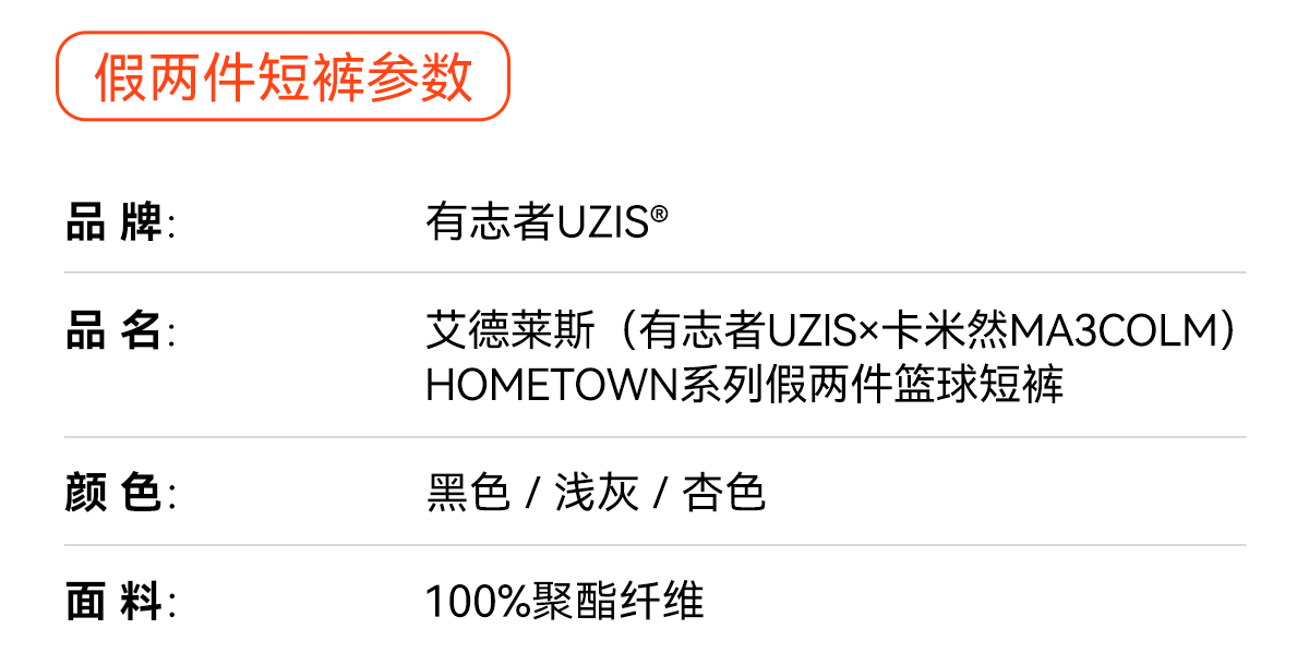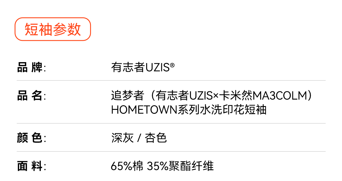 有志者UZISx卡米然联名系列 美式潮流运动短袖男夏季宽松篮球短裤