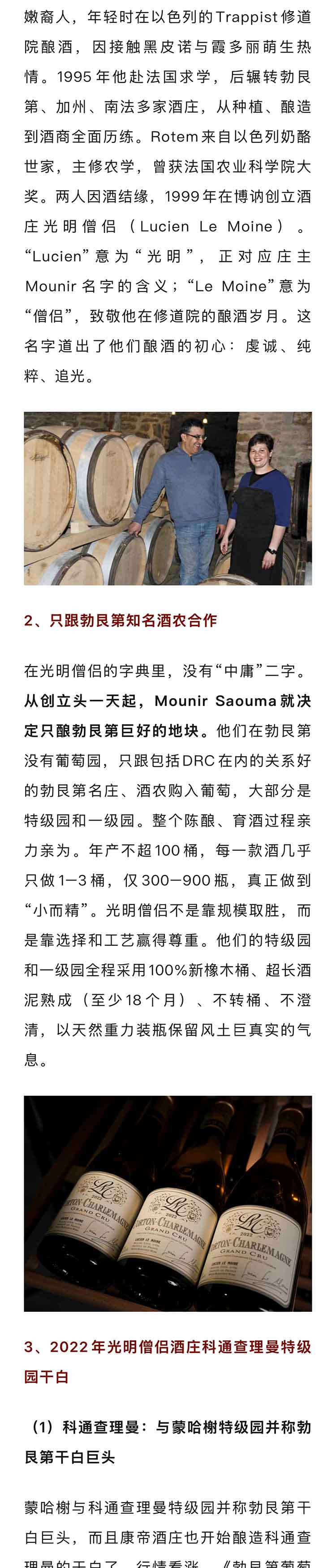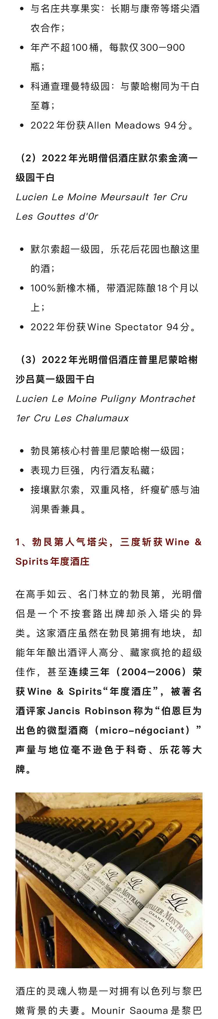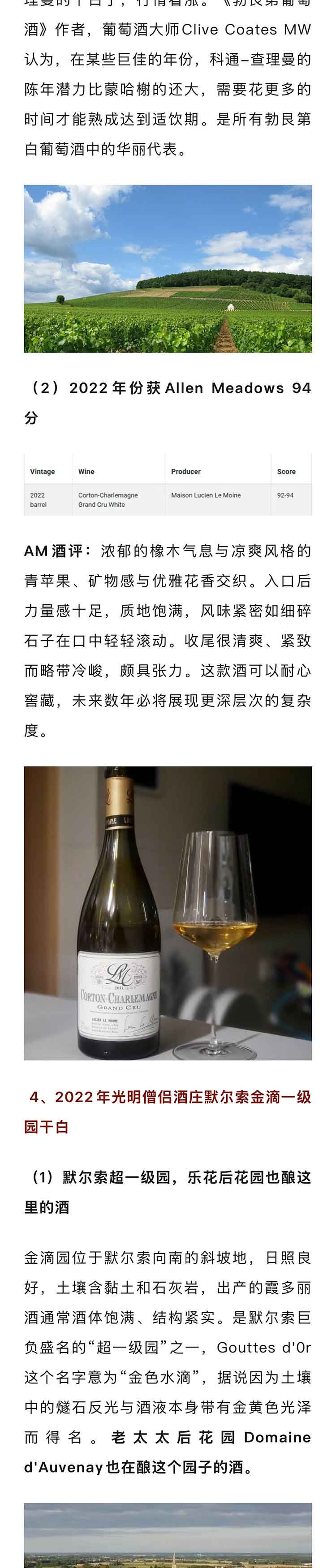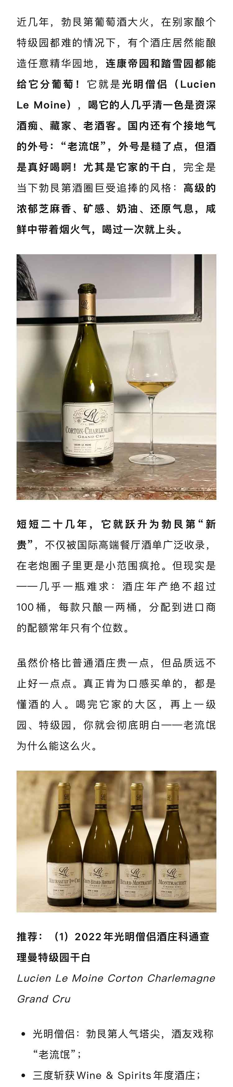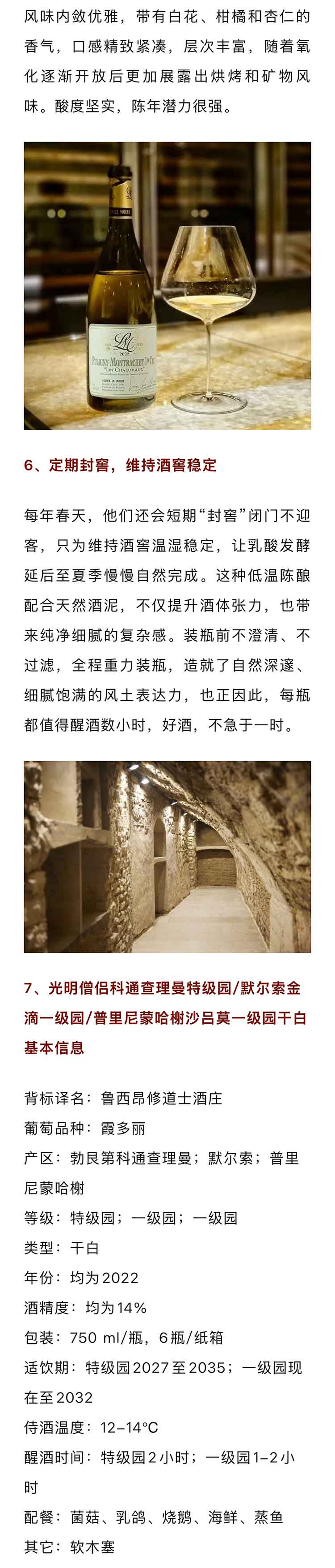 法国勃艮第光明僧侣酒庄2022年默尔索金滴一级园霞多丽干白/普里尼蒙哈榭沙吕莫一级园干白