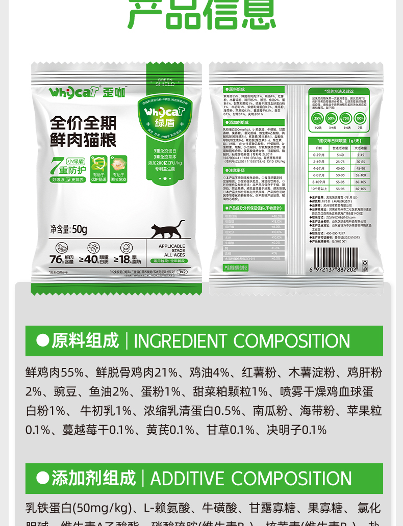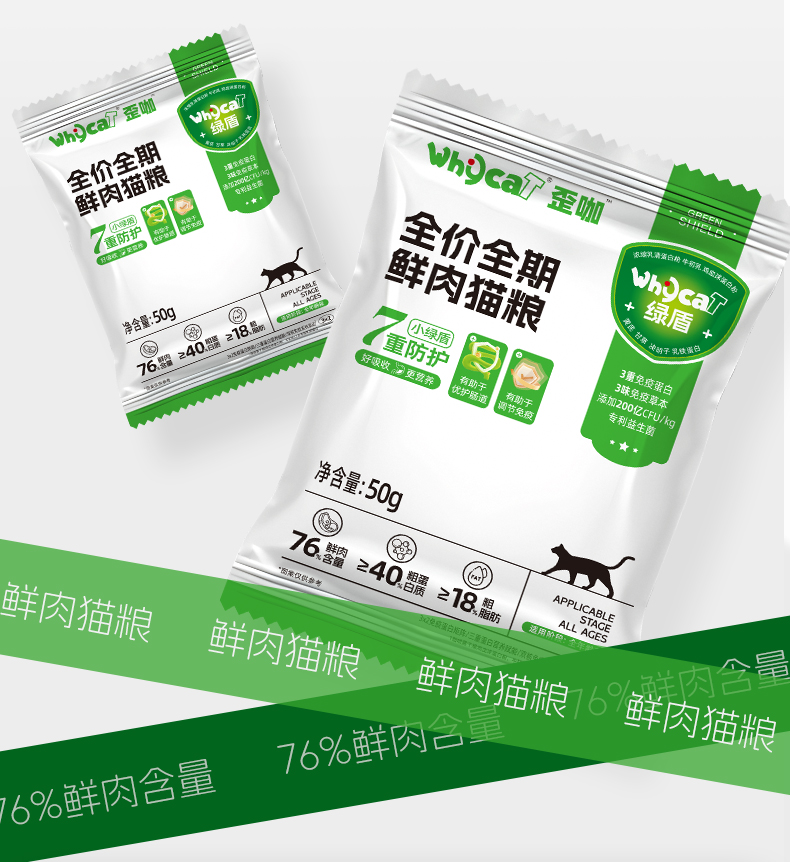 whycat七重防护小绿盾全价全期鲜肉猫粮50g试吃装