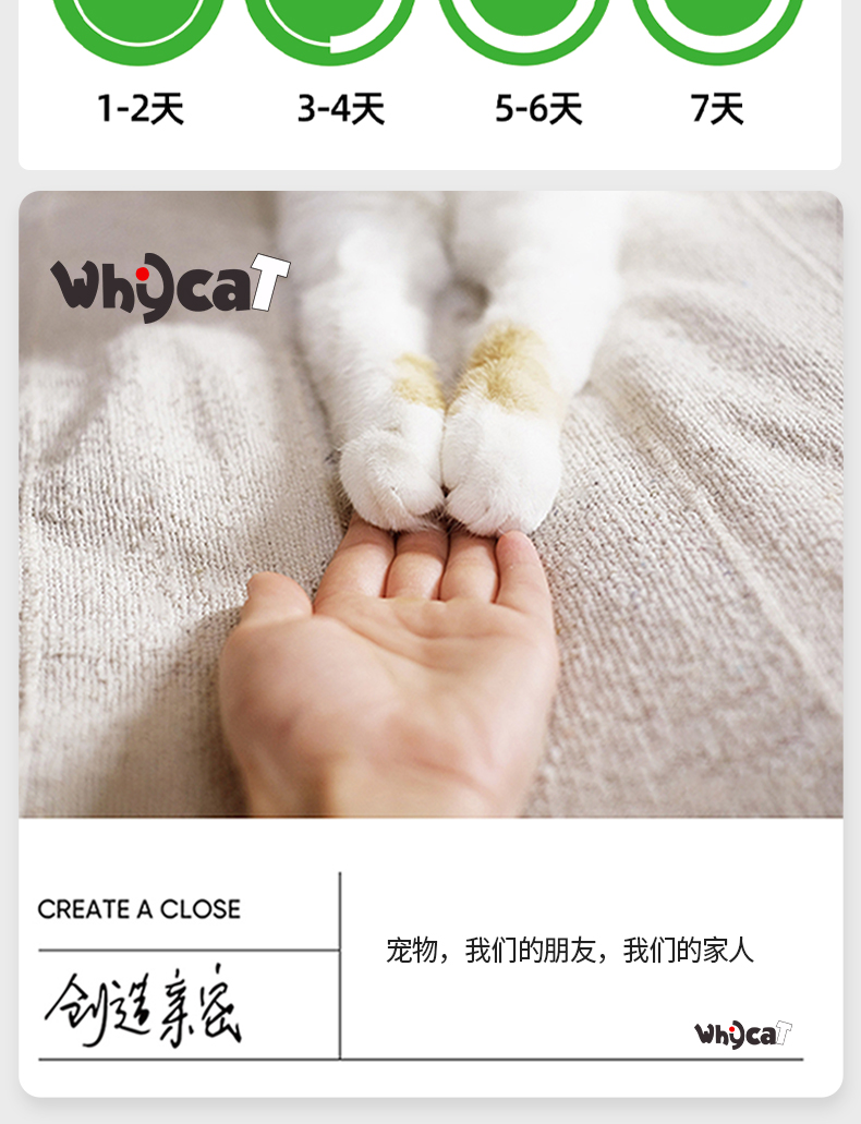whycat幼猫粮5包试吃每包/50g 为了保证活动公平,每人限参加一次 同个ip/同个地址/相近地址/虚构收货信息/多账号购买等批量异常下单,店铺有权对异常订单不发货且取消活动资格