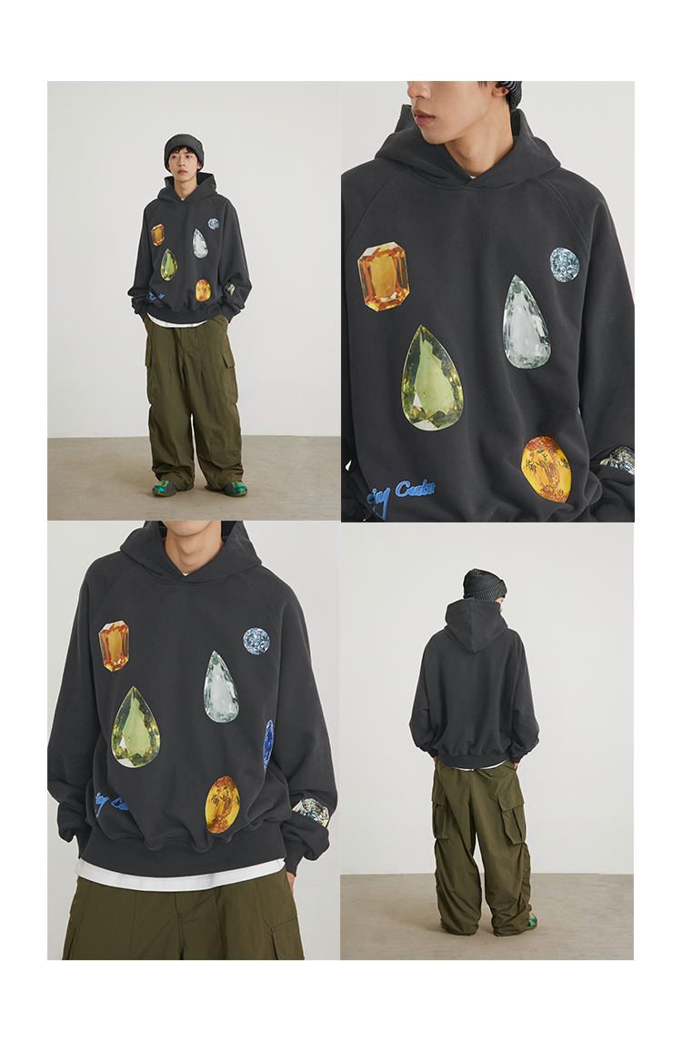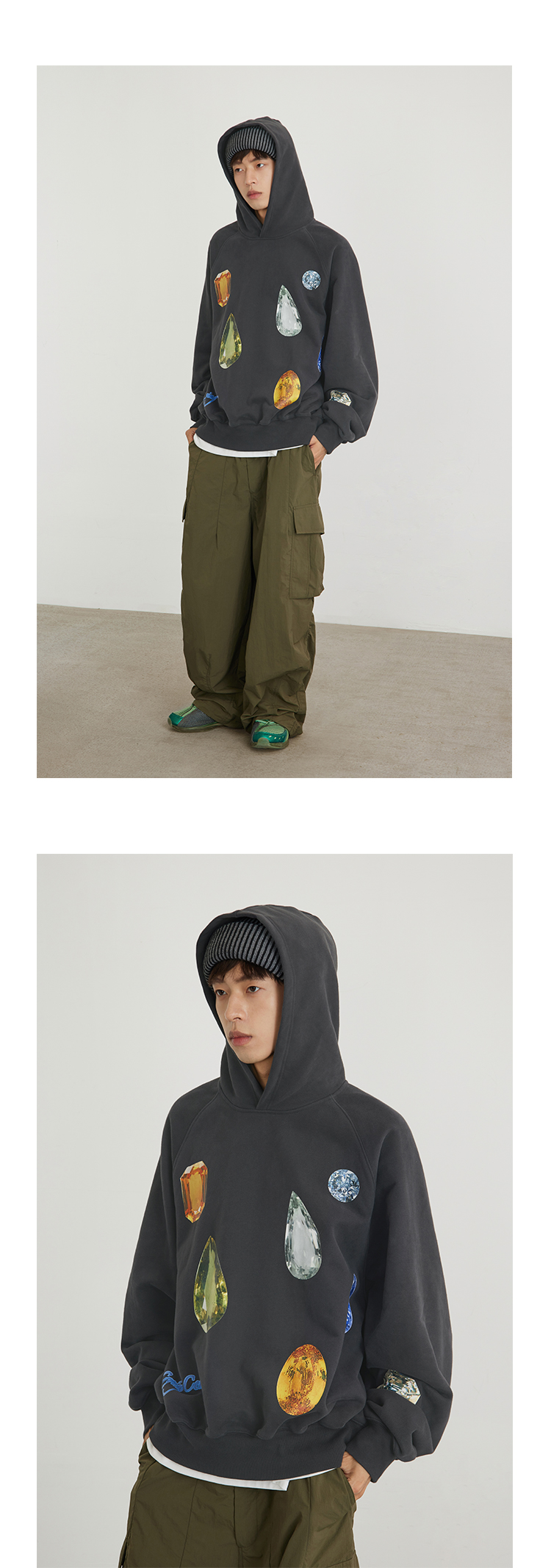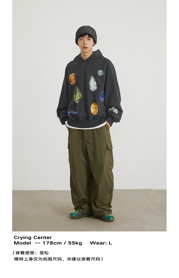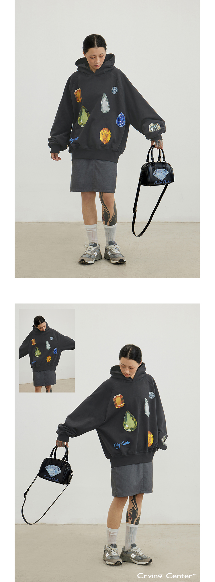Crying Center 富豪趣味满钻卫衣Rich people 炭黑灰带帽卫衣