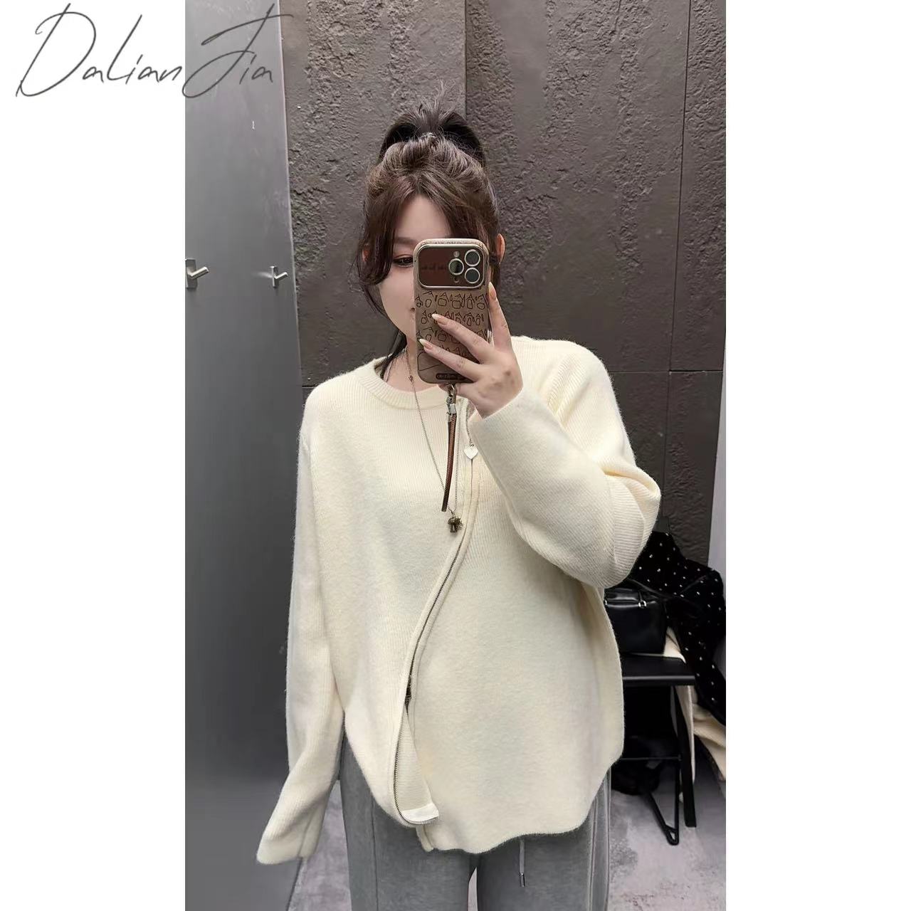 2024新品 佳佳同款【曲线温柔】圆领宽松斜拉链上衣针织时尚休闲百搭秋冬