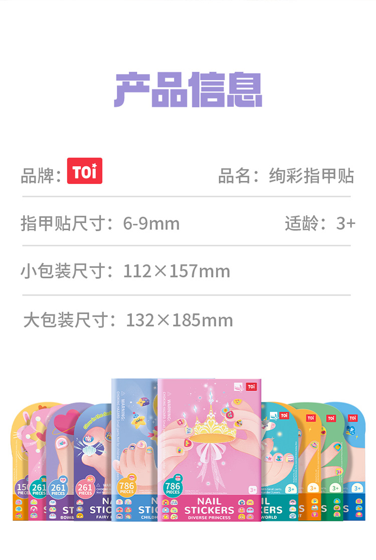 (两件起拍 单拍不发货)TOI图益儿童指甲贴无味女孩甲片美甲卡通贴纸宝宝玩具小号