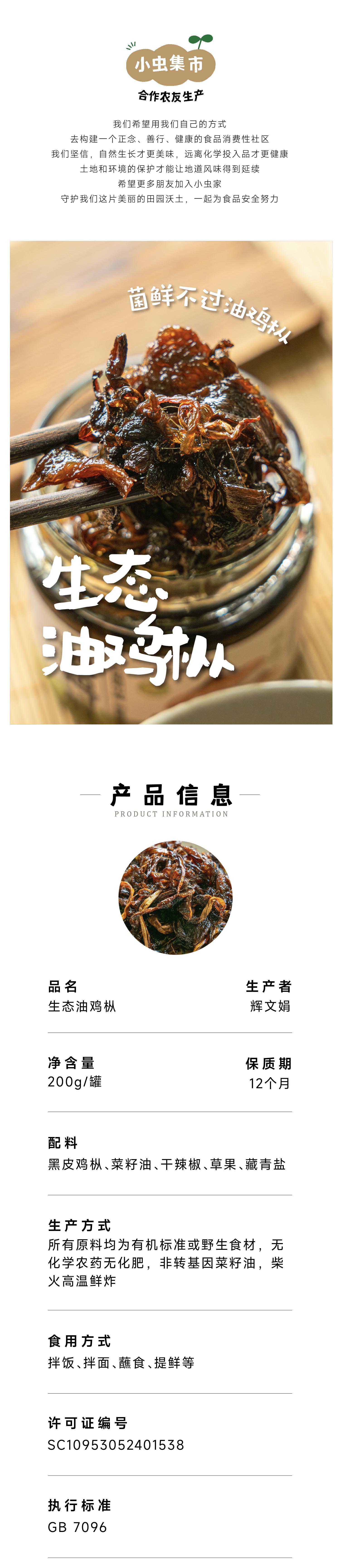 生态油鸡枞 200g/罐 | 合作农友生产,产自云南昆明,生产者:辉文娟 *【公平贸易农人定价】