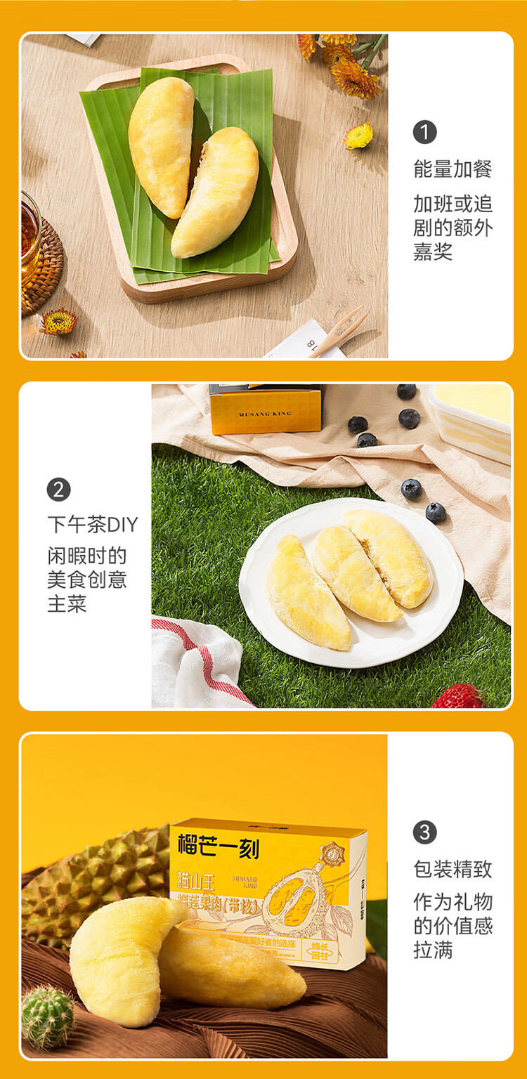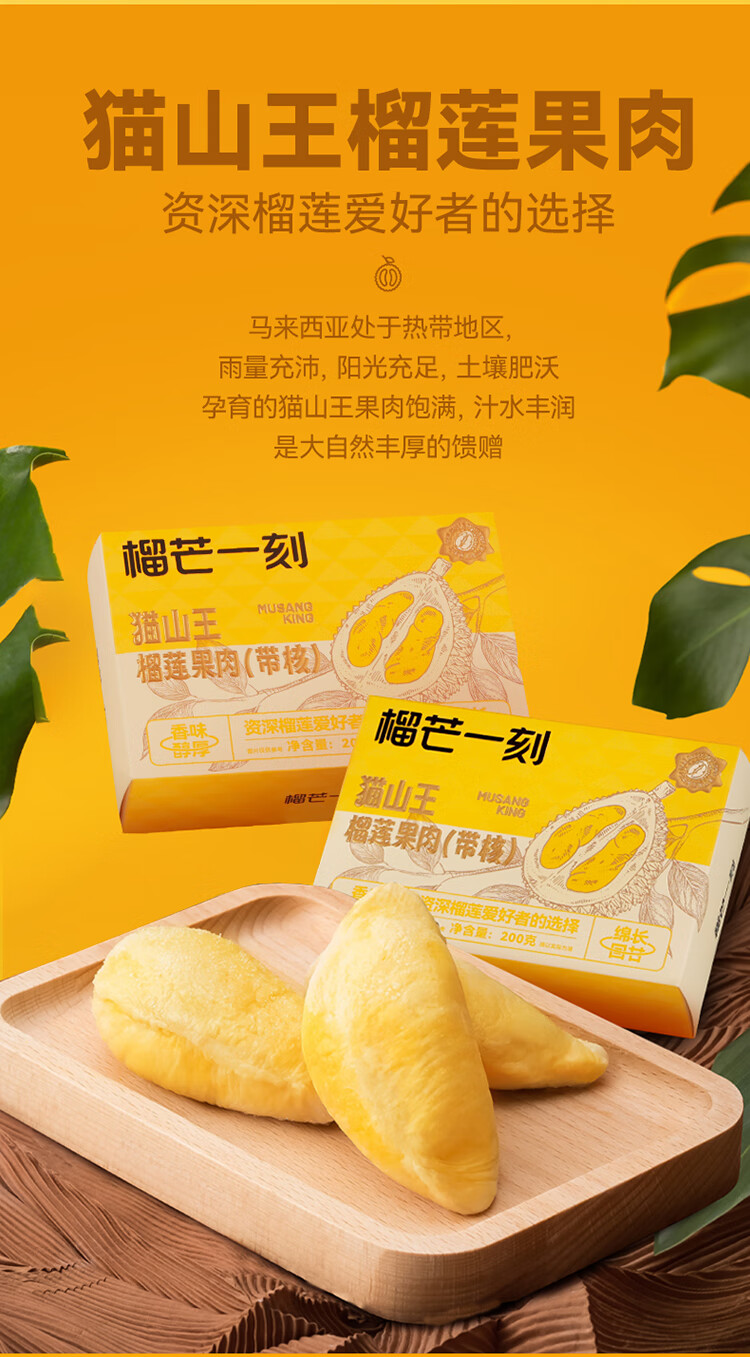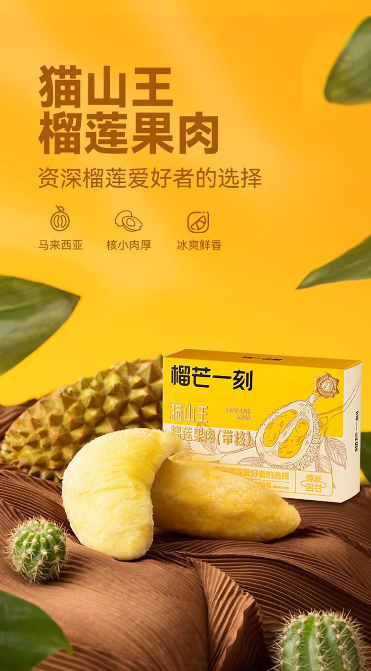榴芒一刻猫山王冷冻榴莲肉马来西亚进口冻榴莲果肉液氮新鲜水果
