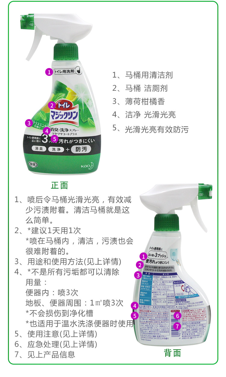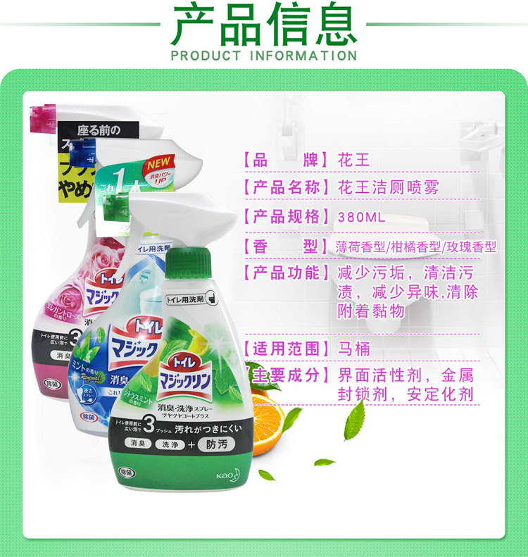 KAO花王 FLAIR马桶洁厕清洁剂花果香清洁喷雾防污消臭(全新升级)350ml/瓶