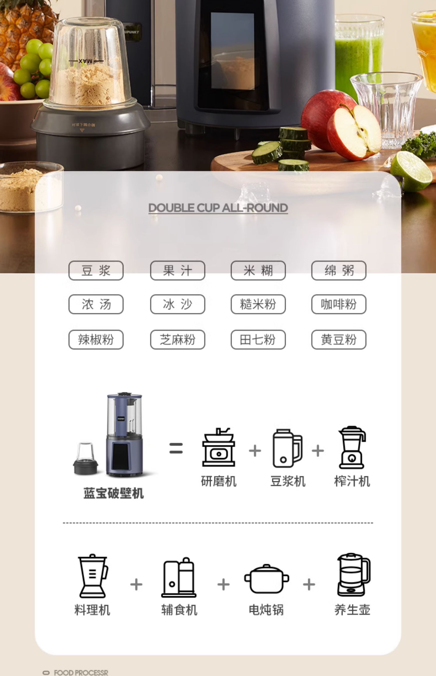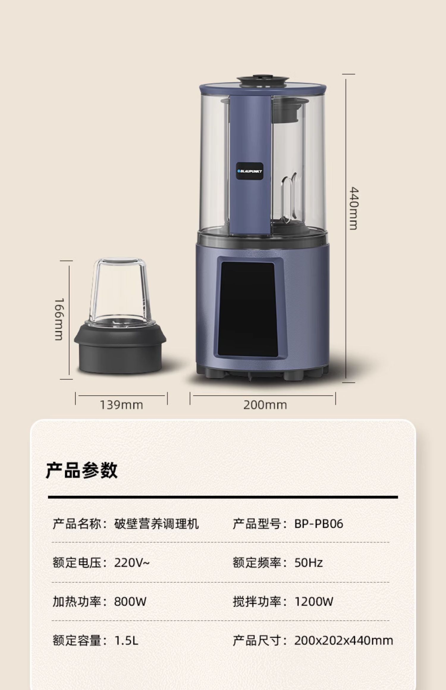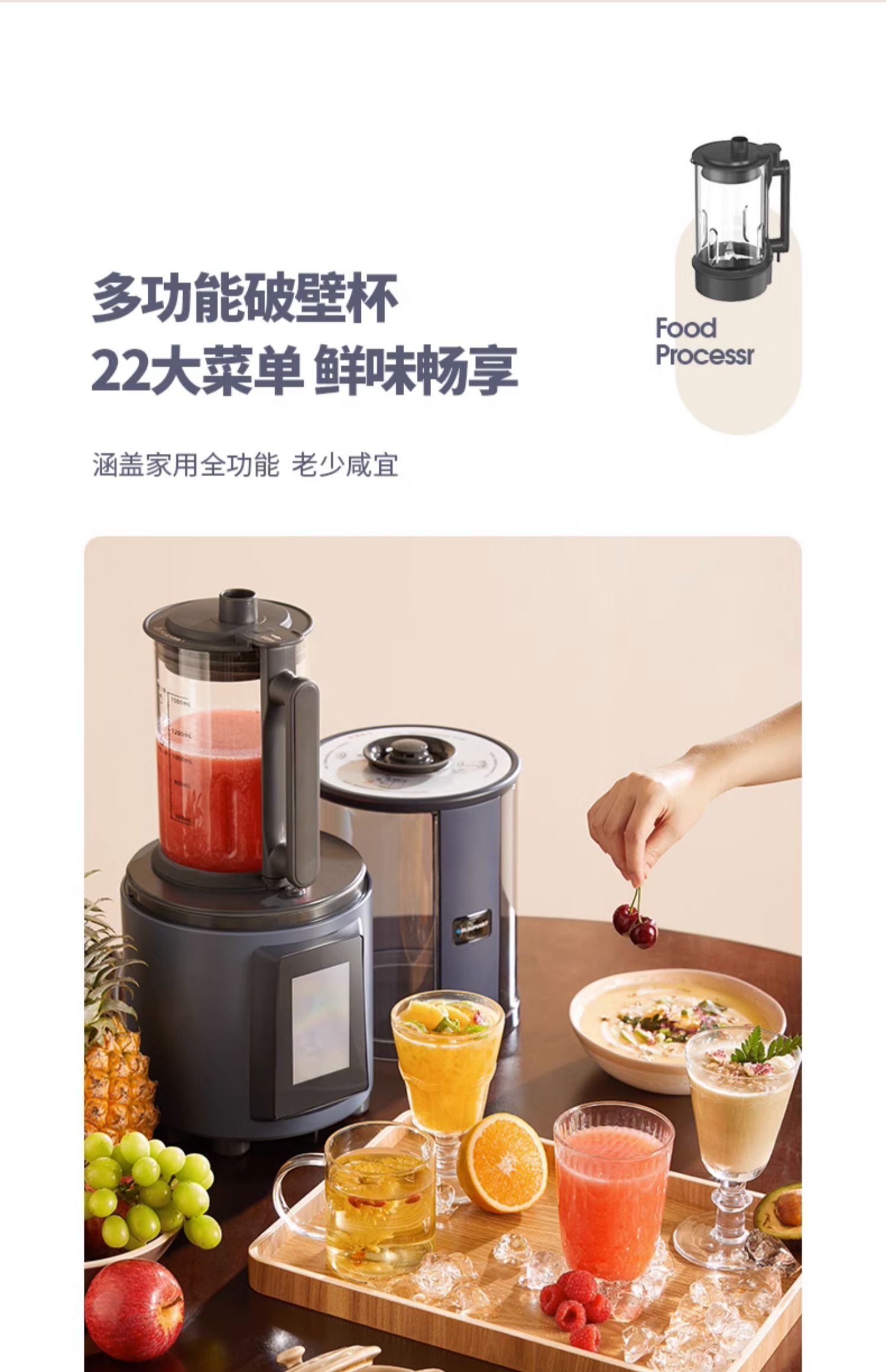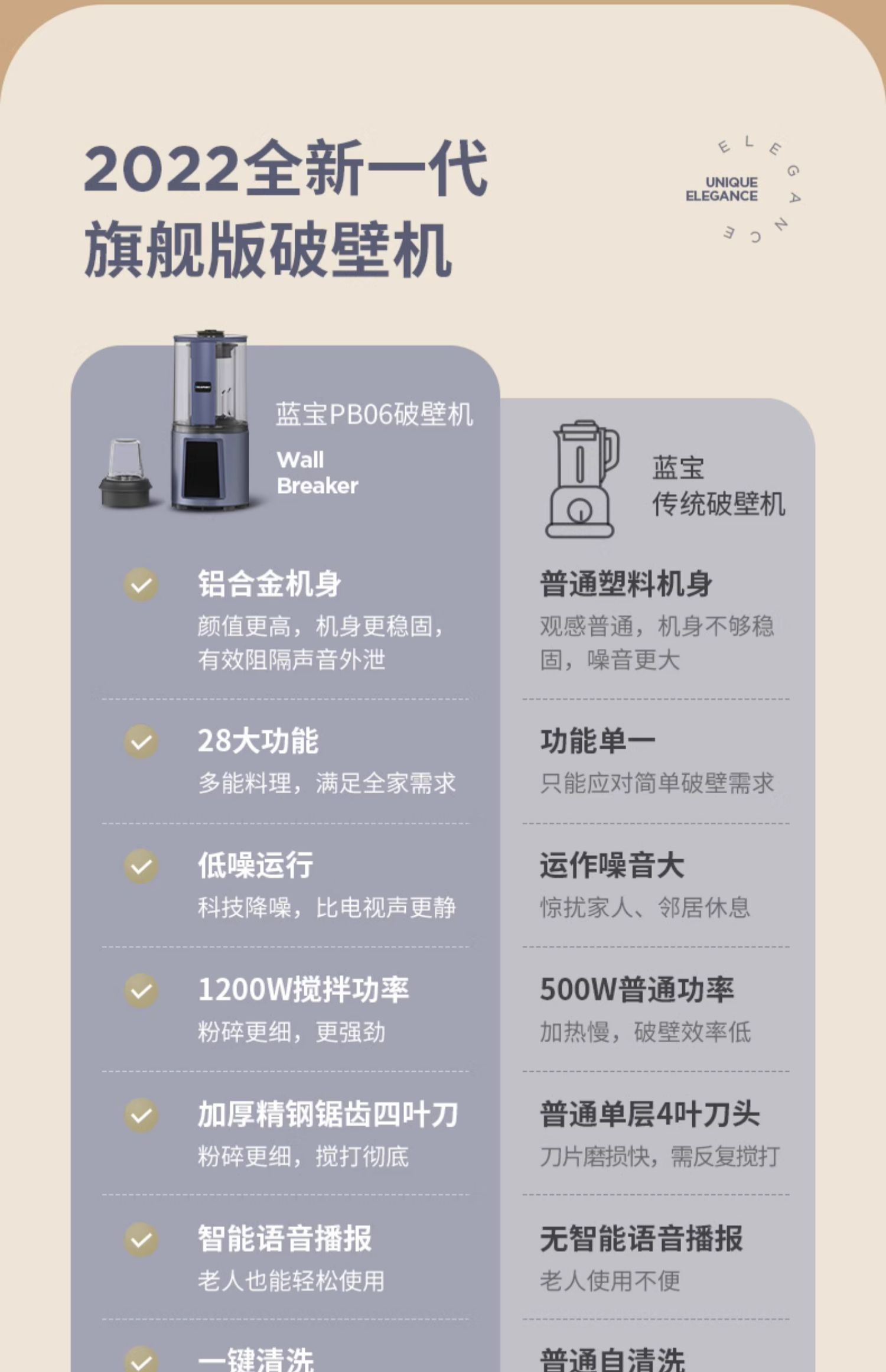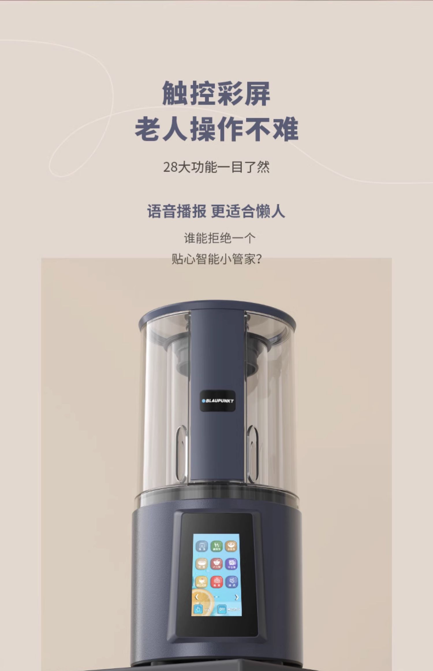 蓝宝轻音破壁机家用全自动加热语音播报多功能豆浆料理机 心选到家