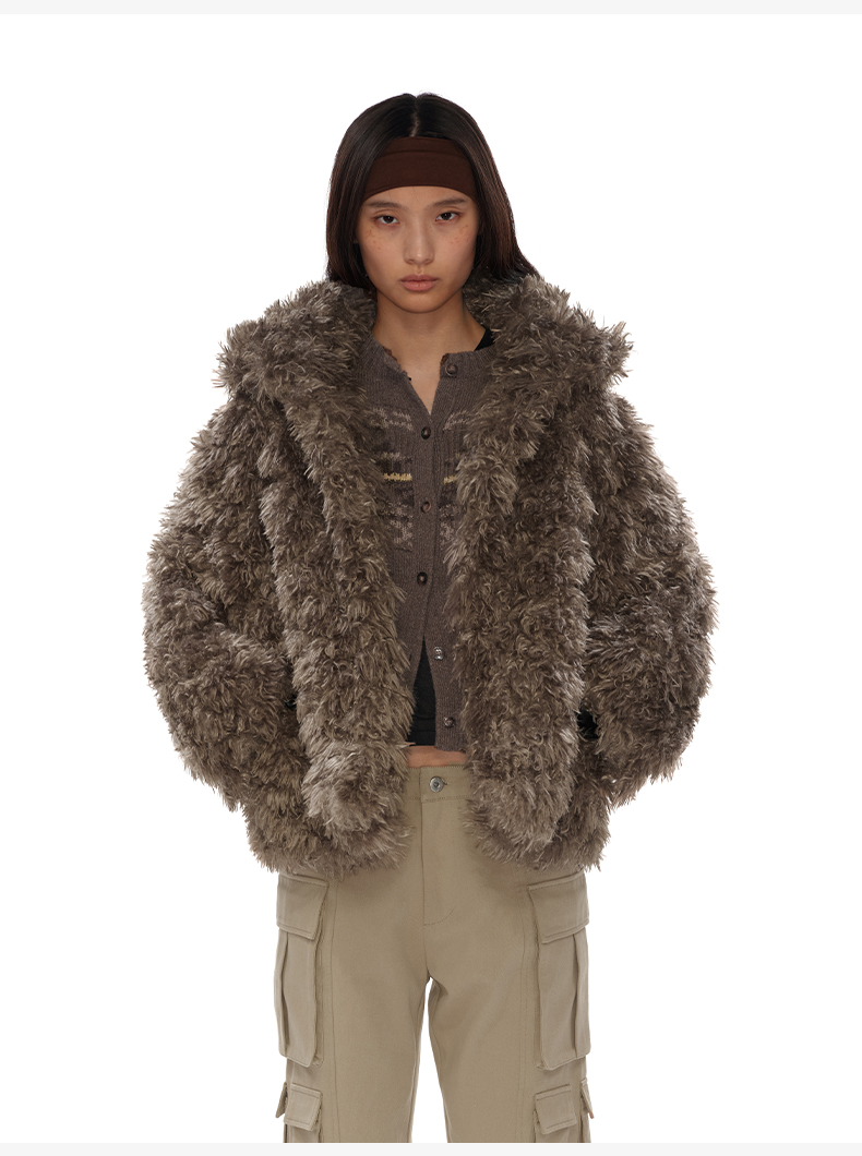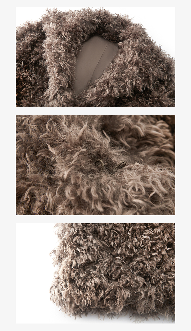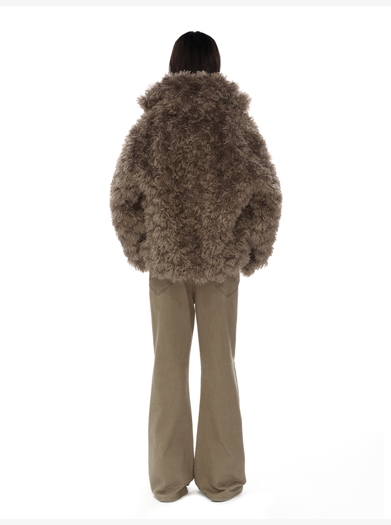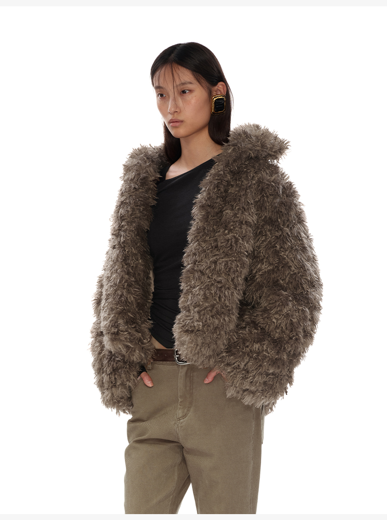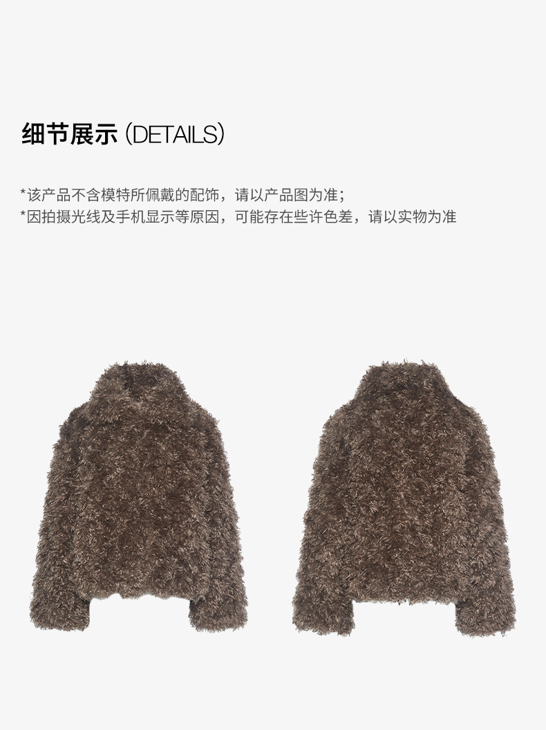 NUTH 咖色中短款卷毛环保皮草厚外套女宽松保暖显瘦皮草夹克女