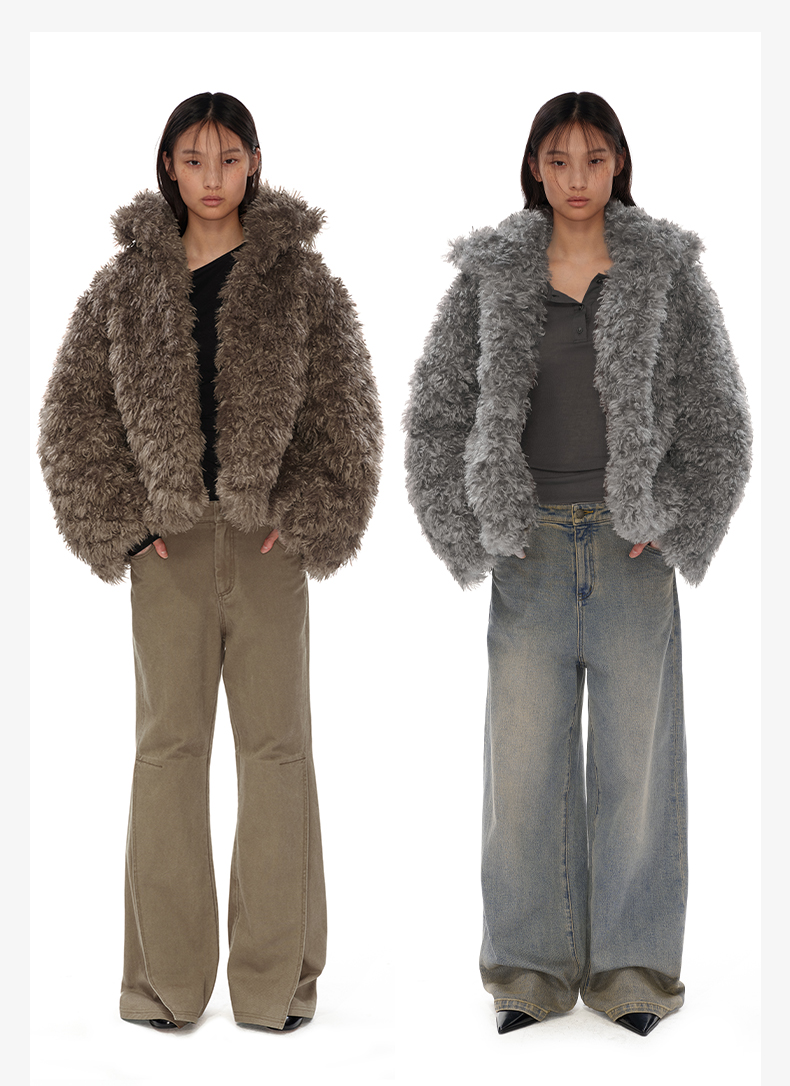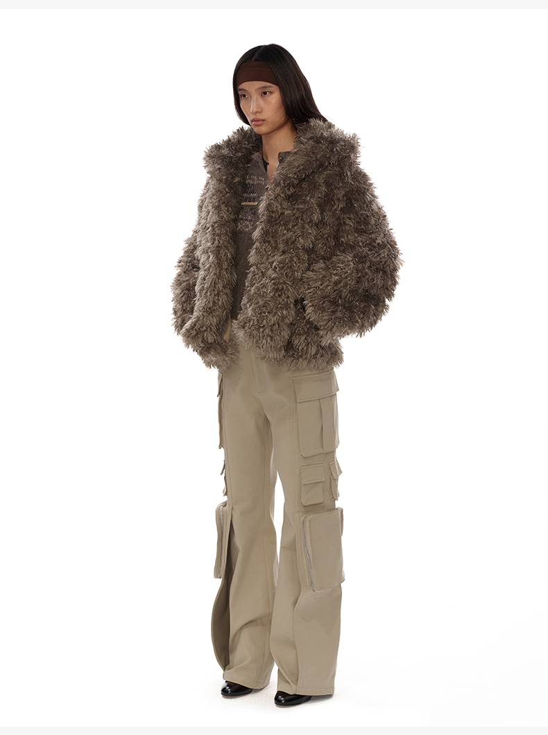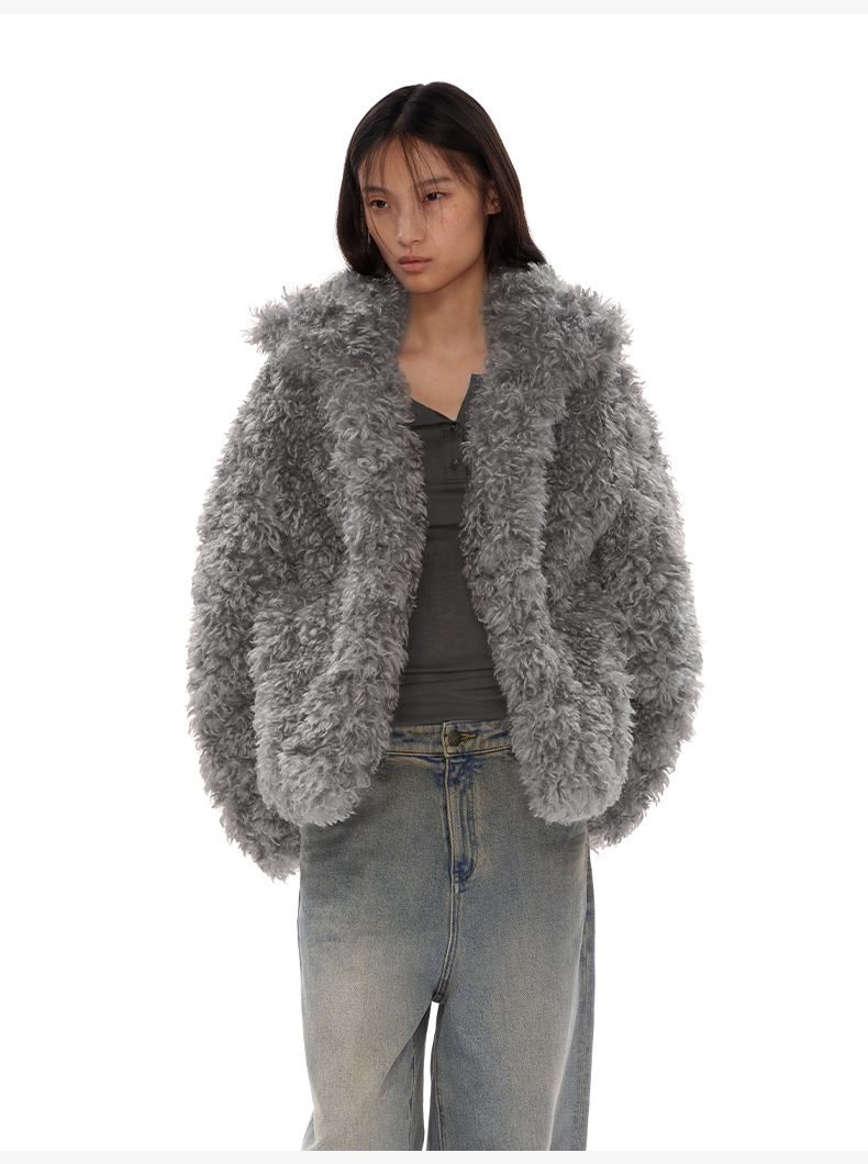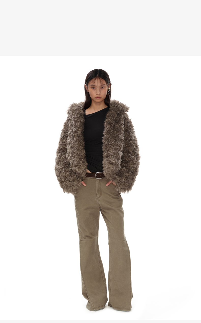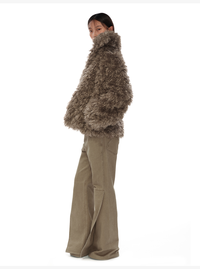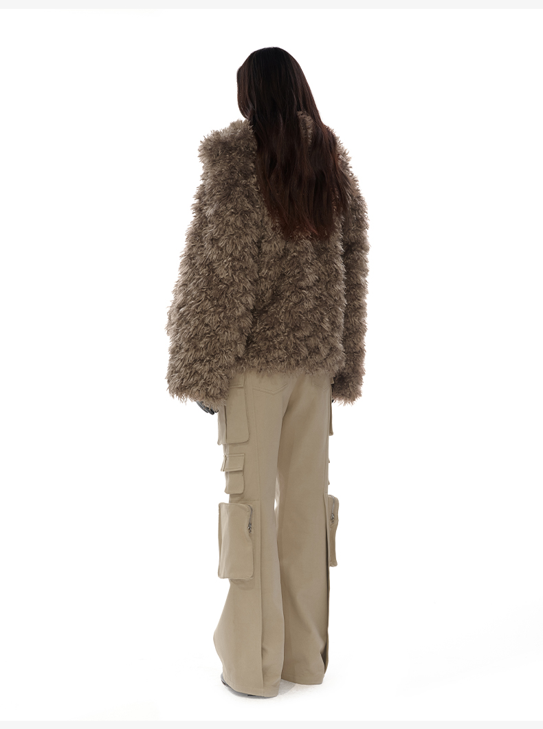NUTH 咖色中短款卷毛环保皮草厚外套女宽松保暖显瘦皮草夹克女