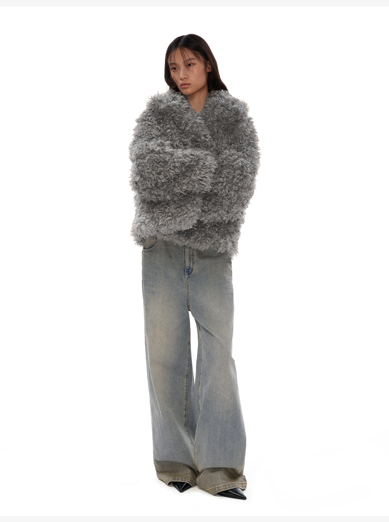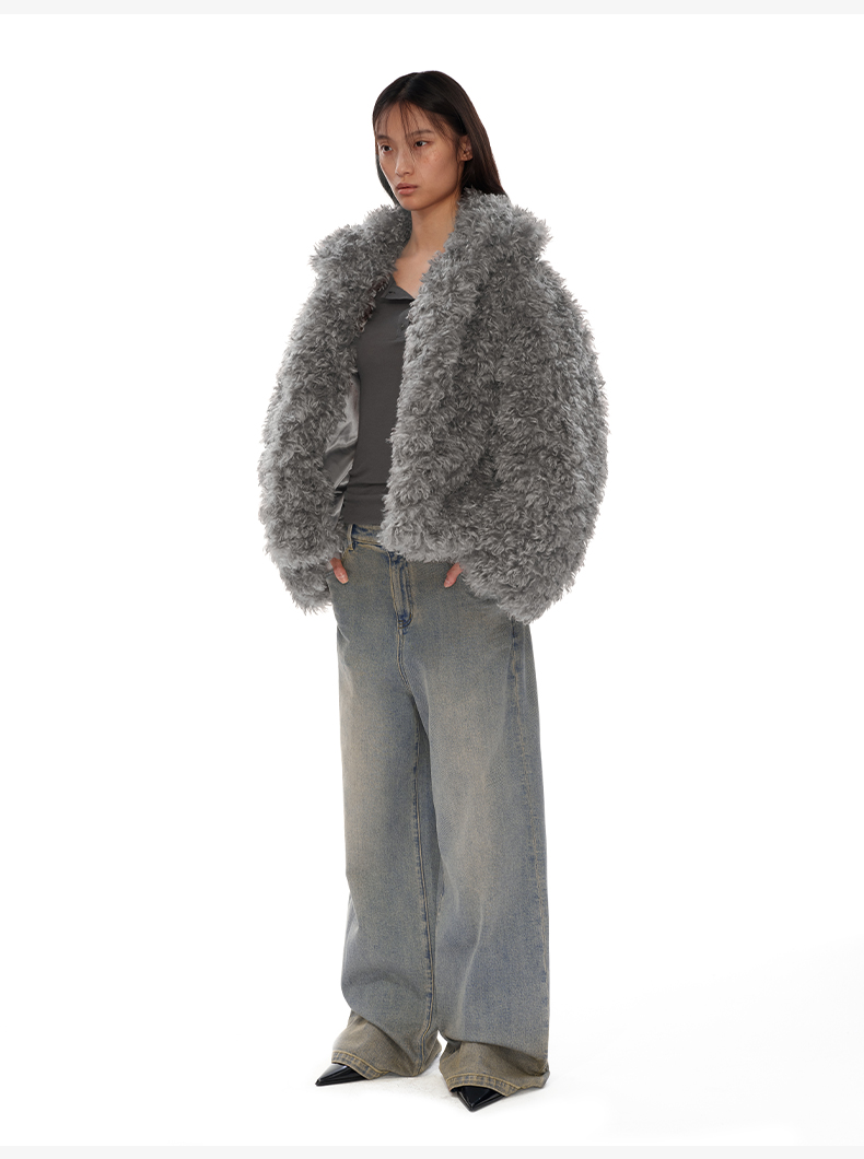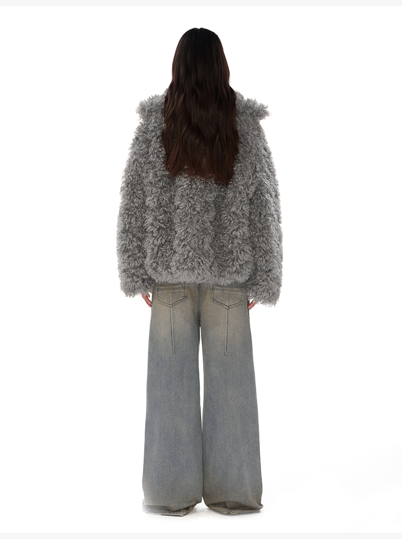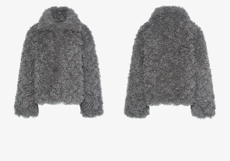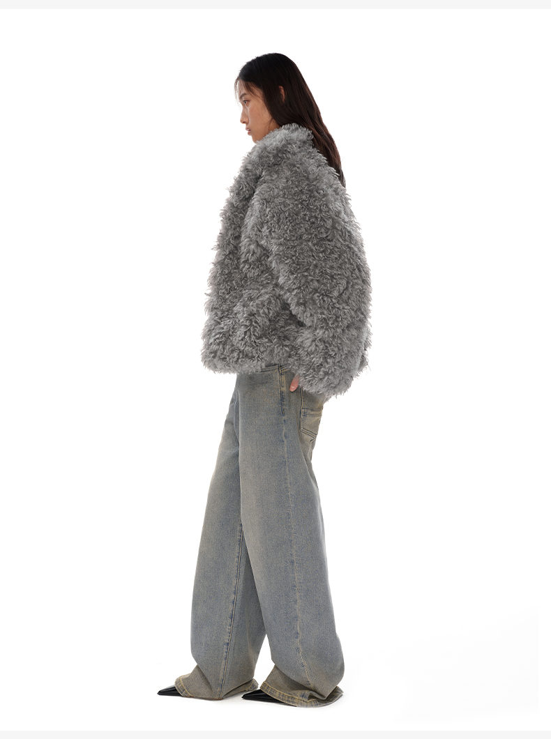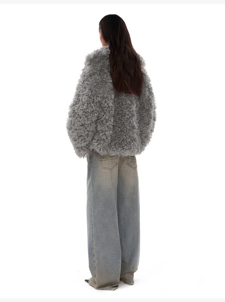 NUTH 咖色中短款卷毛环保皮草厚外套女宽松保暖显瘦皮草夹克女
