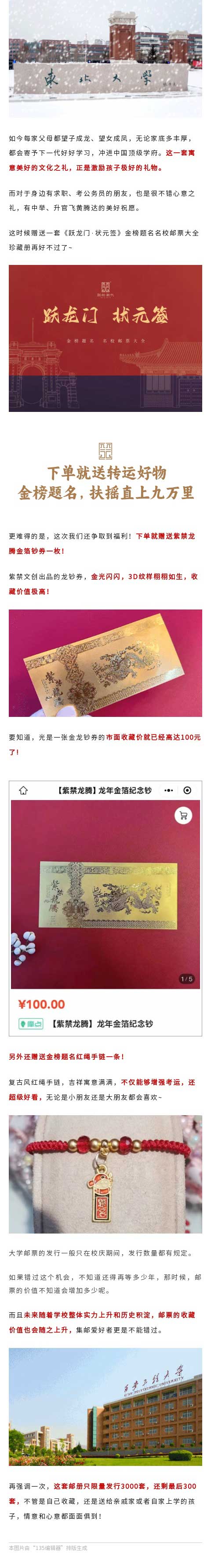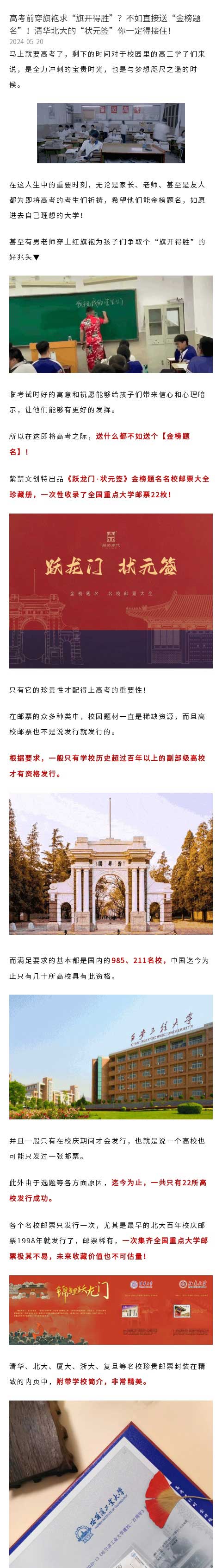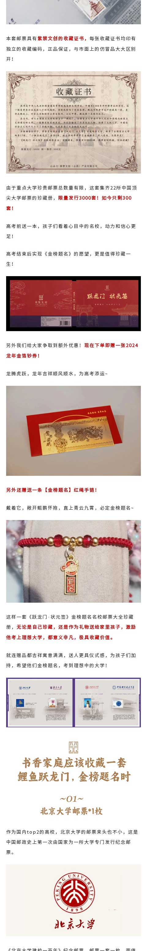【赠金榜题名红绳手绳+龙年金箔券钞】《跃龙门·状元签》名校邮票大全礼盒装