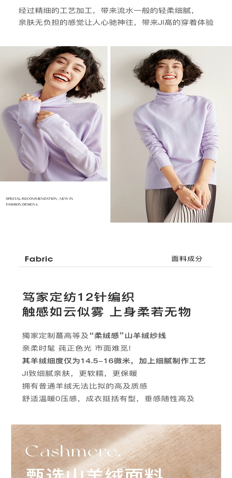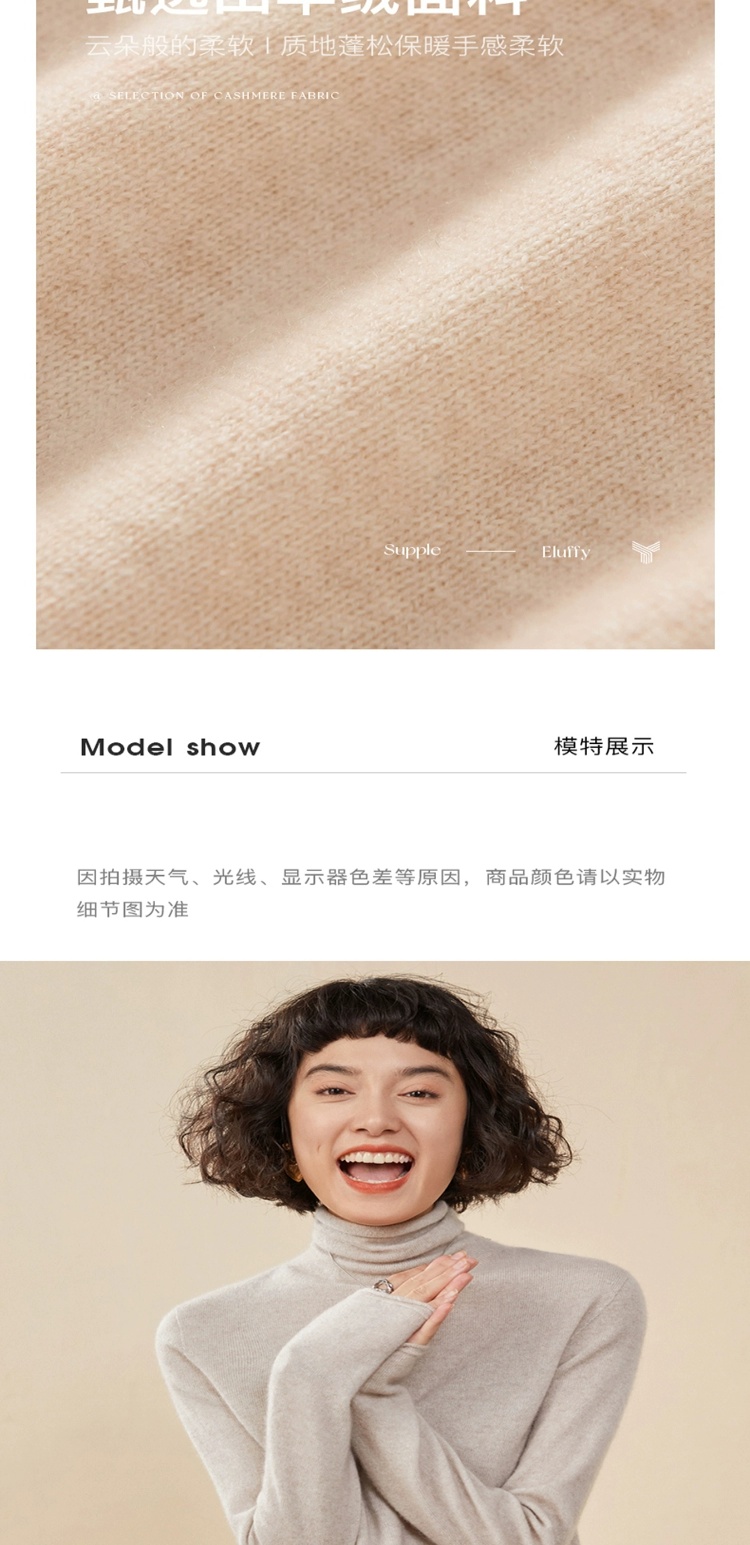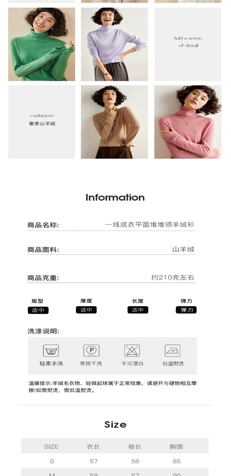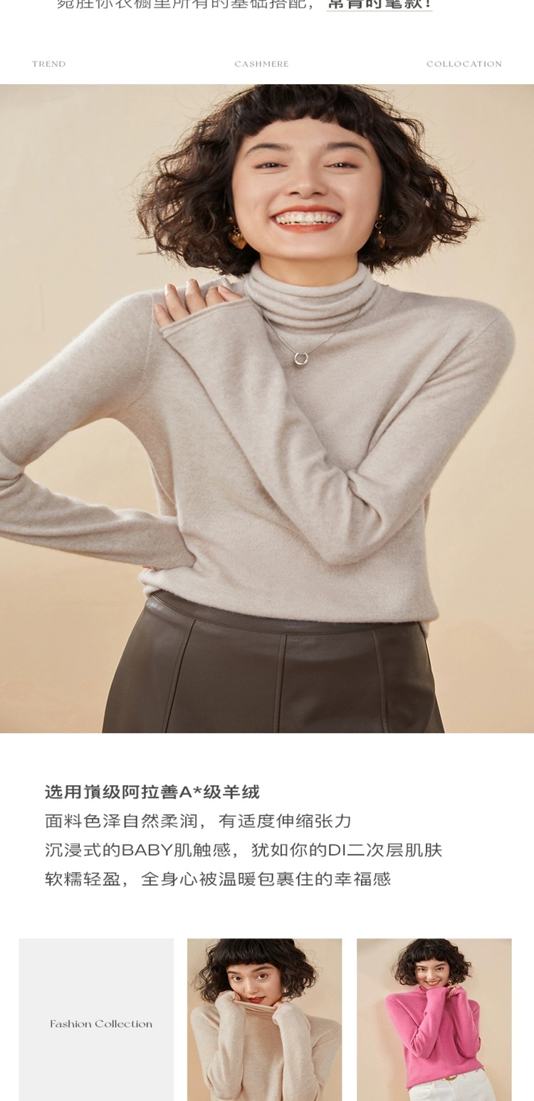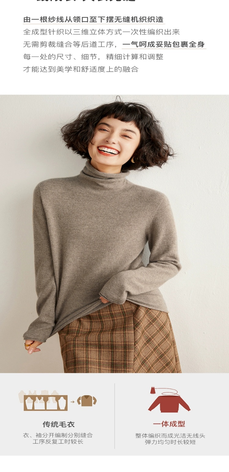 一线成型~无缝堆堆领山羊绒衫女软糯高领宽松套头针织打底衫毛衣