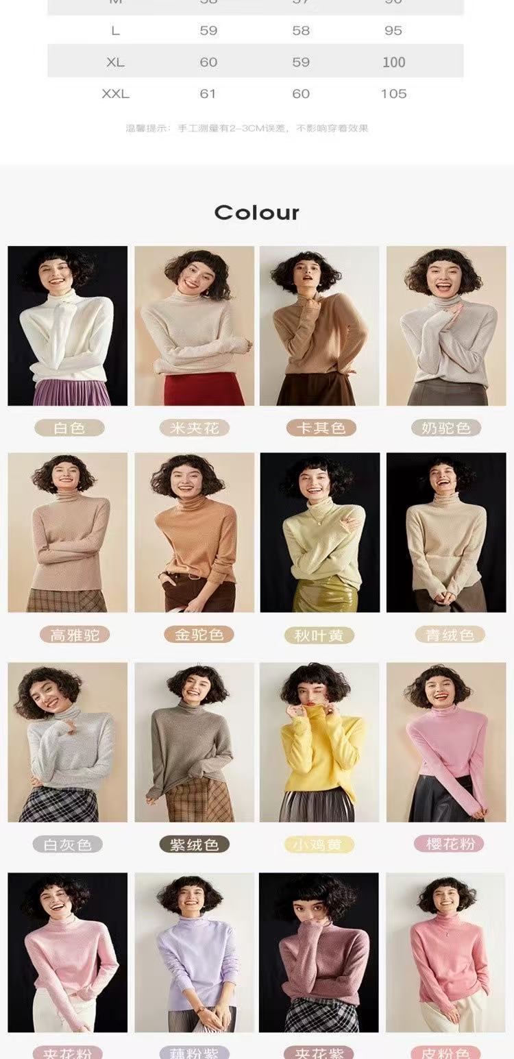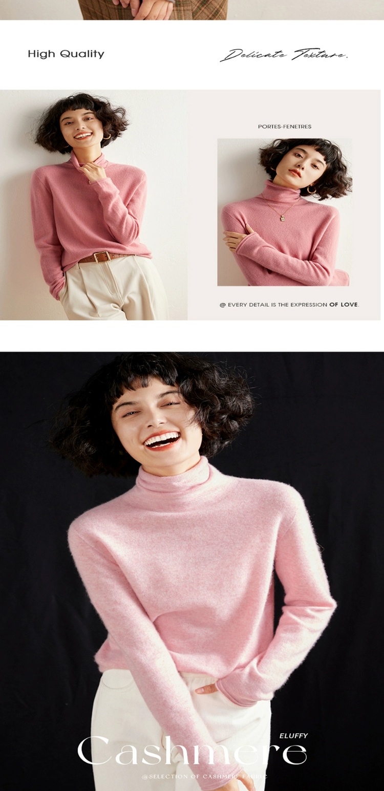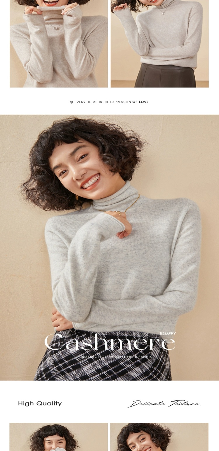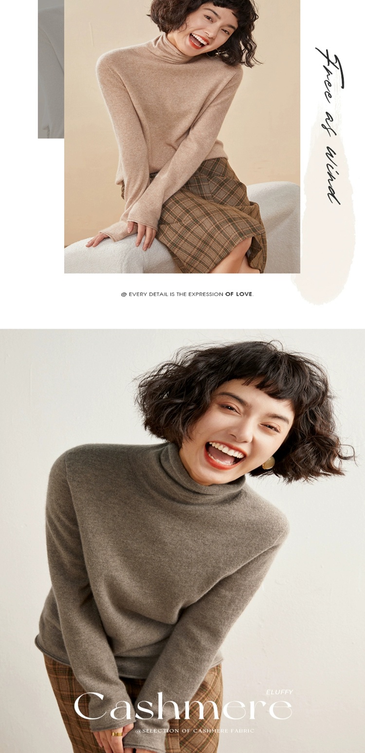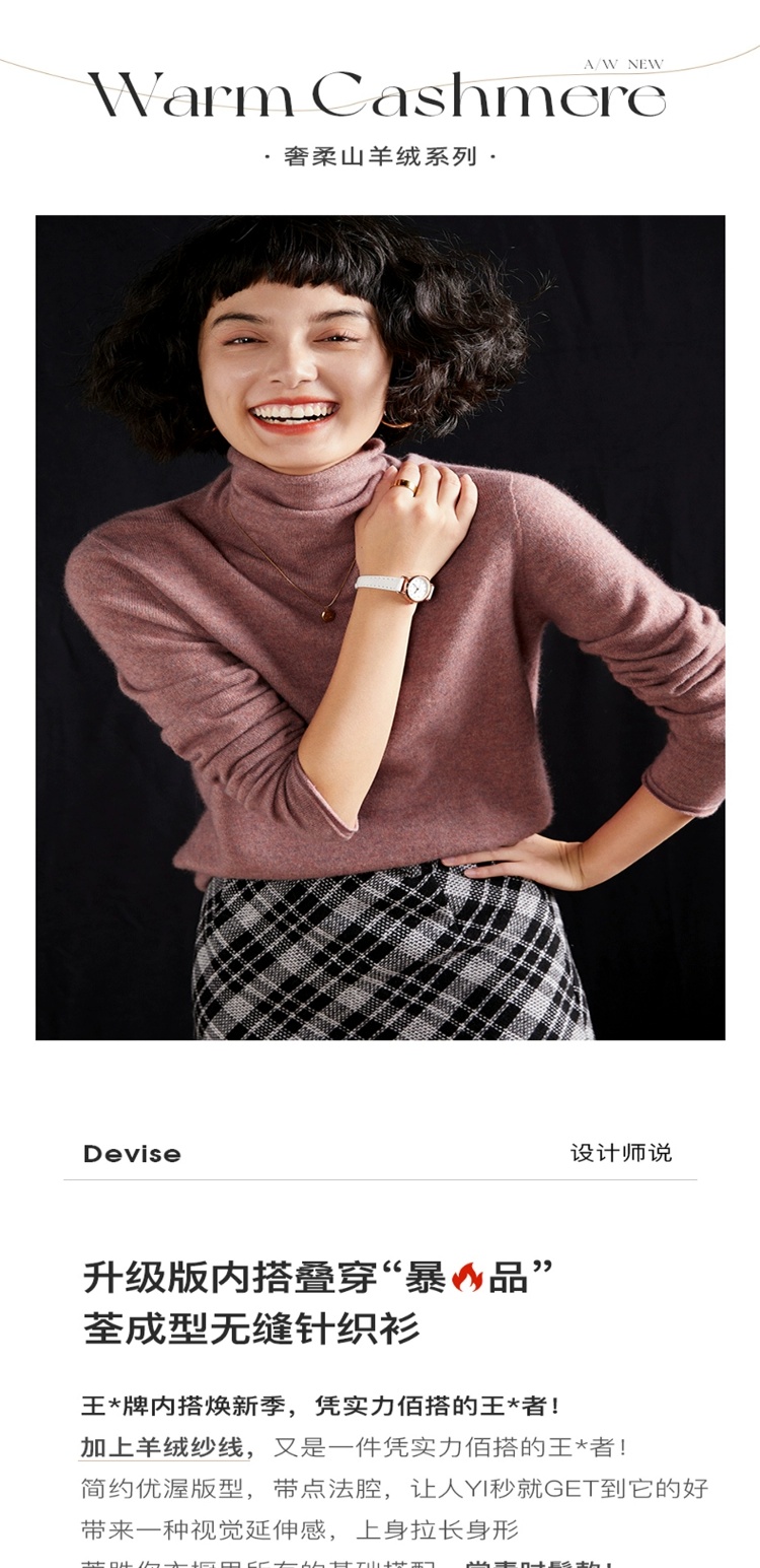 一线成型~无缝堆堆领山羊绒衫女软糯高领宽松套头针织打底衫毛衣