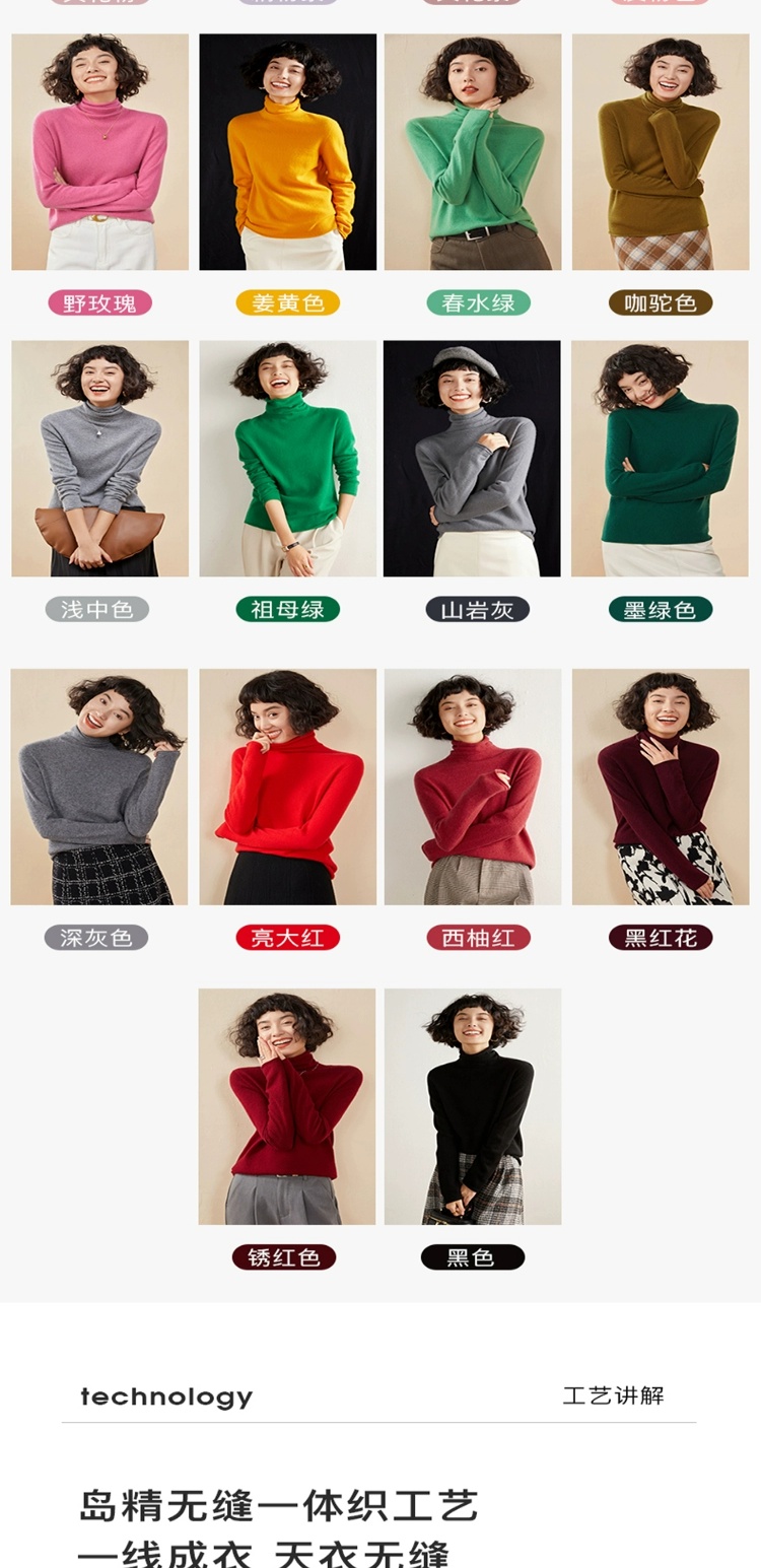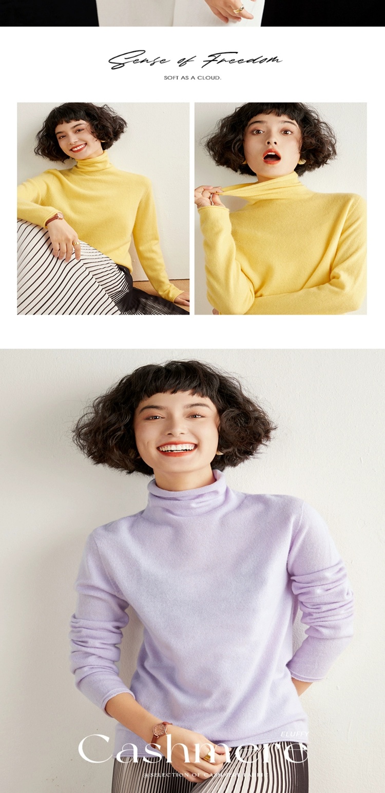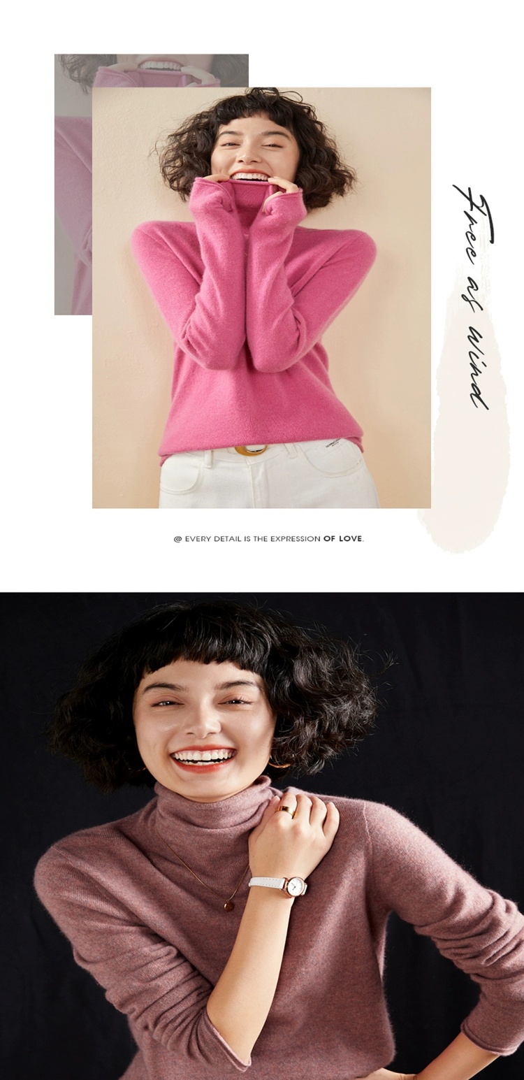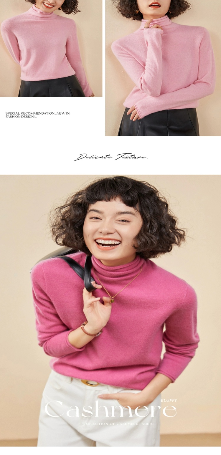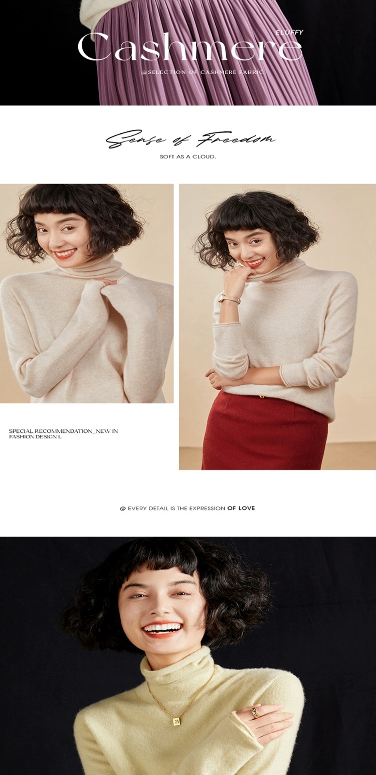 一线成型~无缝堆堆领山羊绒衫女软糯高领宽松套头针织打底衫毛衣