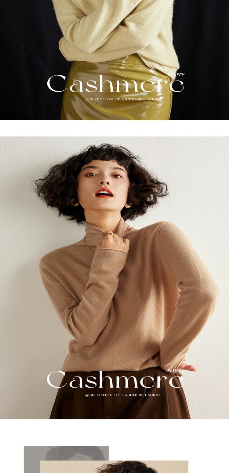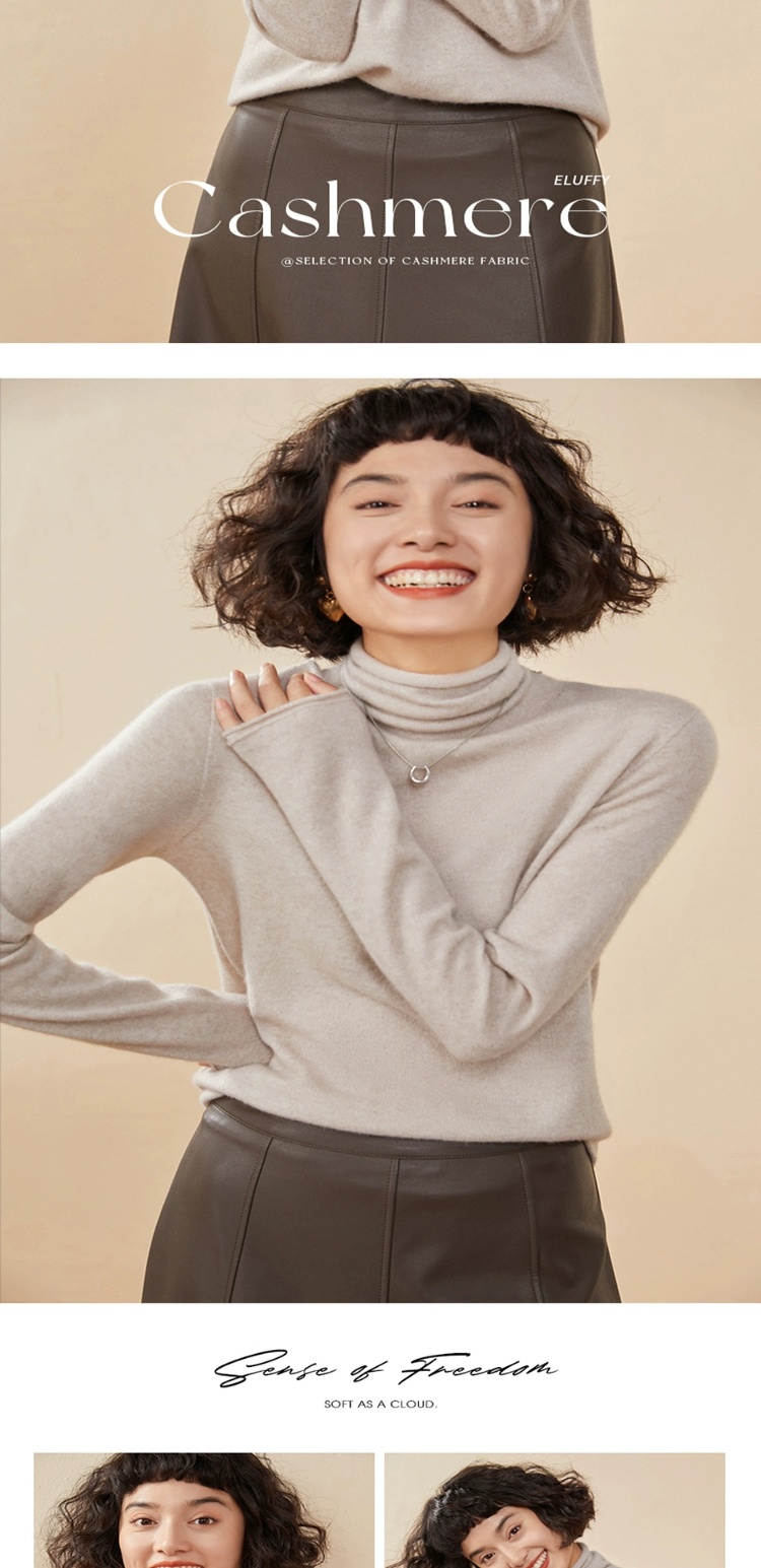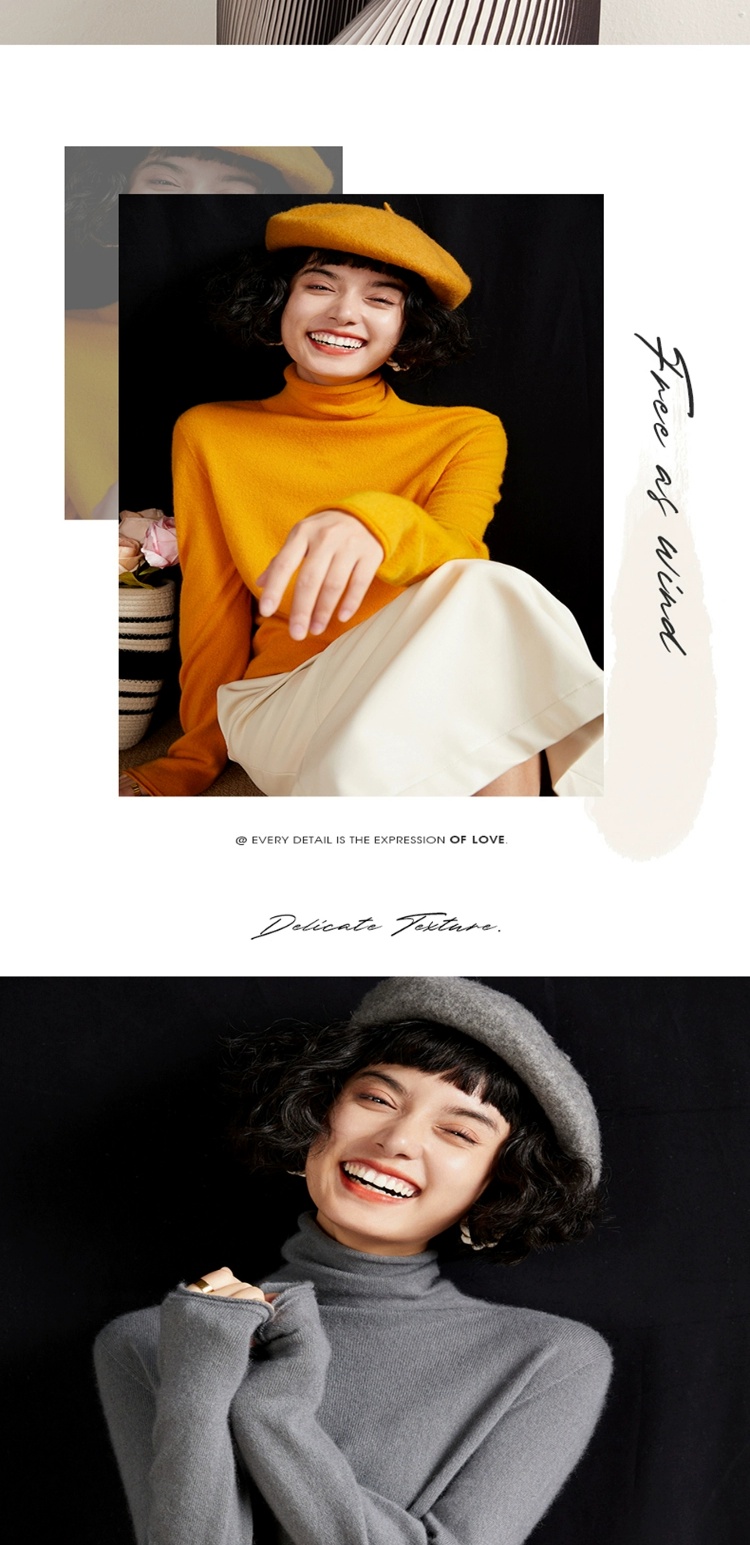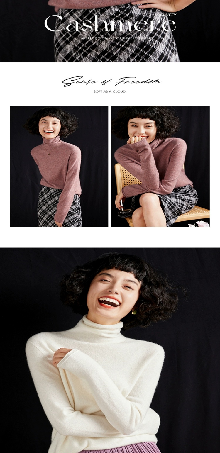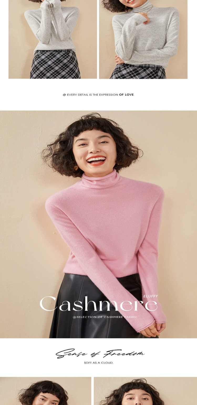 一线成型~无缝堆堆领山羊绒衫女软糯高领宽松套头针织打底衫毛衣