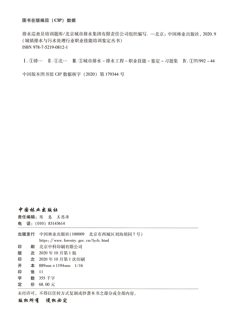 排水巡查员培训题库 城市排水与污水处理行业职业技能培训鉴定丛书教材 涵盖初中高级工北京城市排水集团 0812 中国林业出版社