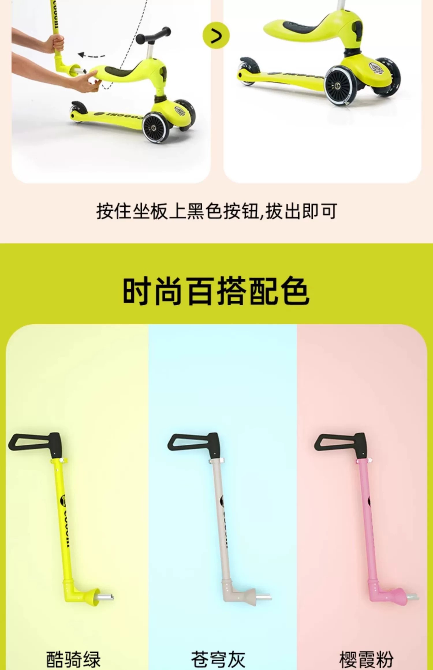 【配件】COOGHI酷骑小绿车三合一儿童滑板车遛娃杆推杆
