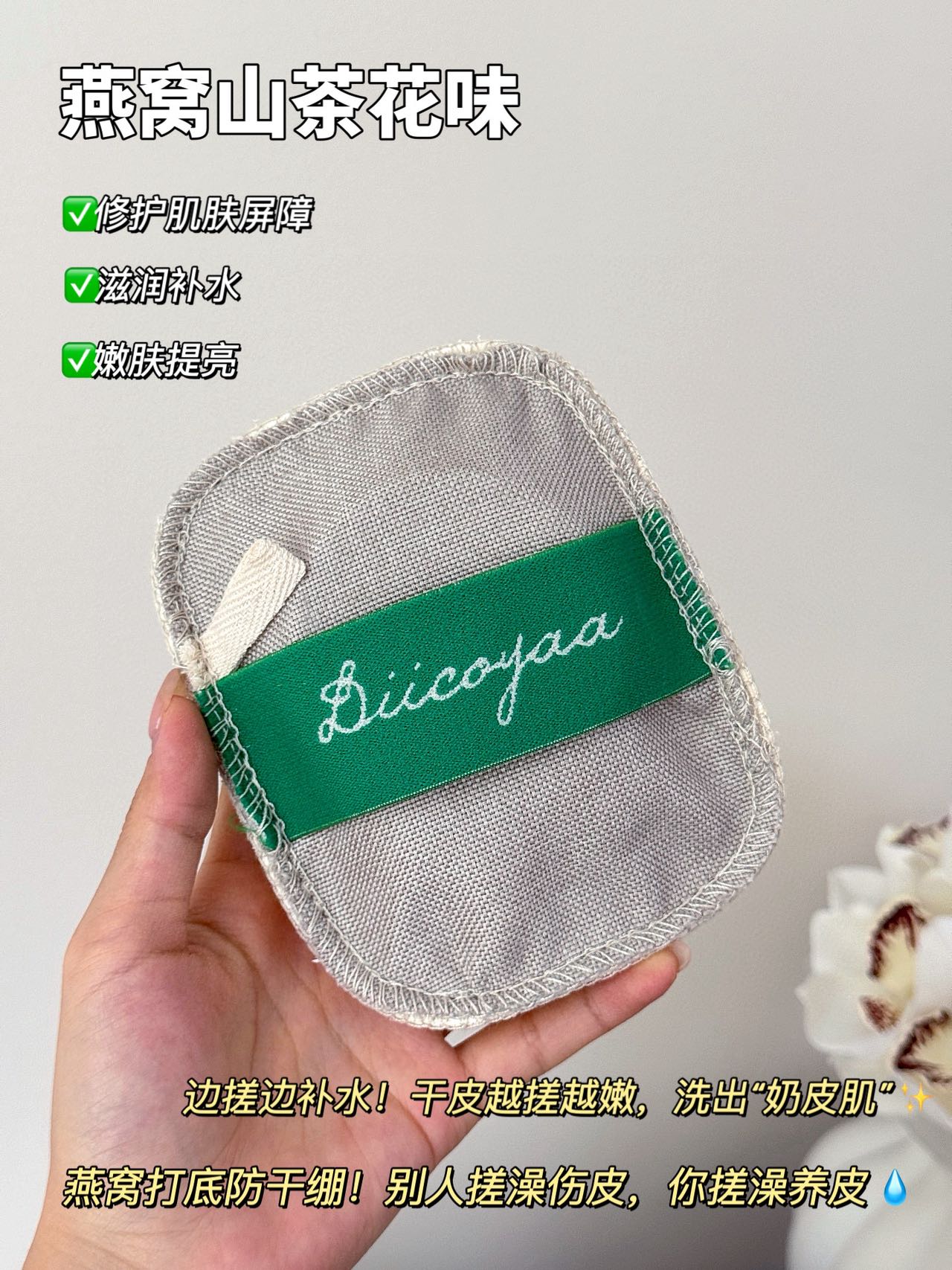 💧 在搓洗的过程中,通过无数个天然的植物纤维孔洞,对皮肤表面的摩擦一种天然的微循环按摩,刺激毛细血管,促进身体的血液循环和淋巴流动,让后续的精油滋养吸收得更彻底。