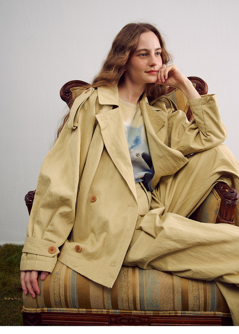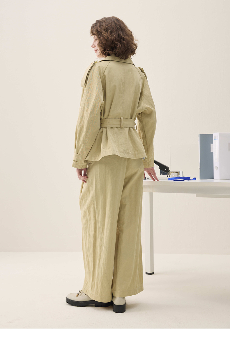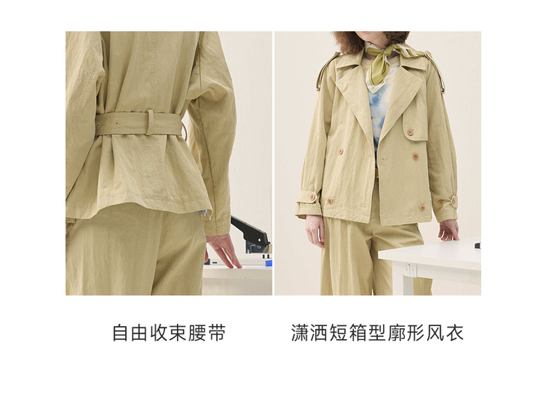 谜底短箱型风衣长袖2026年春季新品经典收束腰带外套女261ME0205