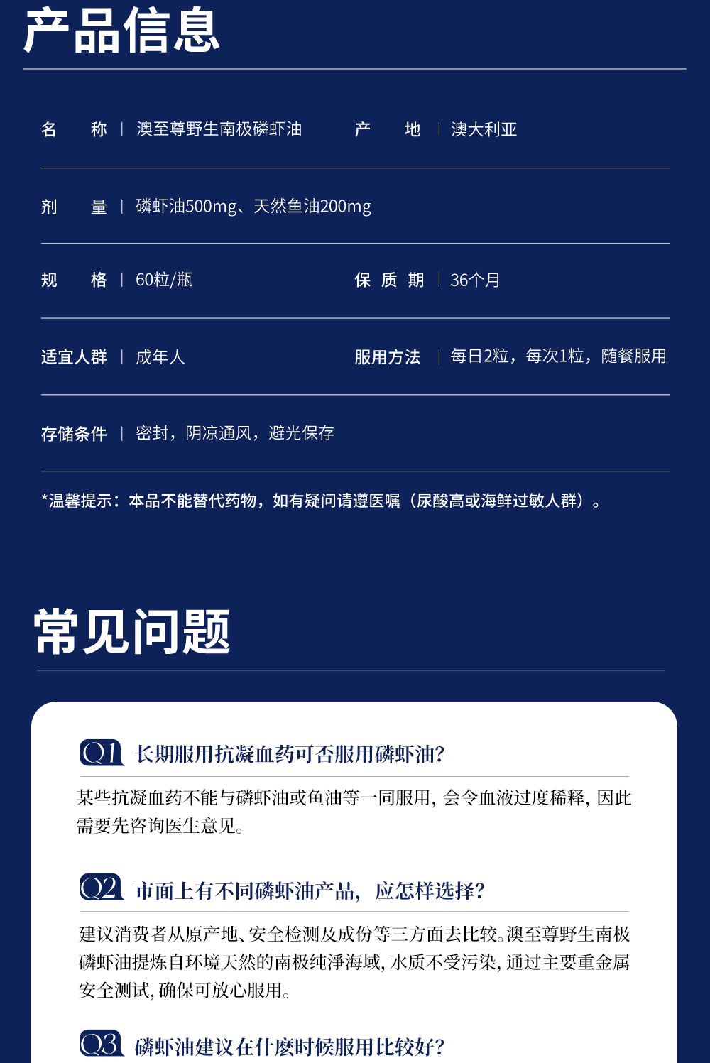 澳至尊野生南极磷虾油鱼油胶囊60粒 有效期2028-01-05