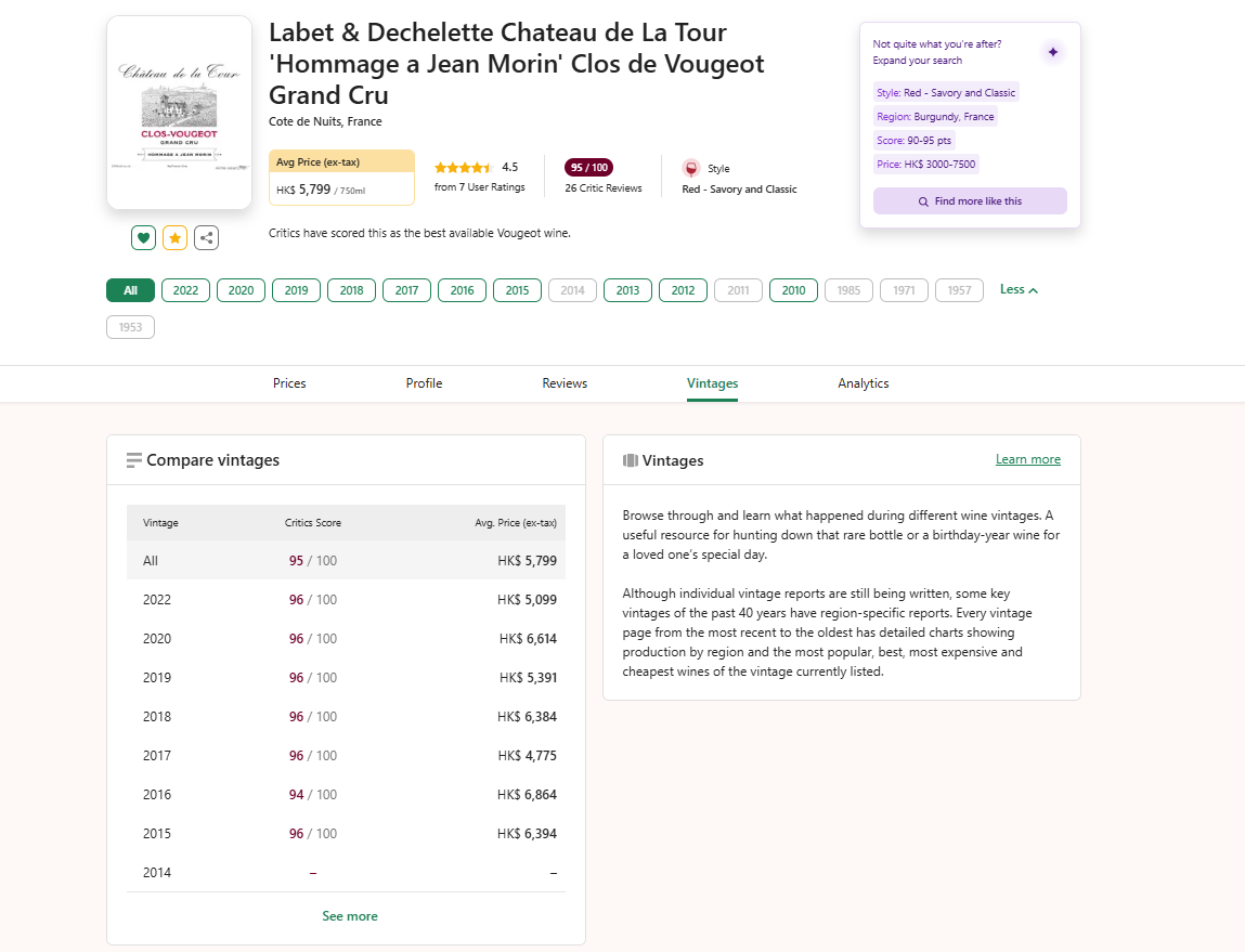 酒庄Clos Vougeot Hommage a Jean Morin 则精选了最古老、最好的百年老藤,出品非常少量的酒!