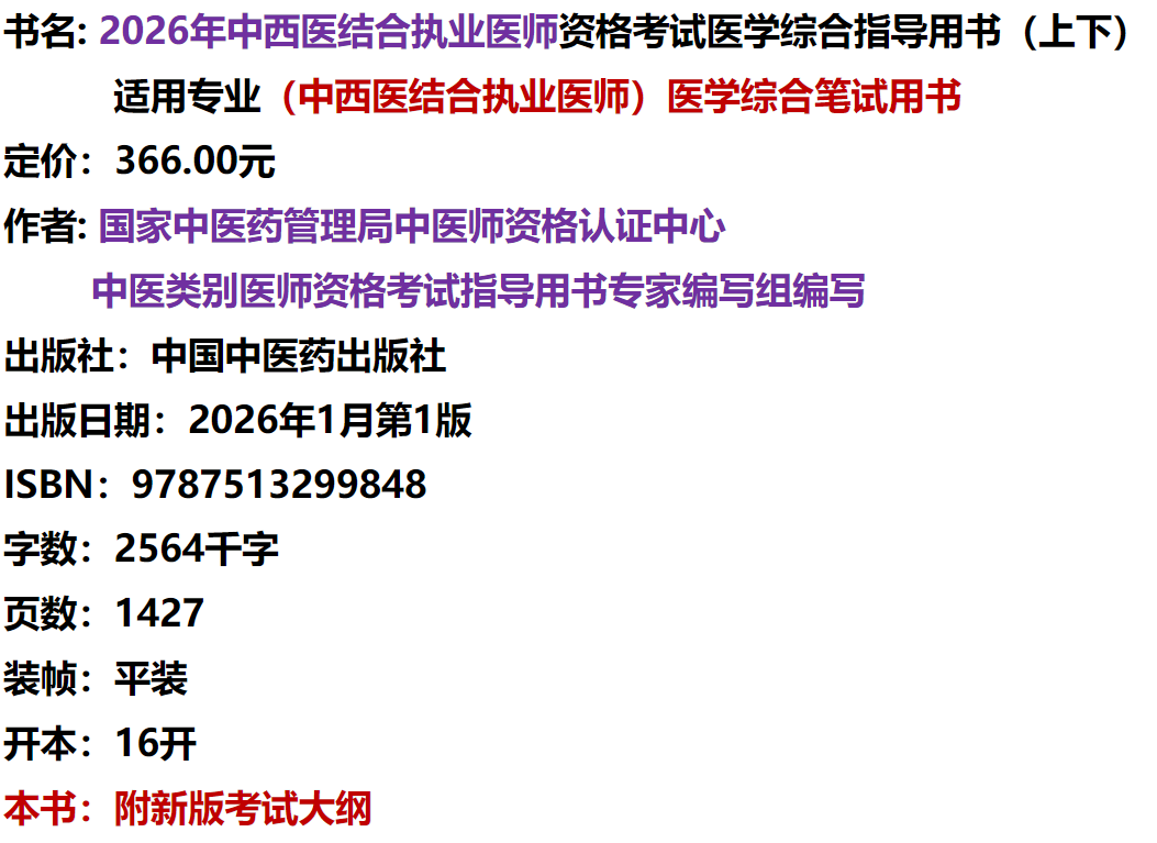 2026年中西医结合执业医师资格考试医学综合笔试指导用书(上下)职业医师大纲细则应试指南书新大纲笔试书籍中国中医药出版社