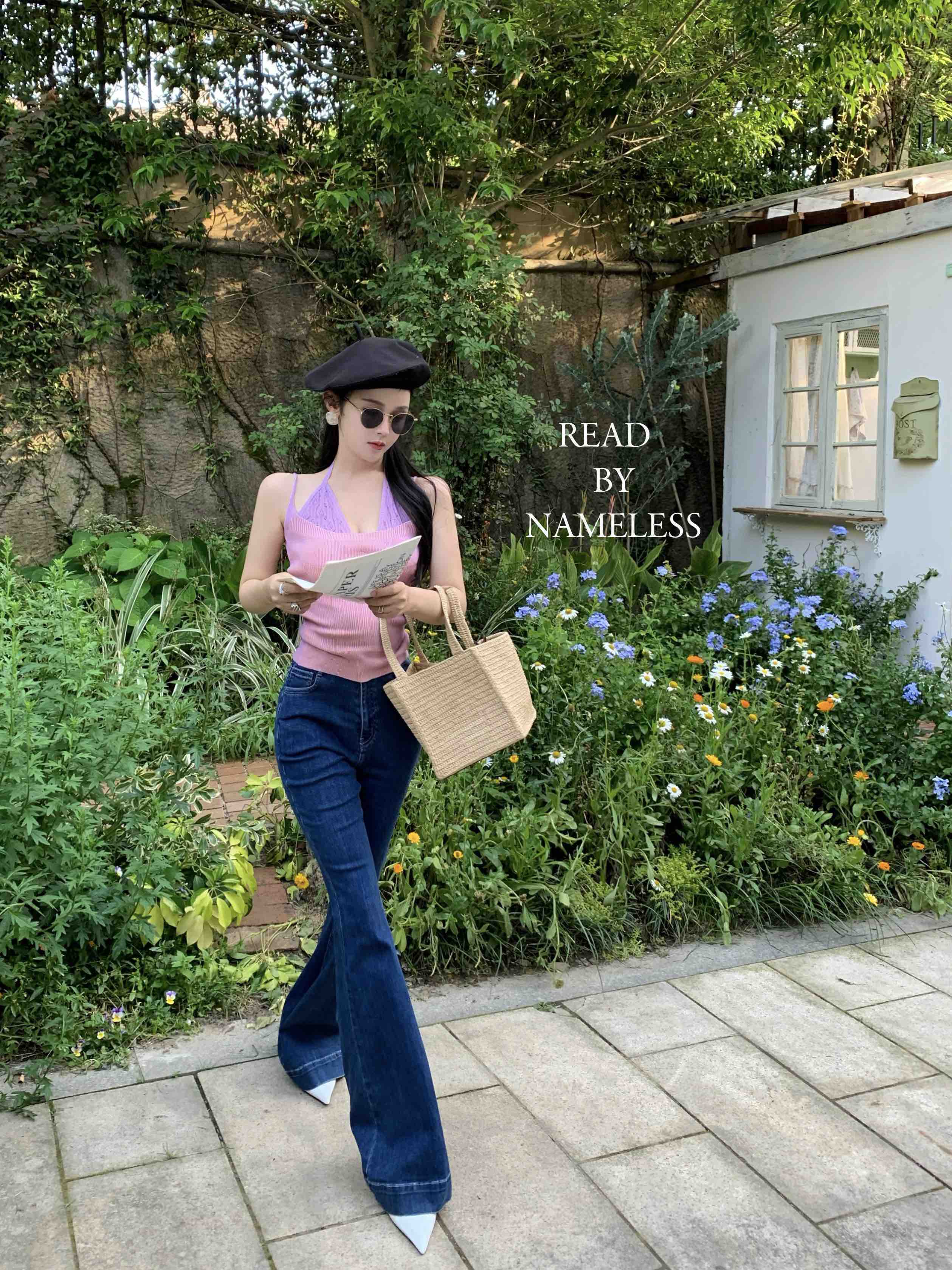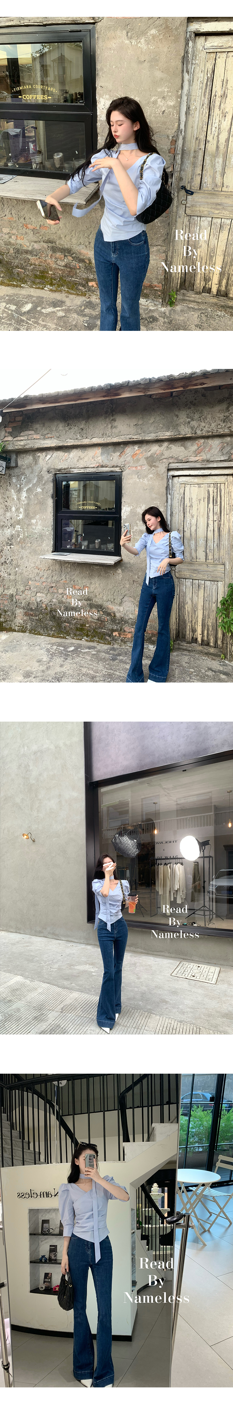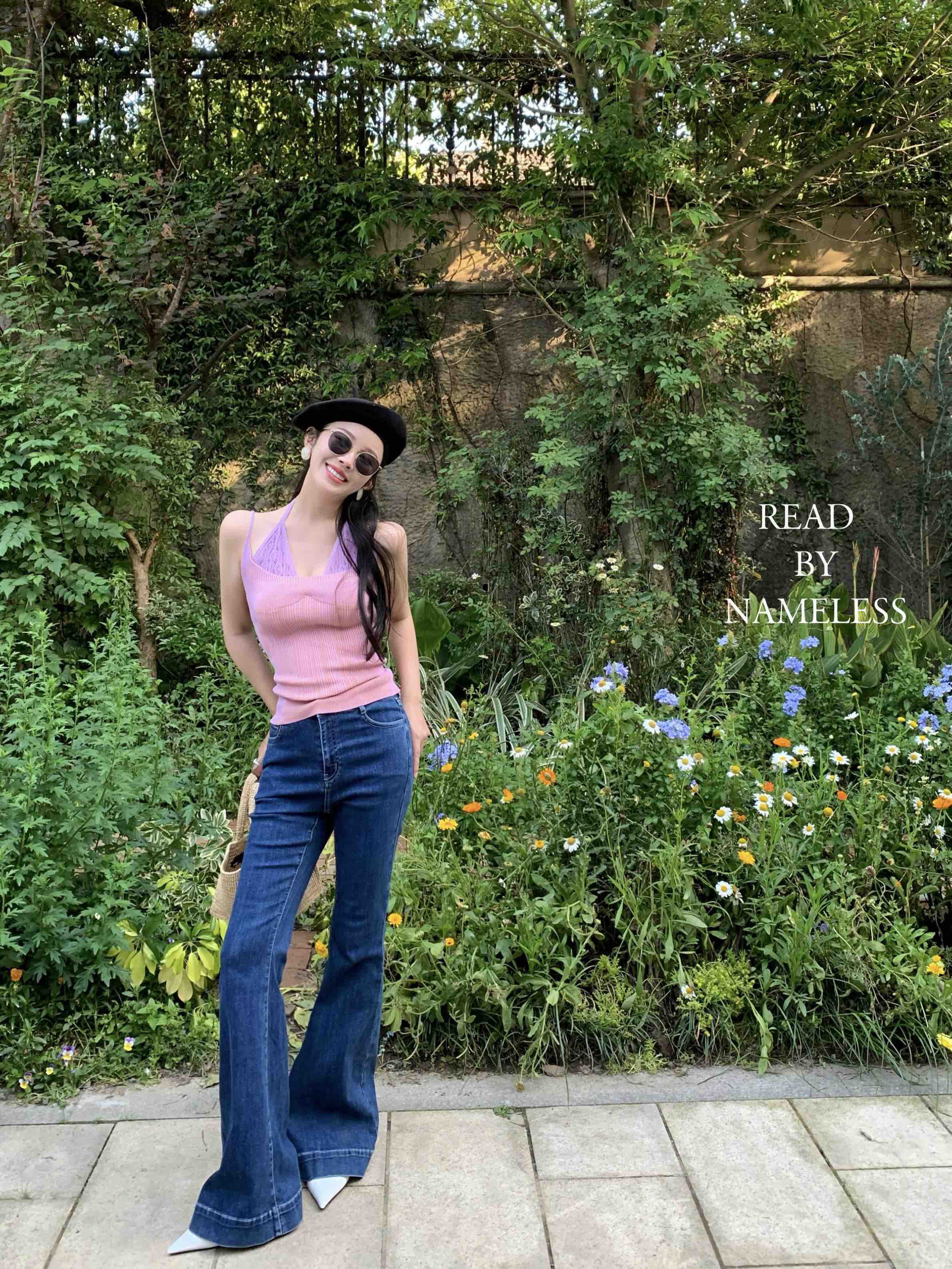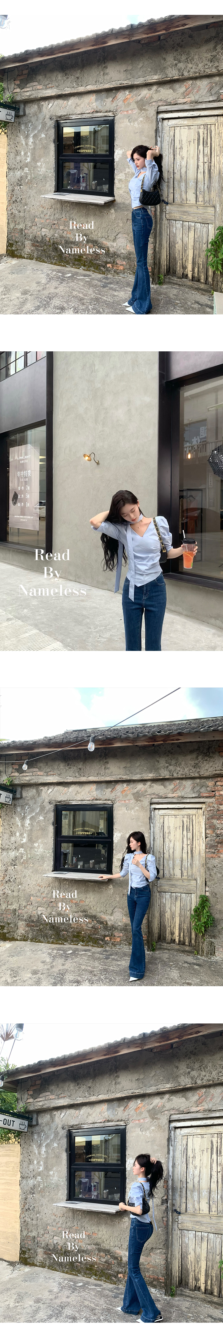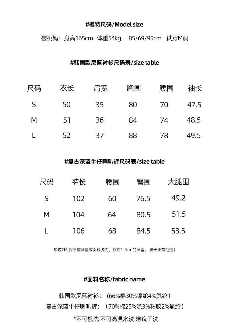 Read Nameless /韩国欧尼蓝衬衫+复古深蓝牛仔喇叭裤
