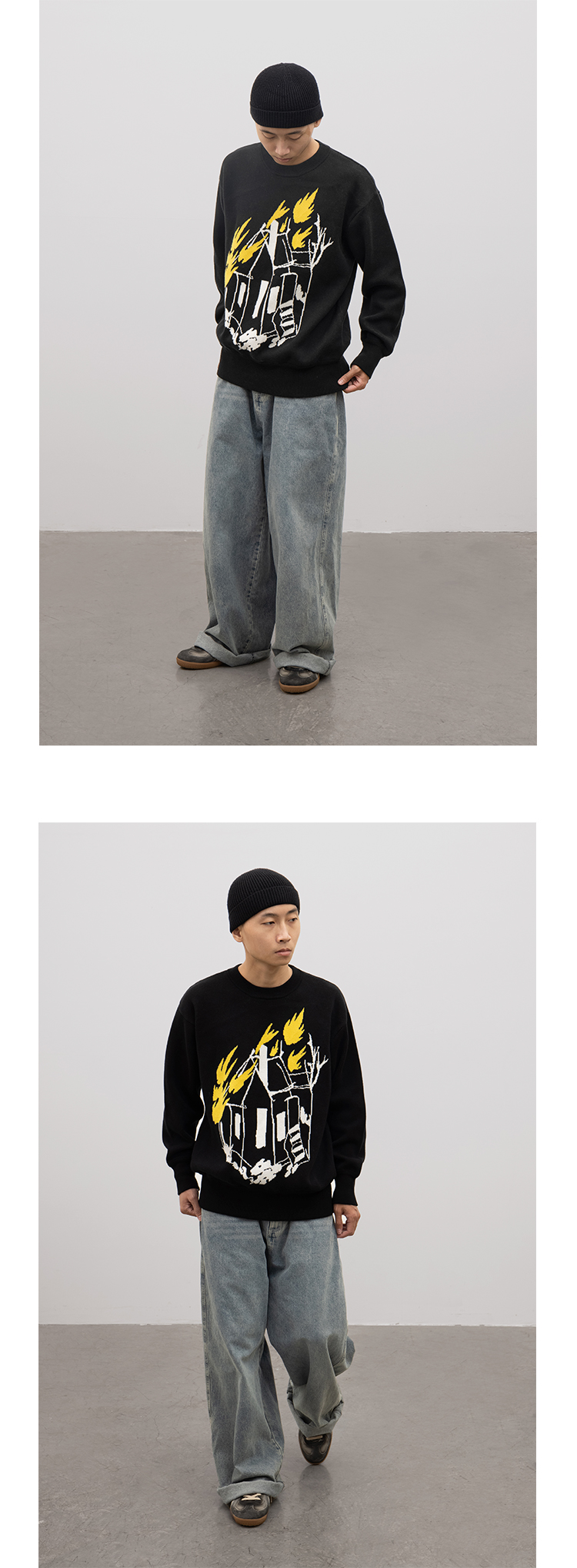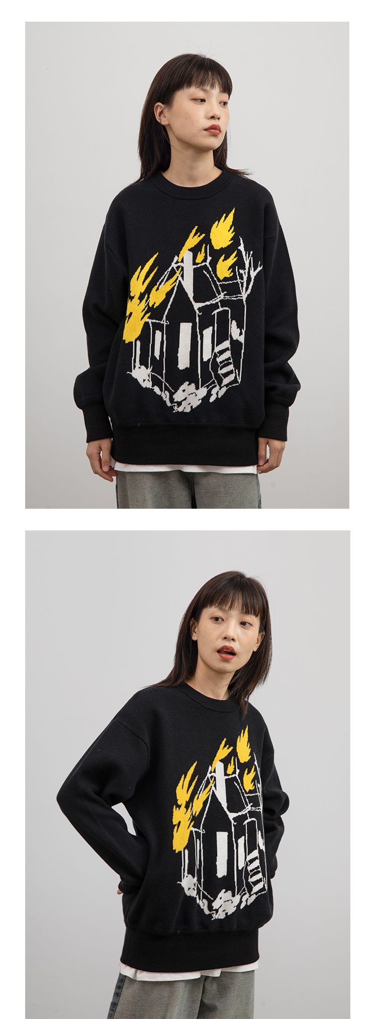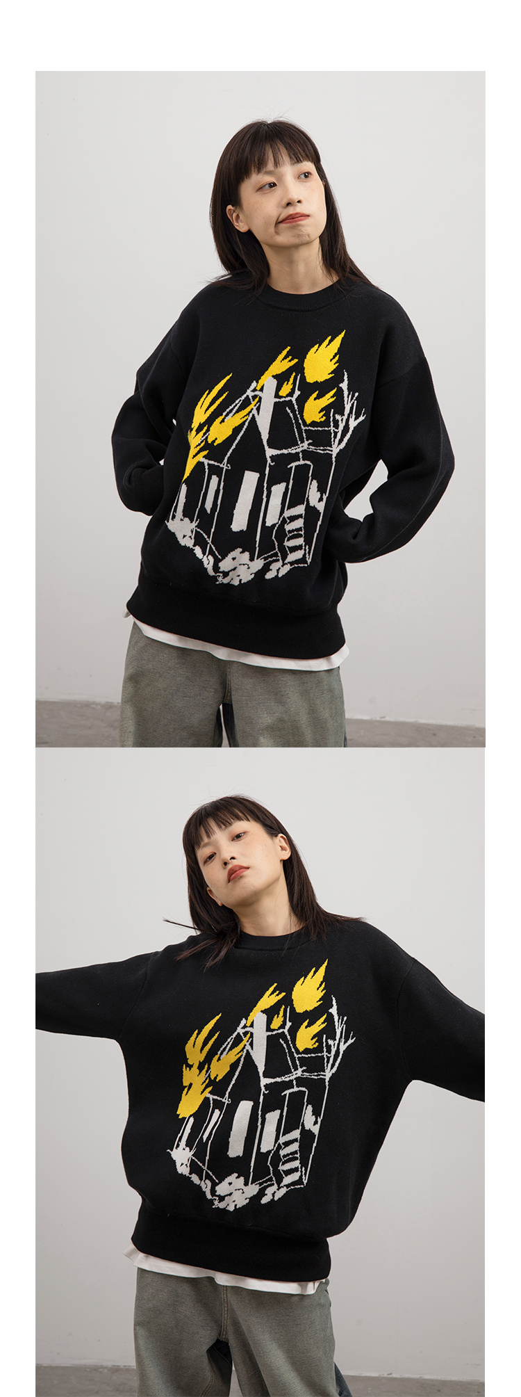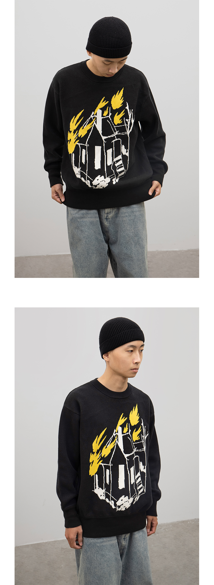 CryingCenter 火焰房子酷酷黑色毛衣宽松百搭个性男女 哭喊中心