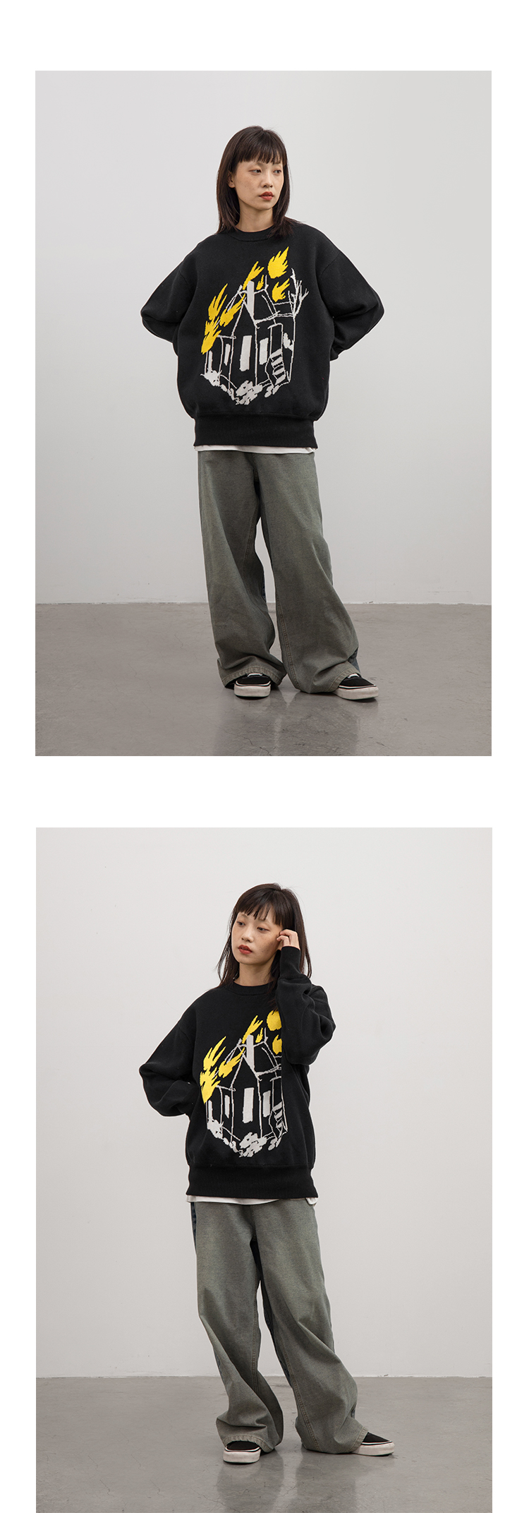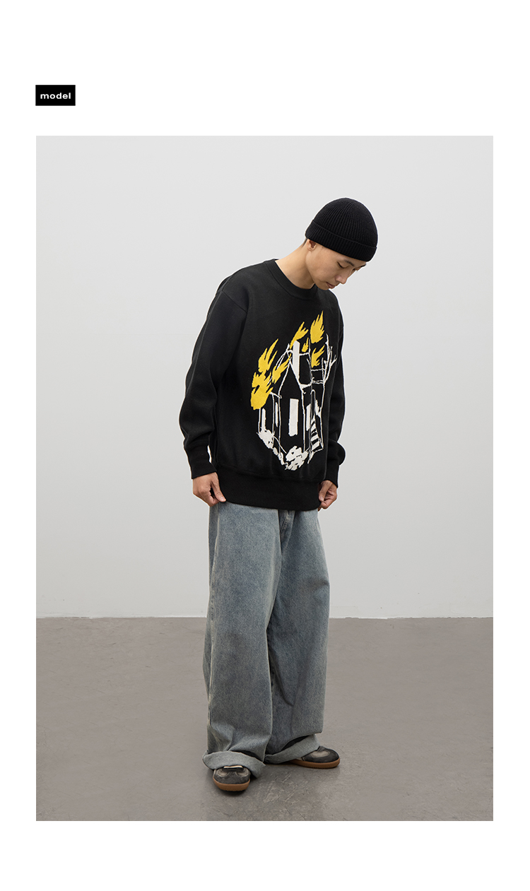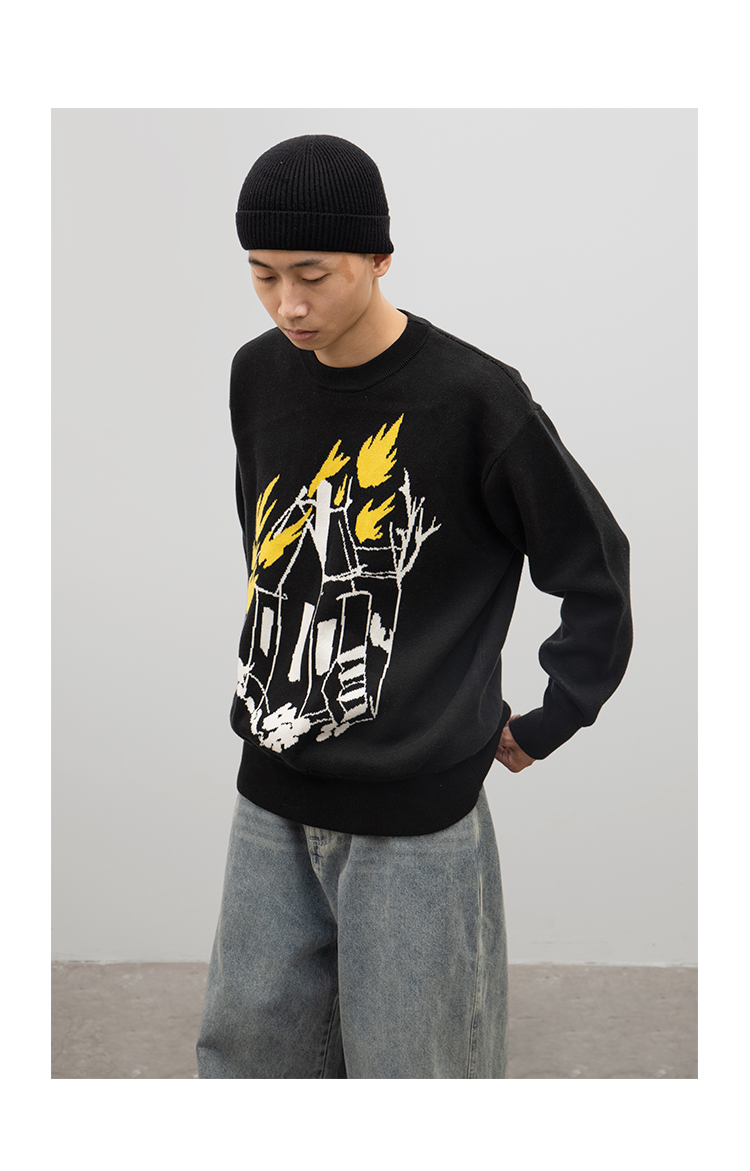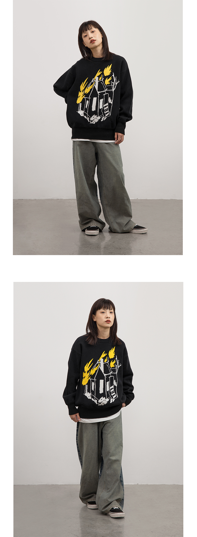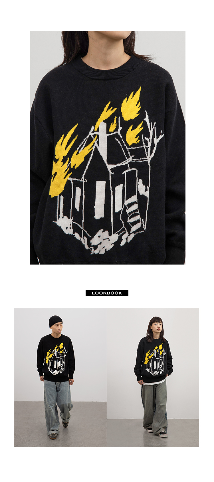 CryingCenter 火焰房子酷酷黑色毛衣宽松百搭个性男女 哭喊中心