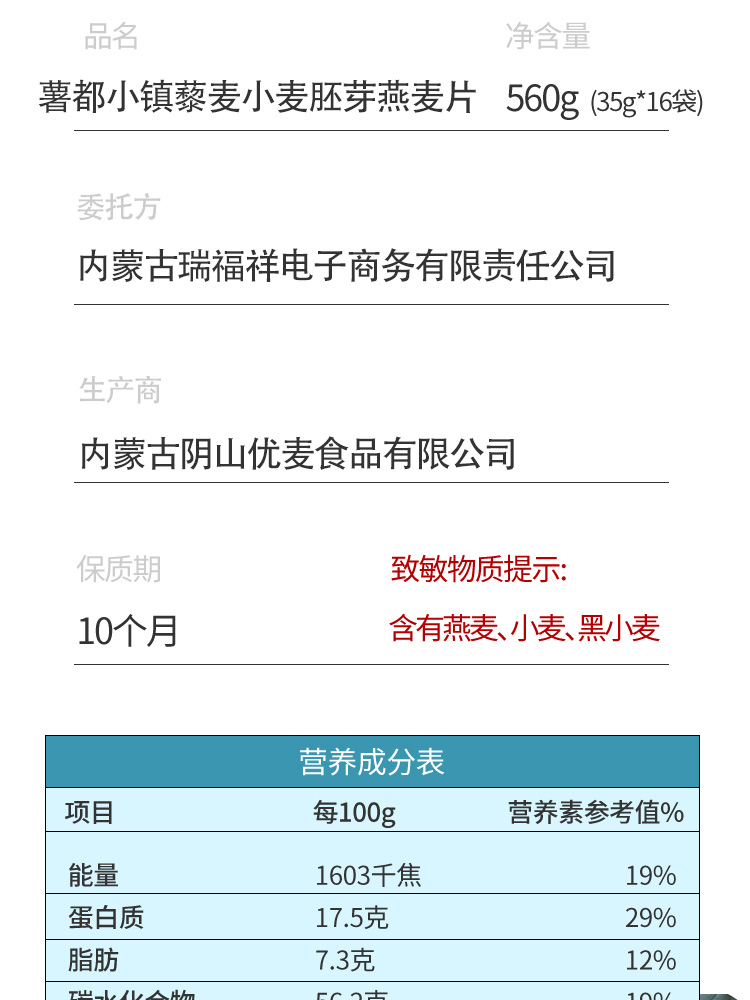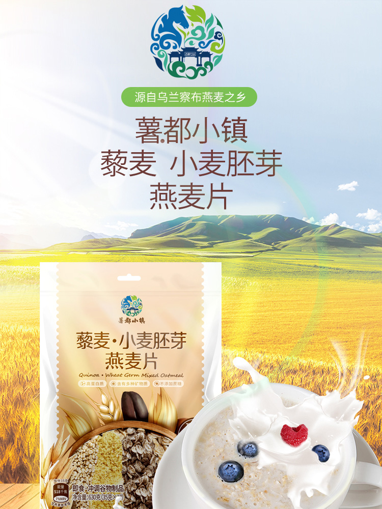 【薯都小镇·藜麦小麦胚芽燕麦片】560g(35克*16袋) 健康有机