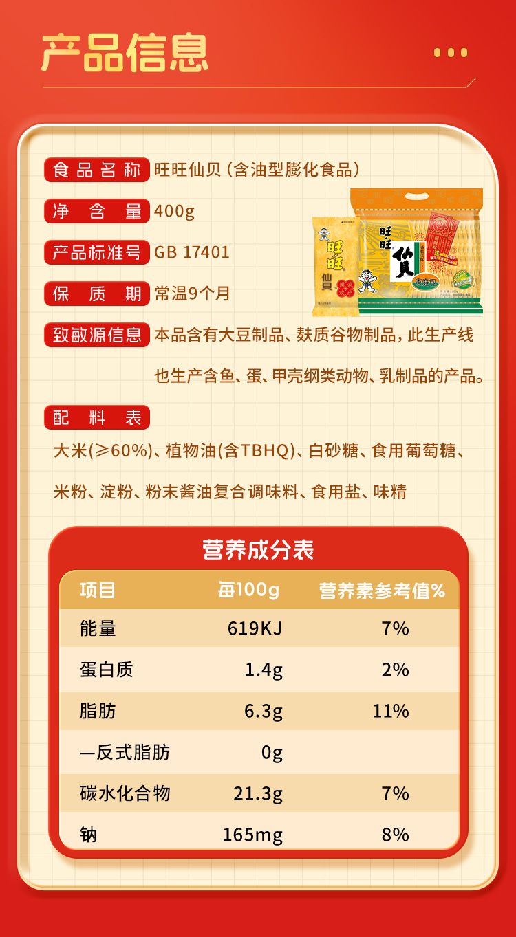 旺旺 经典口味旺旺仙贝400g